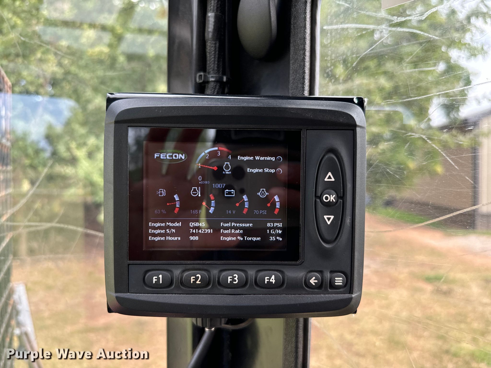 2017 Fecon FTX 128R mulcher. Hours: 908 on meter, Serial: FTX128R173009. Engine Cylinders: 4, Fuel type: Diesel. Transmission Hydrostatic. Operators station Enclosed cab, AC, Heat. Features Mulcher Fecon BH085SD3-FS-1V-FTX128, Serial: 00BH085010573, Width: 72", Winch Cable diameter: 0.5". Tracks Width: 19", Rubber. Norman, OK 73072