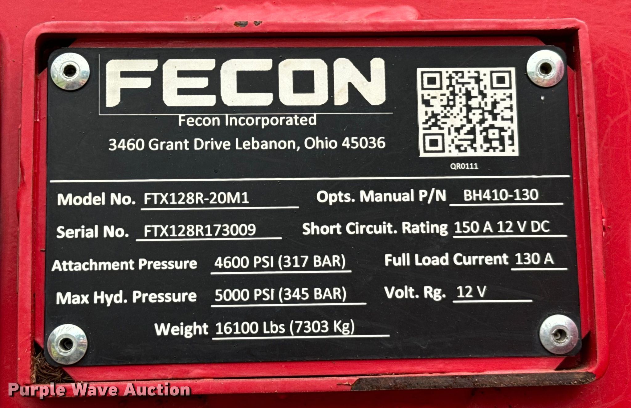 2017 Fecon FTX 128R mulcher has sold in Norman, Oklahoma for $155100. Item NQ9712 sold on September 5th, 2024.