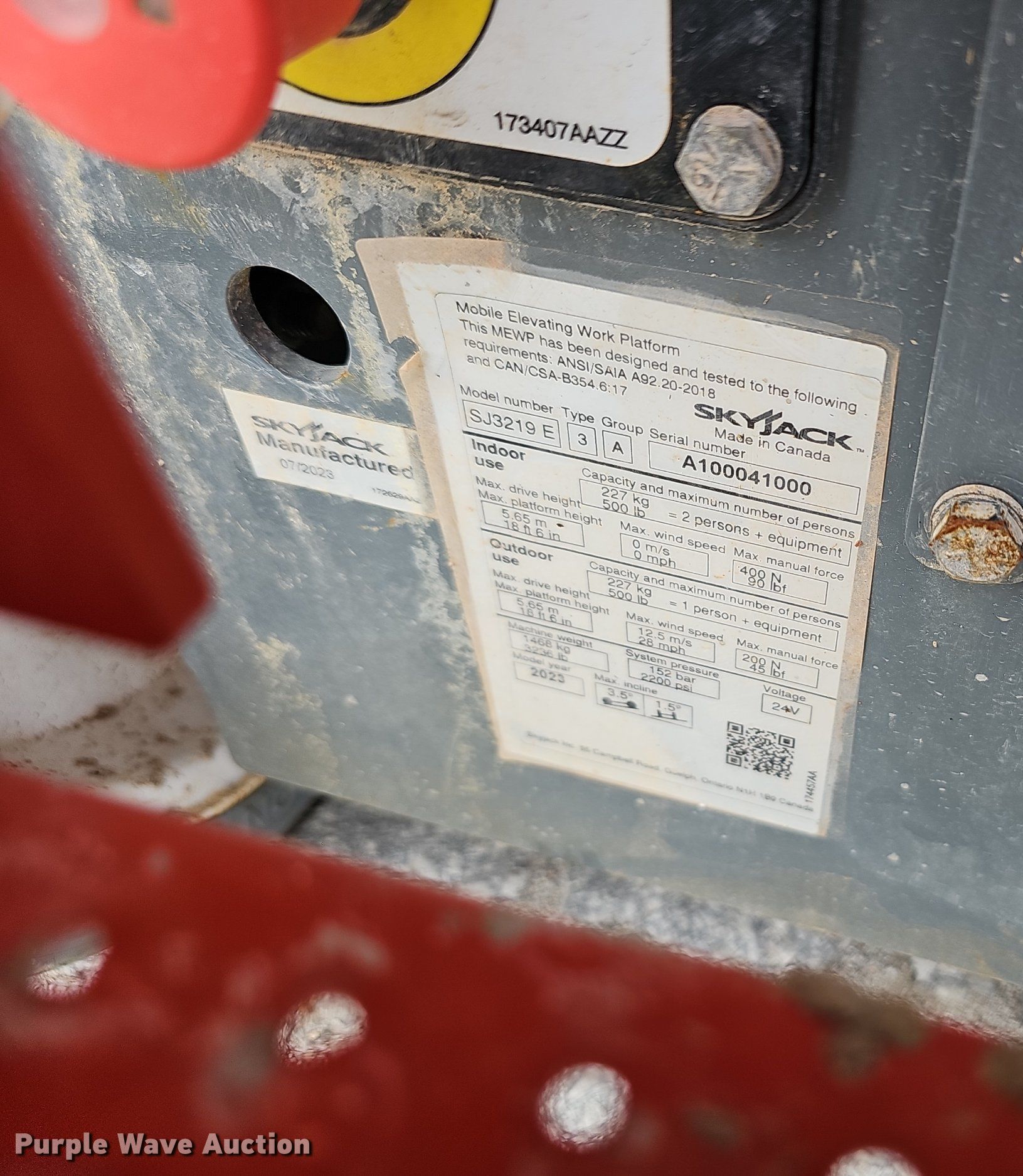 Purple Wave is selling a used Scissor or Vertical Lift in Missouri. This item is a 2023 Skyjack SJ3219E scissor lift with the following: Hours: 13 on meter, Serial: A100041000