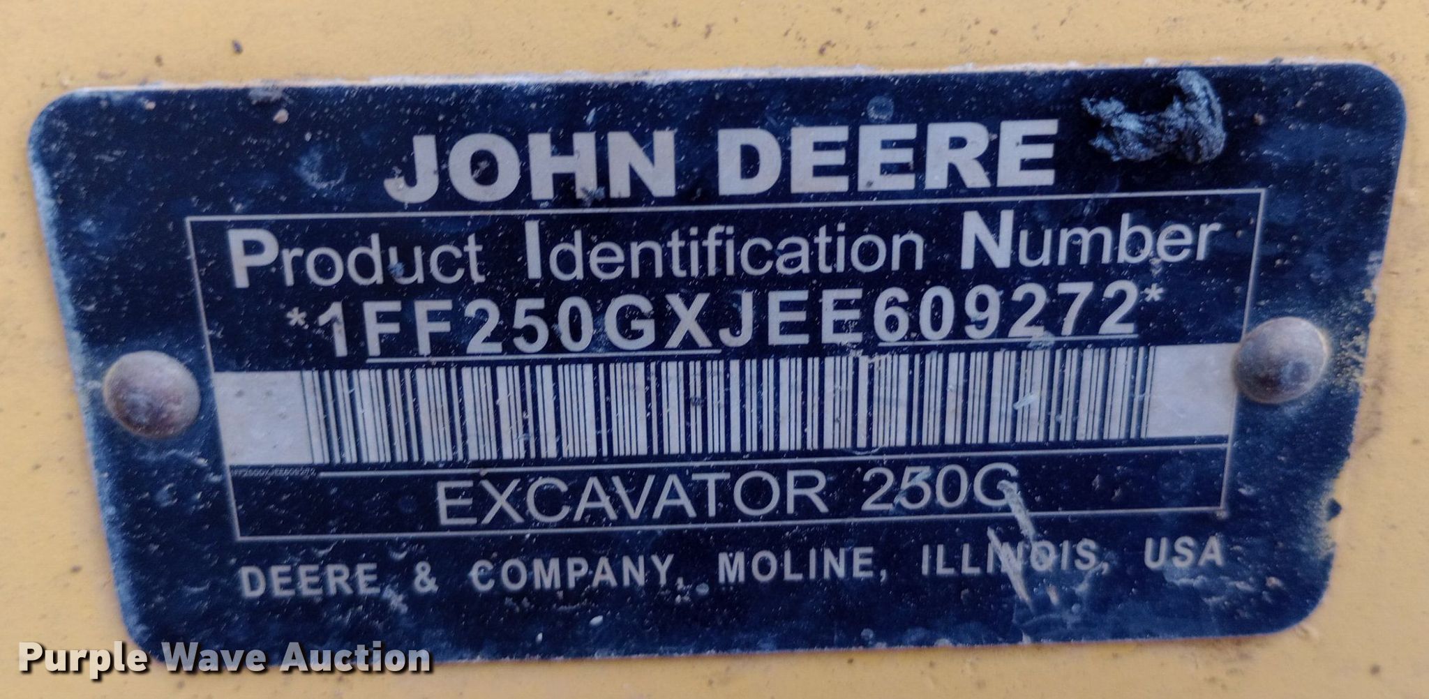 Purple Wave is selling a used Hydraulic Excavator in Kansas. This item is a 2014 John Deere 250G LC excavator with the following: Hours: 7,462 on meter, Serial: 1FF250GXJEE609272, Unit #: 20.308L