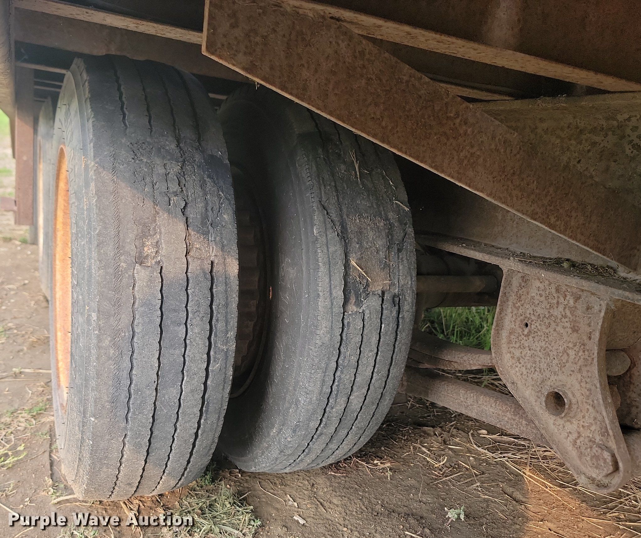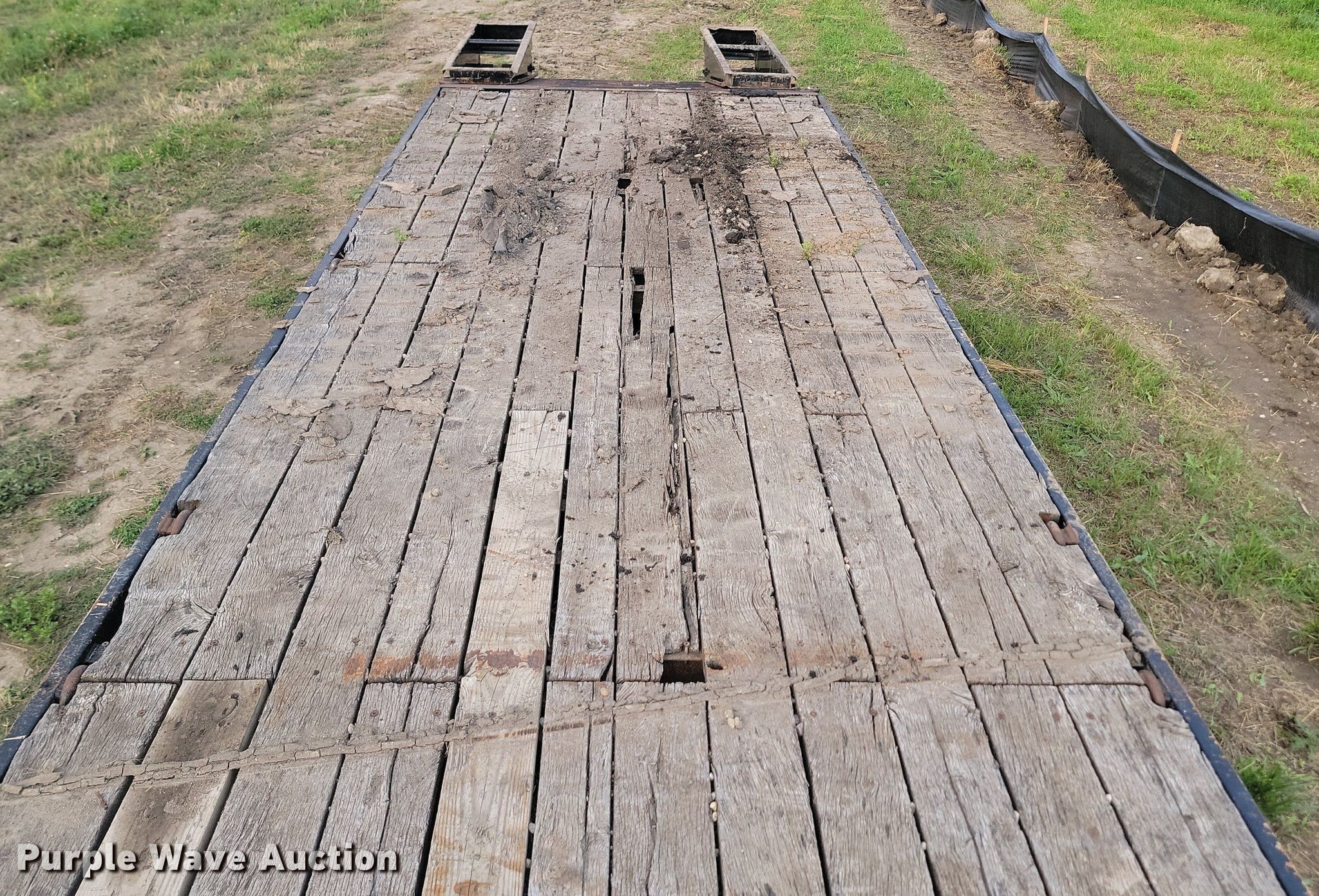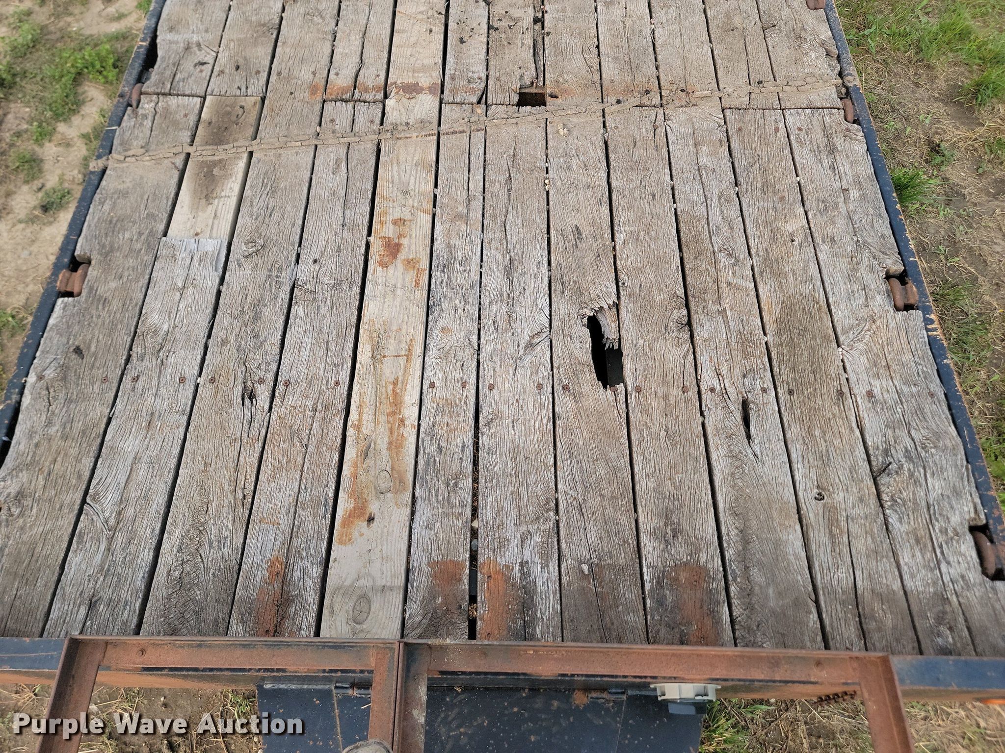 2001 Felling equipment trailer. Dimensions. Overall: 36' L x 102" W, Deck: 24' L x 102" W, Tail length: 5' 4", Ramps: Manual Length: 5'. Features Deck type: Wood. Chassis Hitch: Pintle, Landing gear: Single, Suspension: Spring, Brakes: Air, Axles: Tandem. Tires Steel wheels, Size: 215/75R17.5. Notes Deck boards damaged. North Dakota title. Adelman Investments. Pelican Rapids, MN 56572