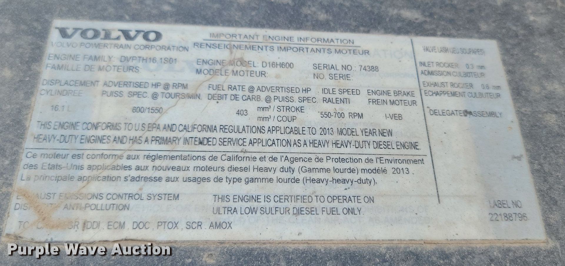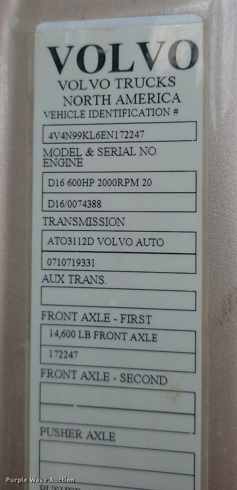 Purple Wave is selling a used Truck Tractor in Wyoming. This item is a 2014 Volvo VNL semi truck with the following: Miles: 140,408 on odometer, VIN: 4V4N99KL6EN172247