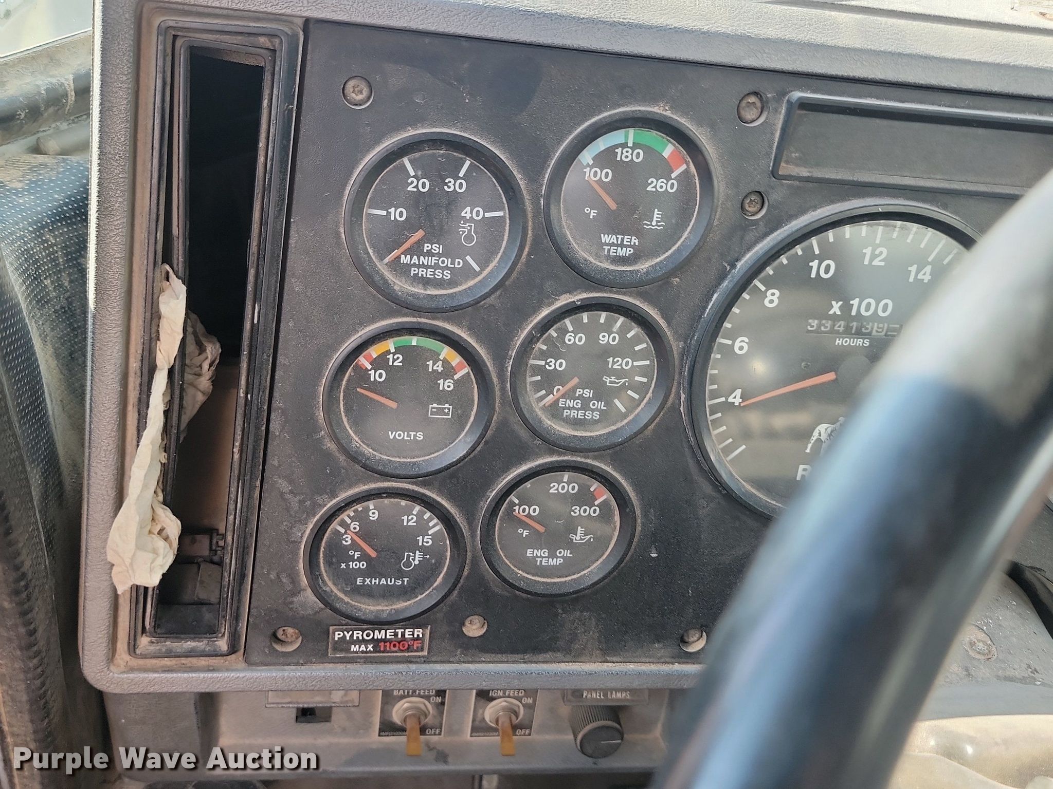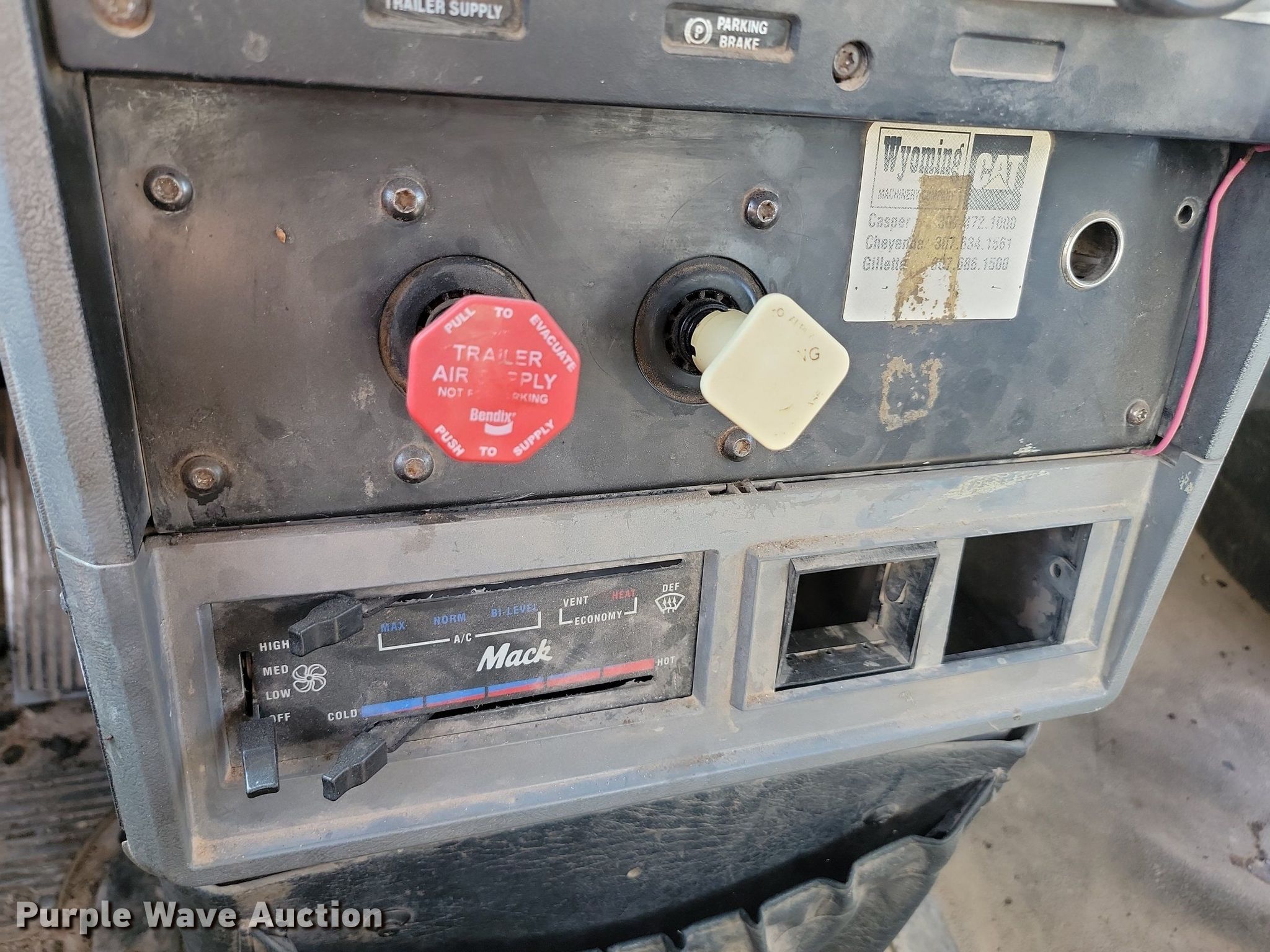 1999 Mack CH600 dump truck. Miles: 217,776 on odometer, Hours: 33,414 on meter, VIN: 1M1AA18Y0XW098438. Engine Mack E7-427, Displacement: 12.0L, Cylinders: 6, Fuel type: Diesel, Engine brake. Transmission Eaton Fuller, Manual, Speed: 10. Chassis Axles: Triple, Pusher axle Steerable, Differential lock: Inter-axle, Suspension: Air, Brakes: Air, PTO. Interior Heat, Heated mirrors, Cruise control. Features Dump bed 17' L x 96" W, Bed type: Steel, Barrel, Ram: Single, End gate: Air operated. Tires Size: 11R22.5, Lift axle: 255/70R22.5. Notes Dead battery, Engine issues , Non-operational unit. Iowa title. Title distribution may be delayed up to 14 days from verification of funds. Croell Redi-Mix. Sundance, WY 82729