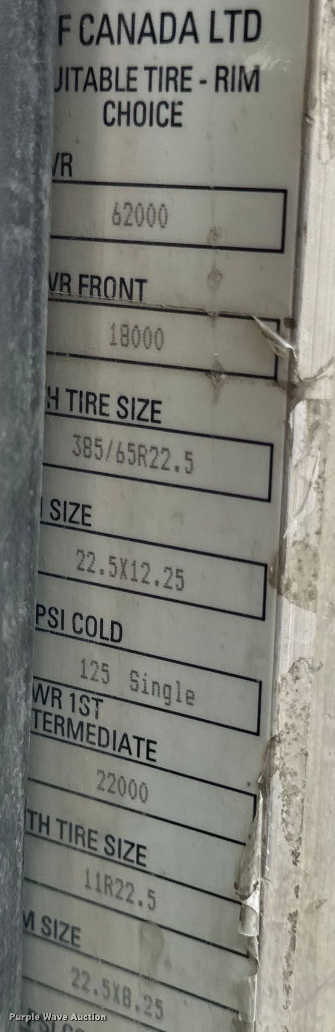 - Front: 385/65R22.5