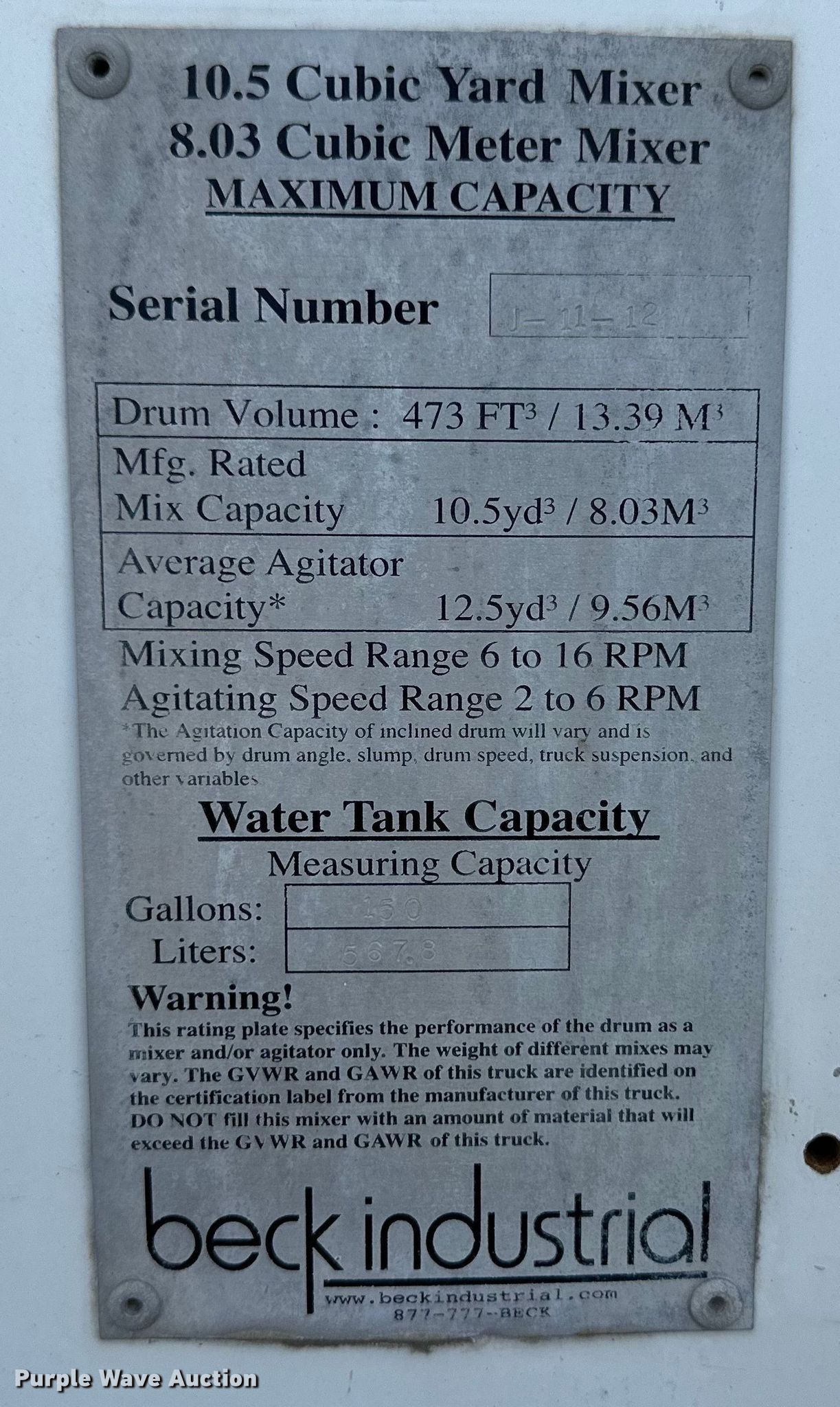 - Capacity: 10.5 cu.yd.