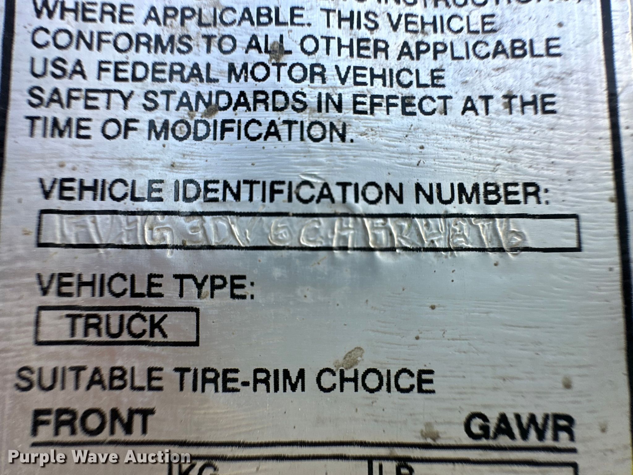 - VIN: 1FVHG3DV6CHBR4276