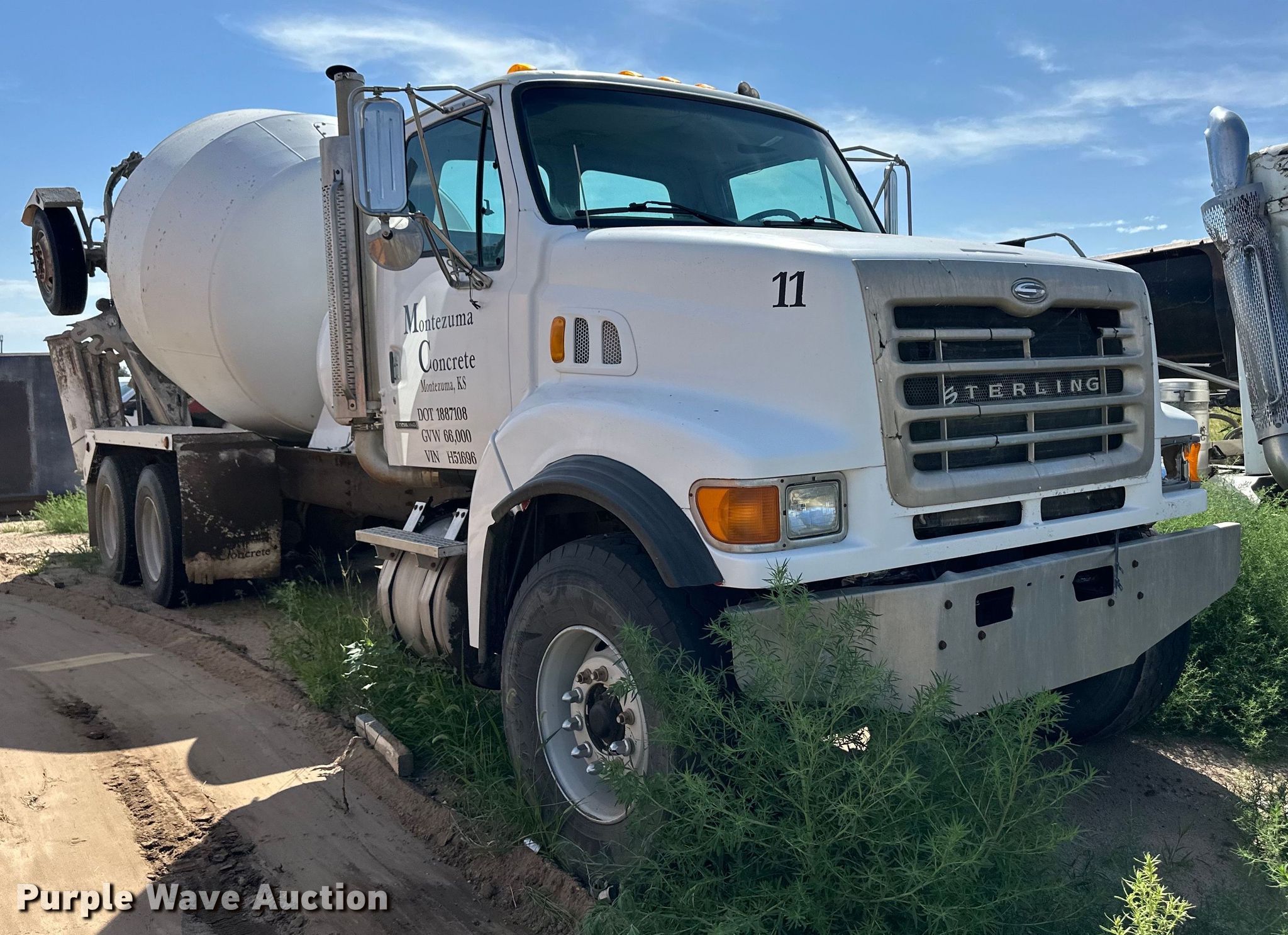 Purple Wave is selling a used Ready Mix or Pump Truck in Kansas. This item is a 2001 Sterling ready mix truck with the following: Miles: 308,332 on odometer, Engine hours: 27,169 on meter, VIN: 2FZNEWEB21AH51696