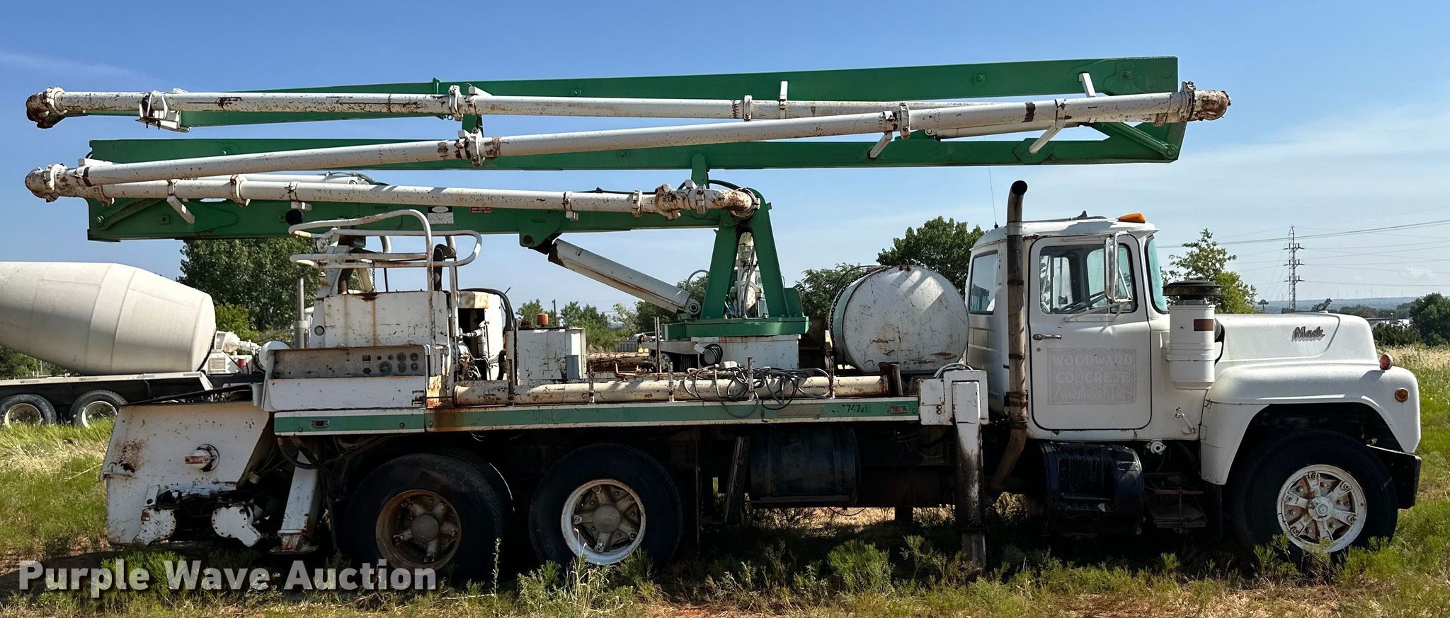 Purple Wave is selling a used Ready Mix or Pump Truck in Oklahoma. This item is a 1979 Mack concrete pump truck with the following: Miles: 174,846 on odometer, Hours: 7,558 on meter, VIN: R685ST74729