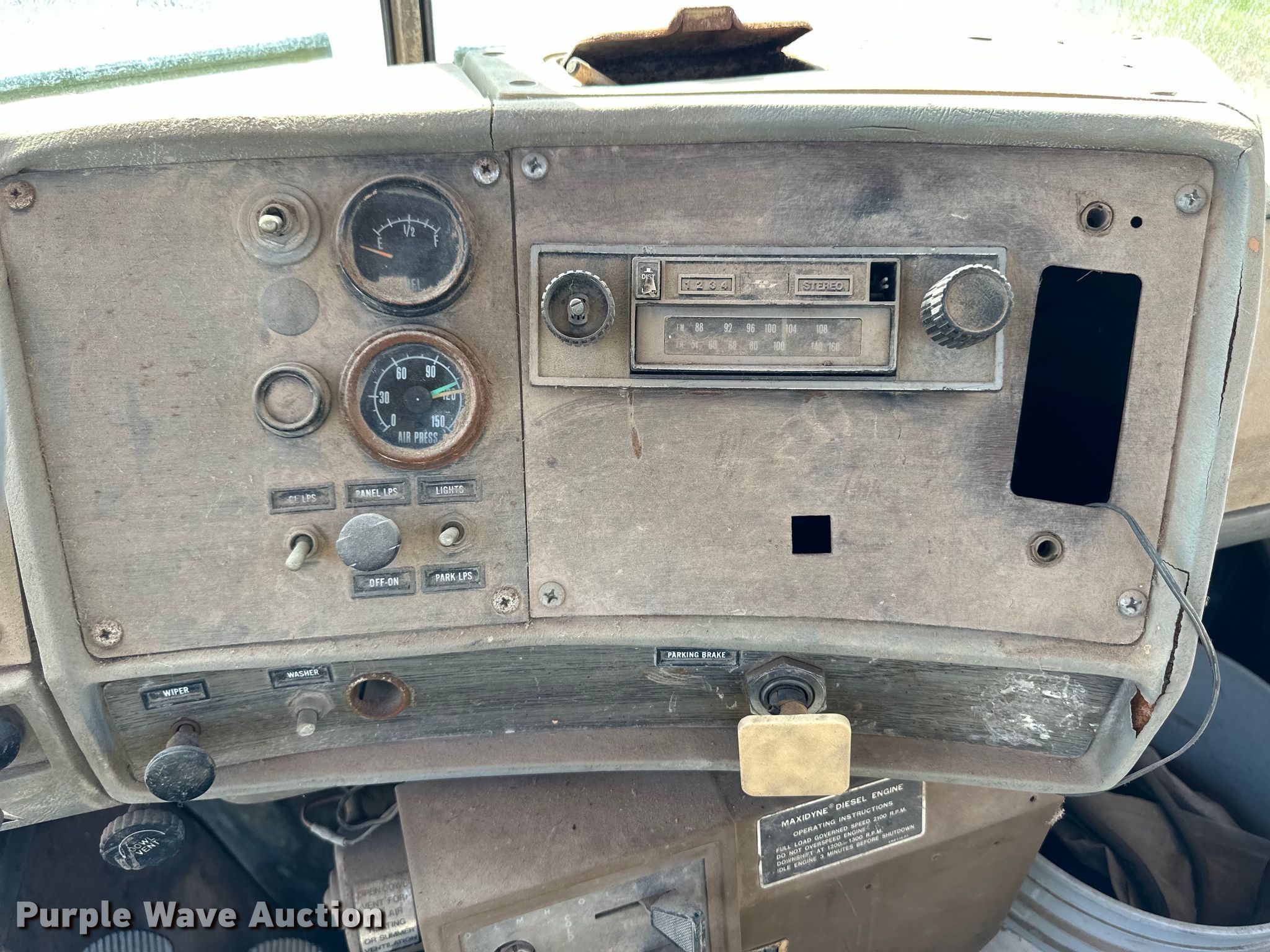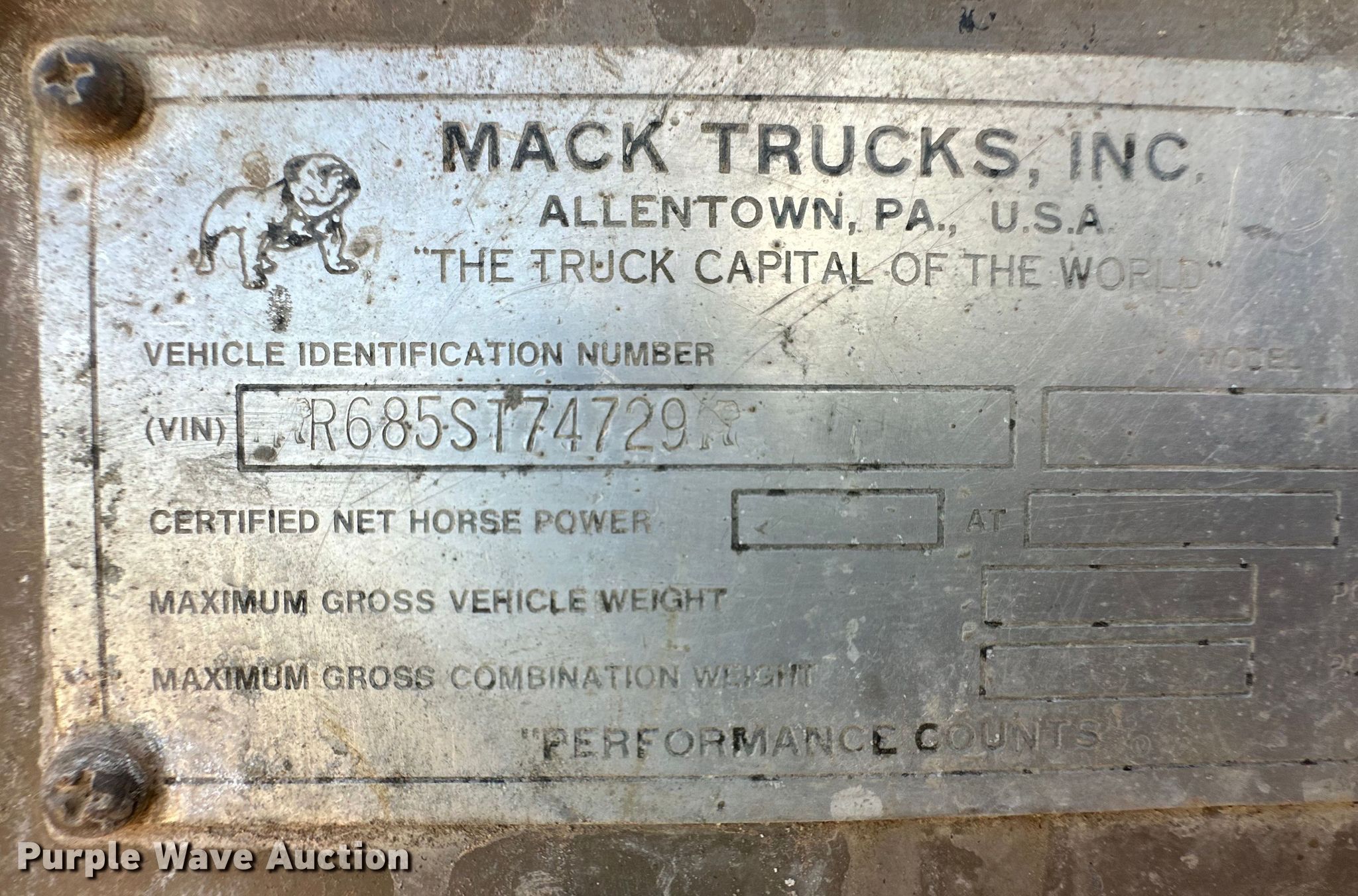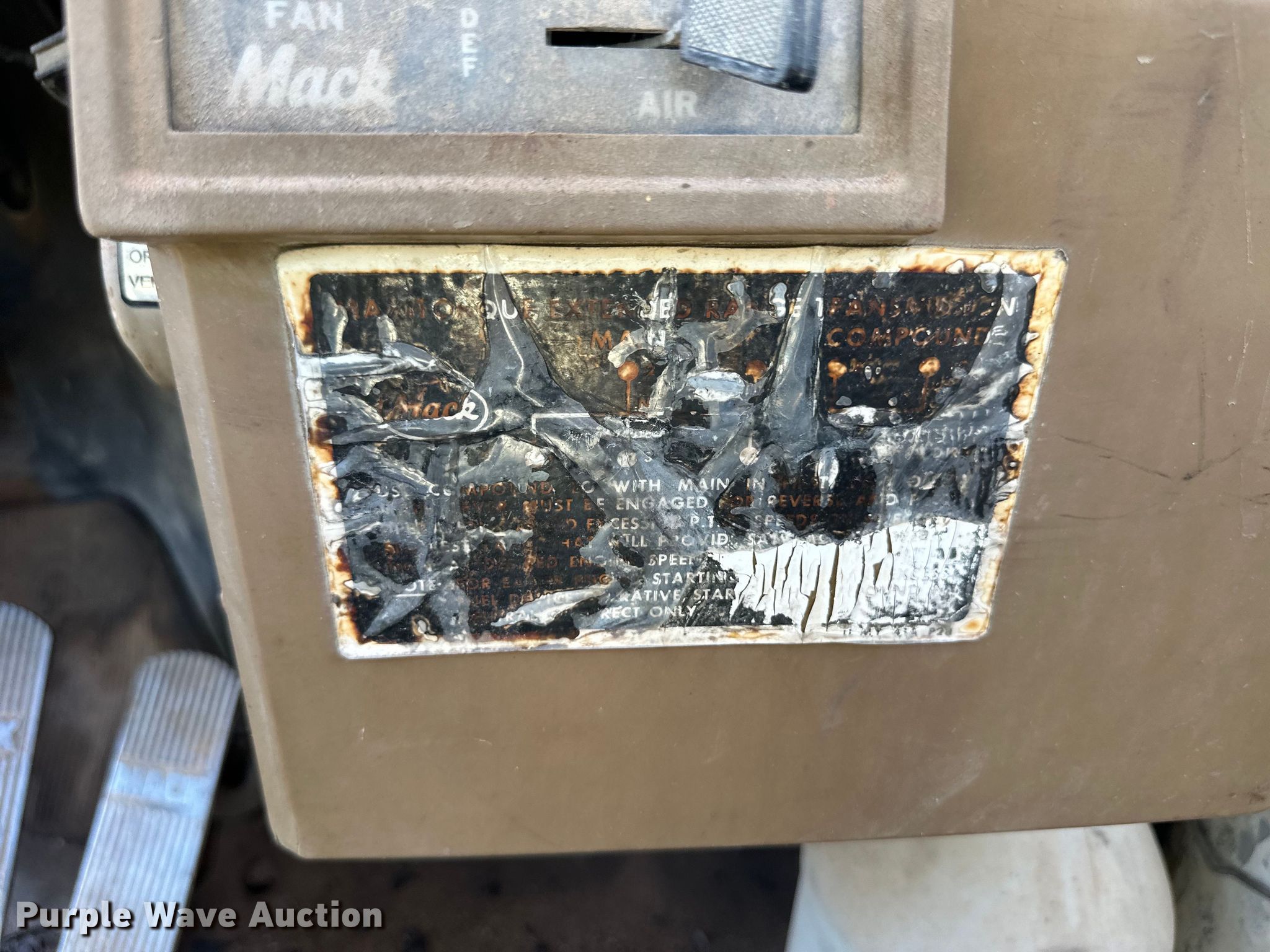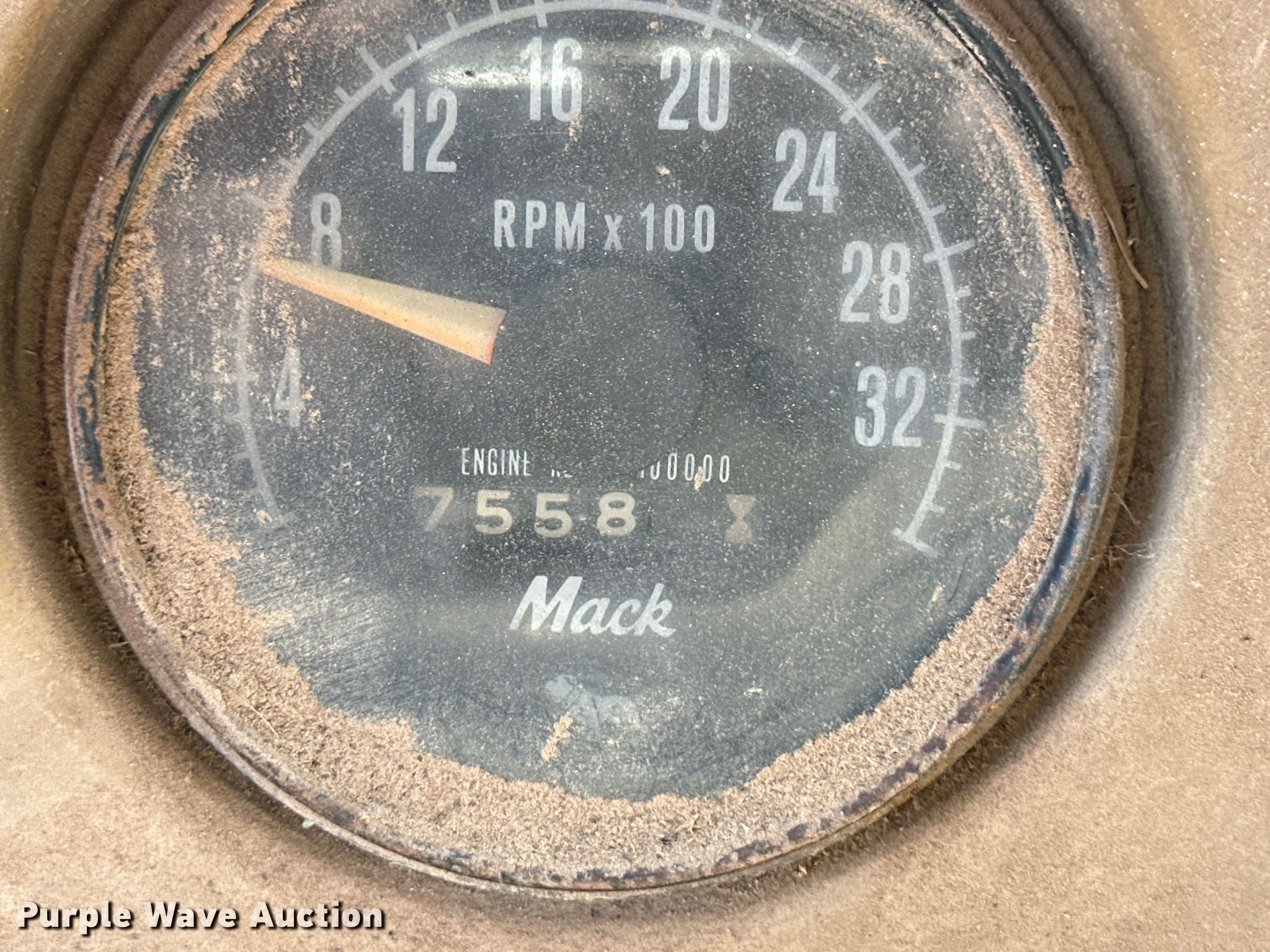 1979 Mack concrete pump truck. Miles: 174,846 on odometer, Hours: 7,558 on meter, VIN: R685ST74729. Engine Mack, Cylinders: 6, Fuel type: Diesel. Second engine Caterpillar 3208, Cylinders: 8. Transmission Manual. Chassis Axles: Tandem, Suspension: Spring, Brakes: Air, PTO. Interior Heat. Tires Front: 10.00R20, Rear: 11R22.5. Notes Non-operational rear engine, locked up , Non-operational hydraulics. Iowa title. Title distribution may be delayed up to 14 days from verification of funds. Croell Redi-Mix. Woodward, OK 73801