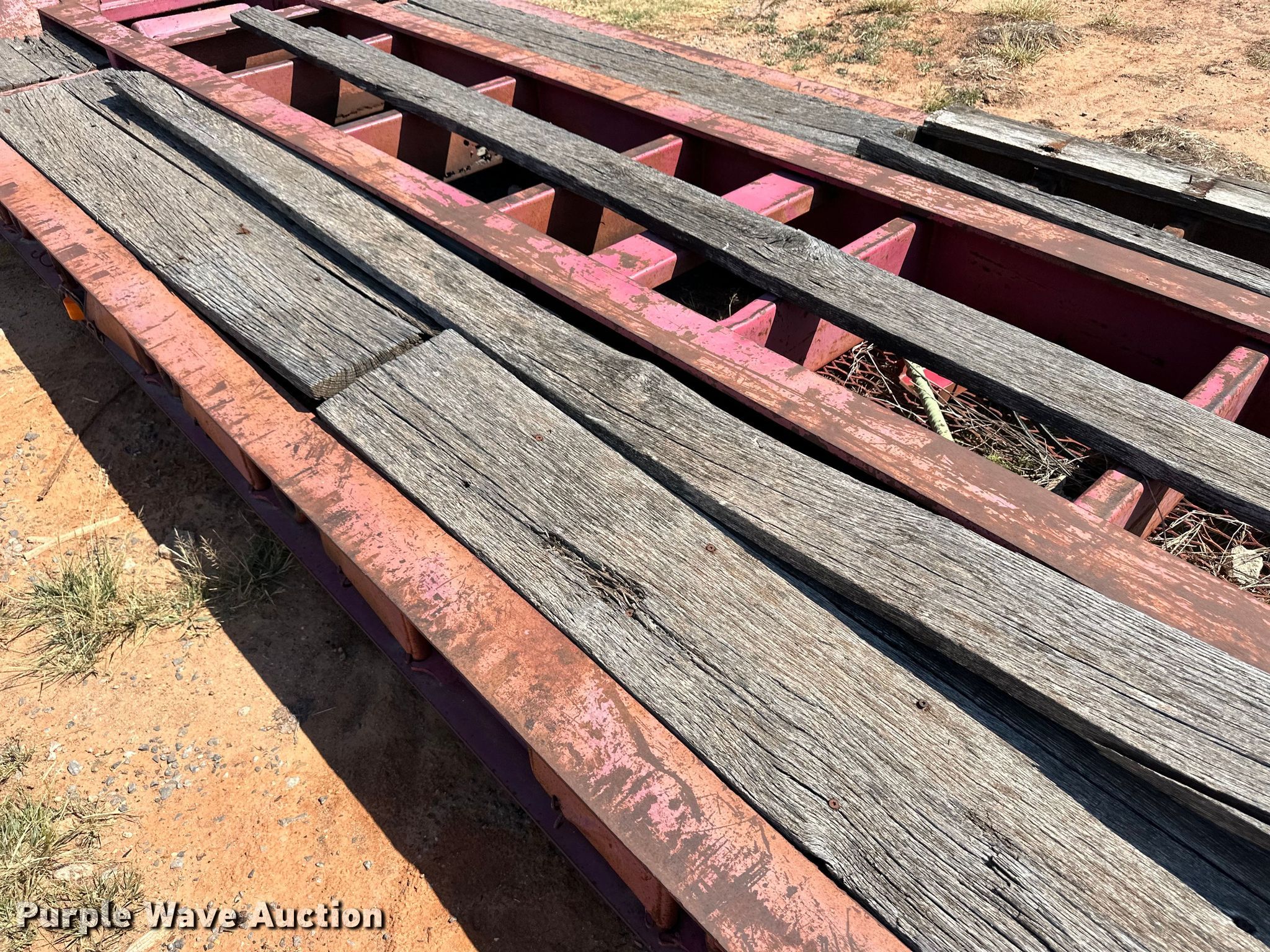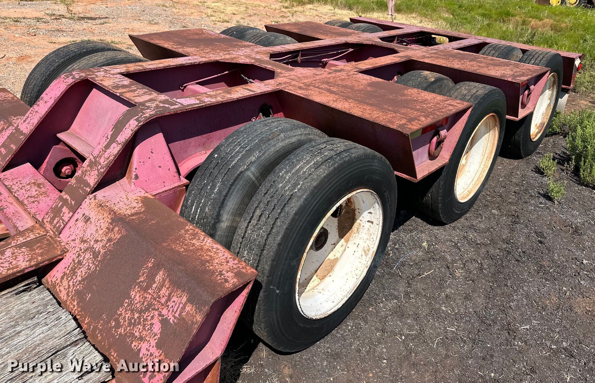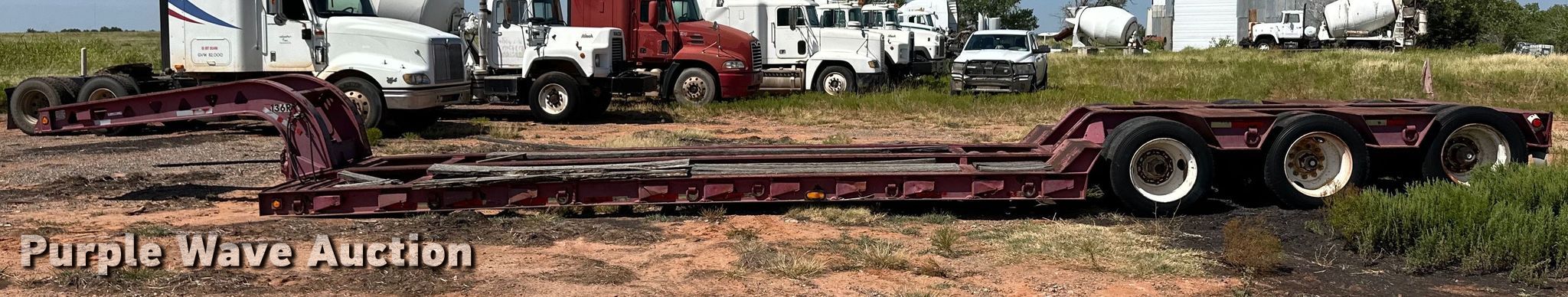 1988 Trail King lowboy equipment trailer. VIN: 1TKS04836JM020254. Dimensions Overall: 48' L x 96" W, Deck: 24' L x 96" W, Deck height: 18". Features Deck type: Wood, Outriggers: Swing-out Board size: 9", Neck type: Detachable. Chassis Suspension: Air, Brakes: Air, Axles: Triple. Tires Steel wheels, Size: 255/70R22.5. Iowa title. Title distribution may be delayed up to 14 days from verification of funds. Croell Redi-Mix. Woodward, OK 73801