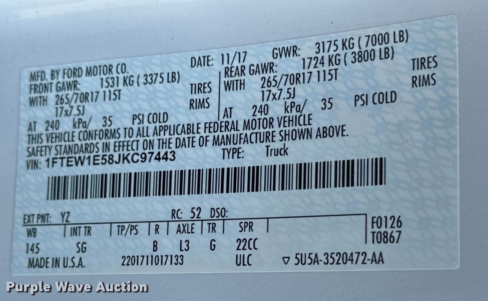 Purple Wave is selling a used 1/2 Ton Pickup or Van in Texas. This item is a 2018 Ford F150 SuperCrew pickup truck with the following: Miles: 197,358 on odometer, VIN: 1FTEW1E58JKC97443