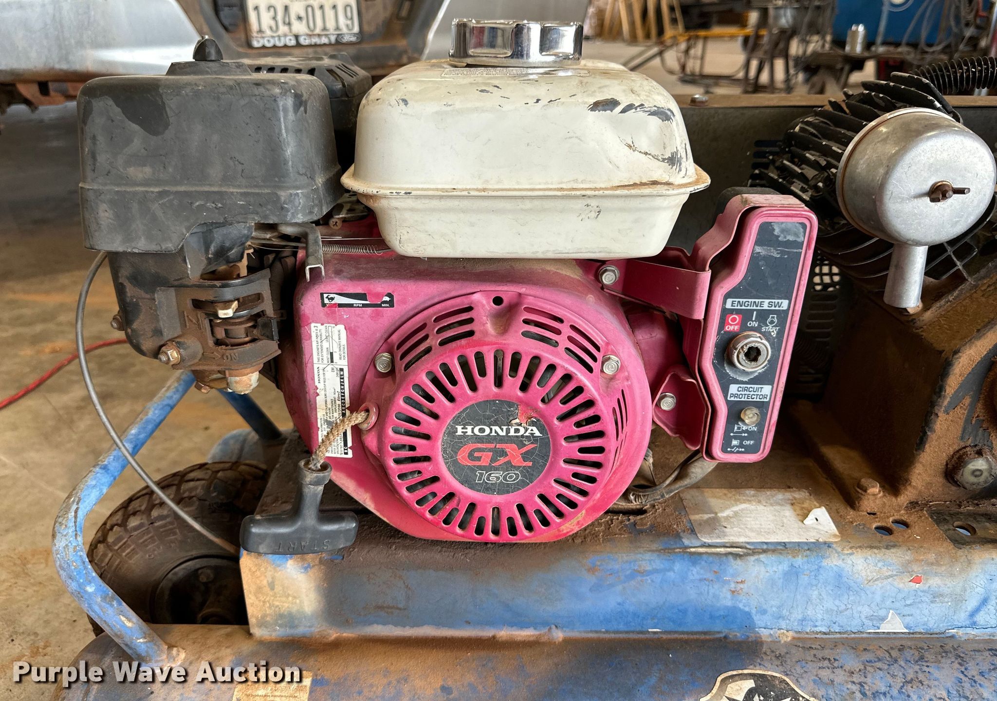 Purple Wave is selling a used Air Compressor in Texas. This item is a Eagle air compressor with the following: Honda GX160, Displacement: 160 cc, Fuel type: Gas