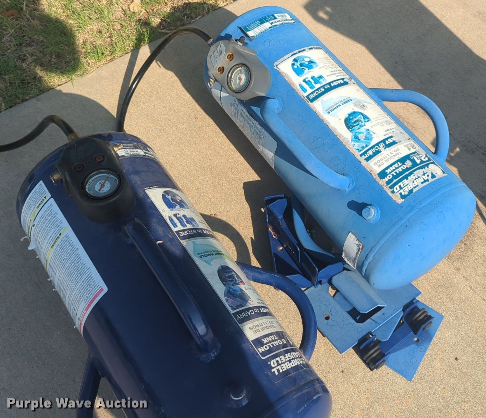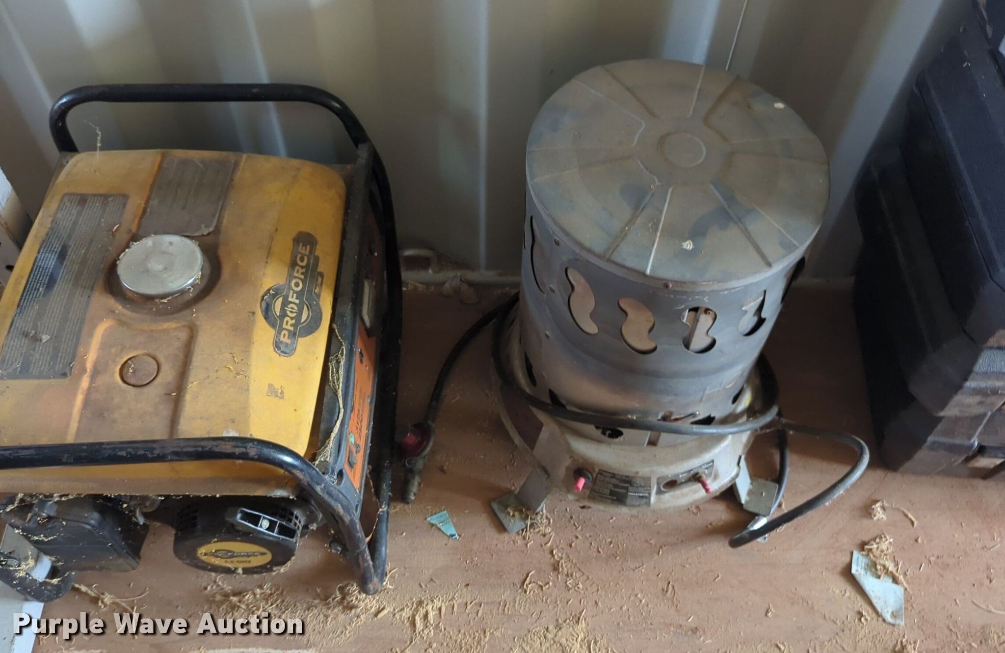 Purple Wave is selling a used Tools in Oklahoma. This item is a Tools with the following: Campell Hausfeld compressor, (2) portable tanks, (2) generators, Table saw, Table top jig saw, Table top grinder, Fill-Rite gas pump, Tempest power blower exhaust fan, Fuel type: Gas, Reddy heater, Snake Eye II camera system, Dewalt hand tools and more
