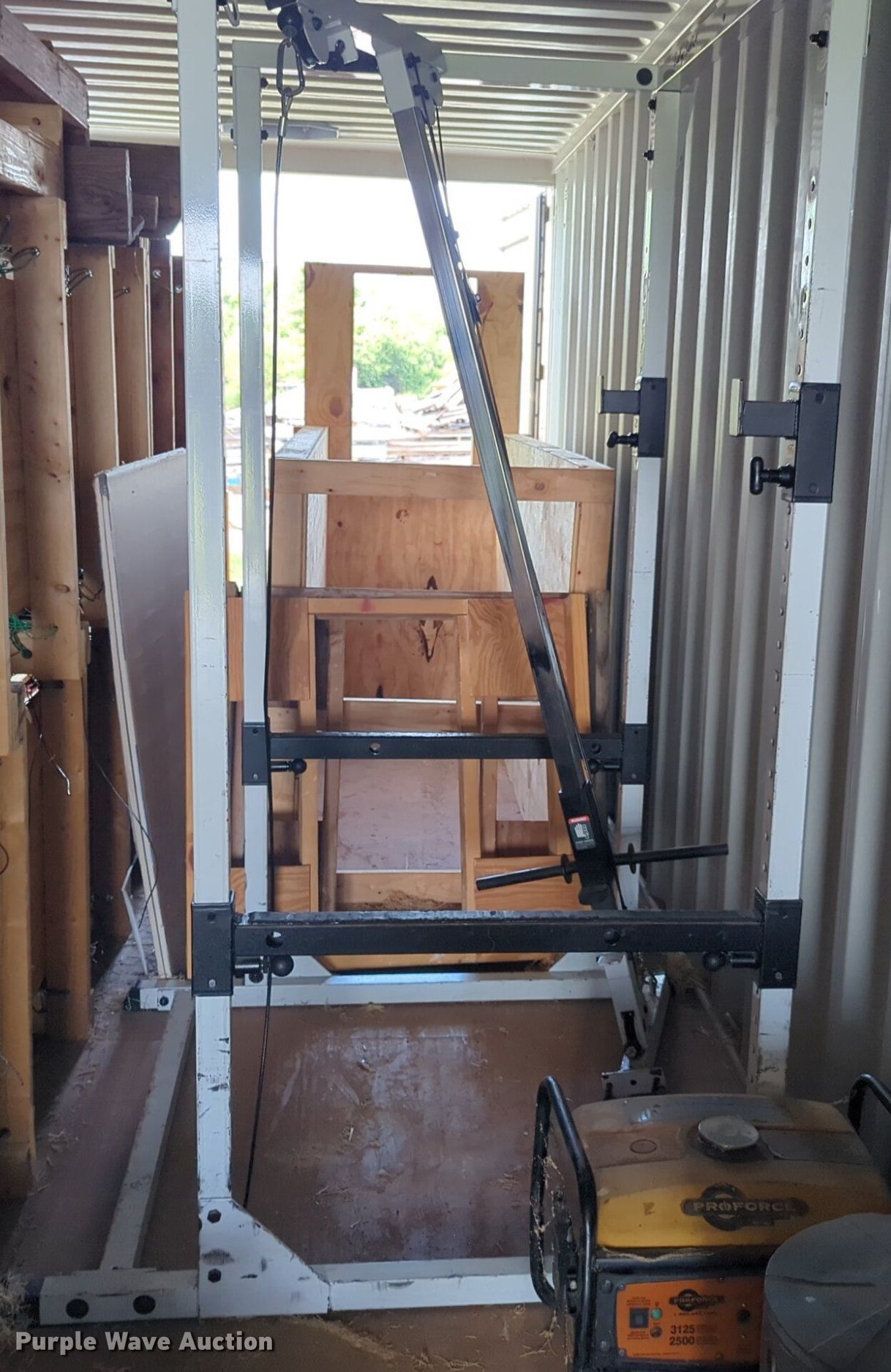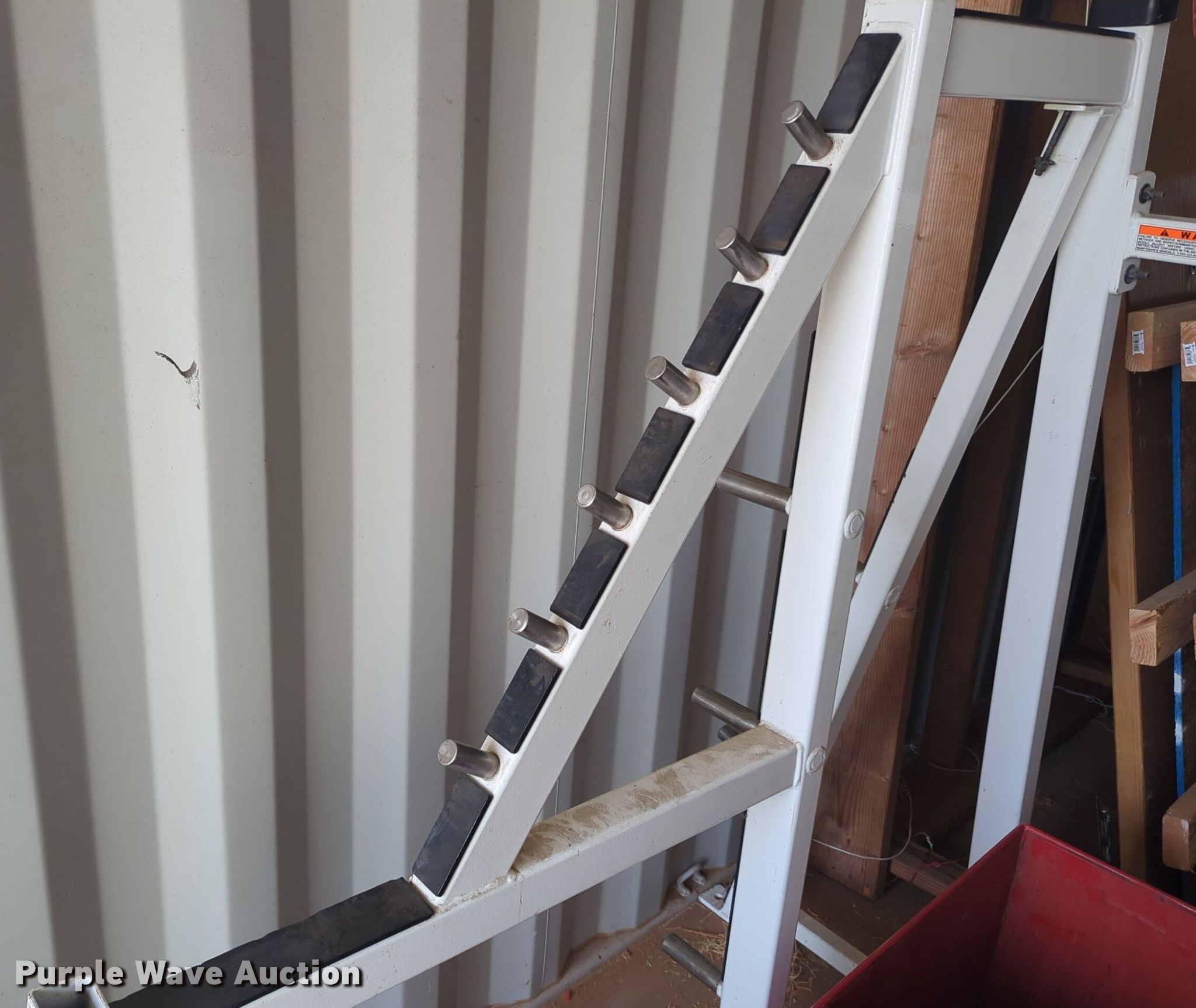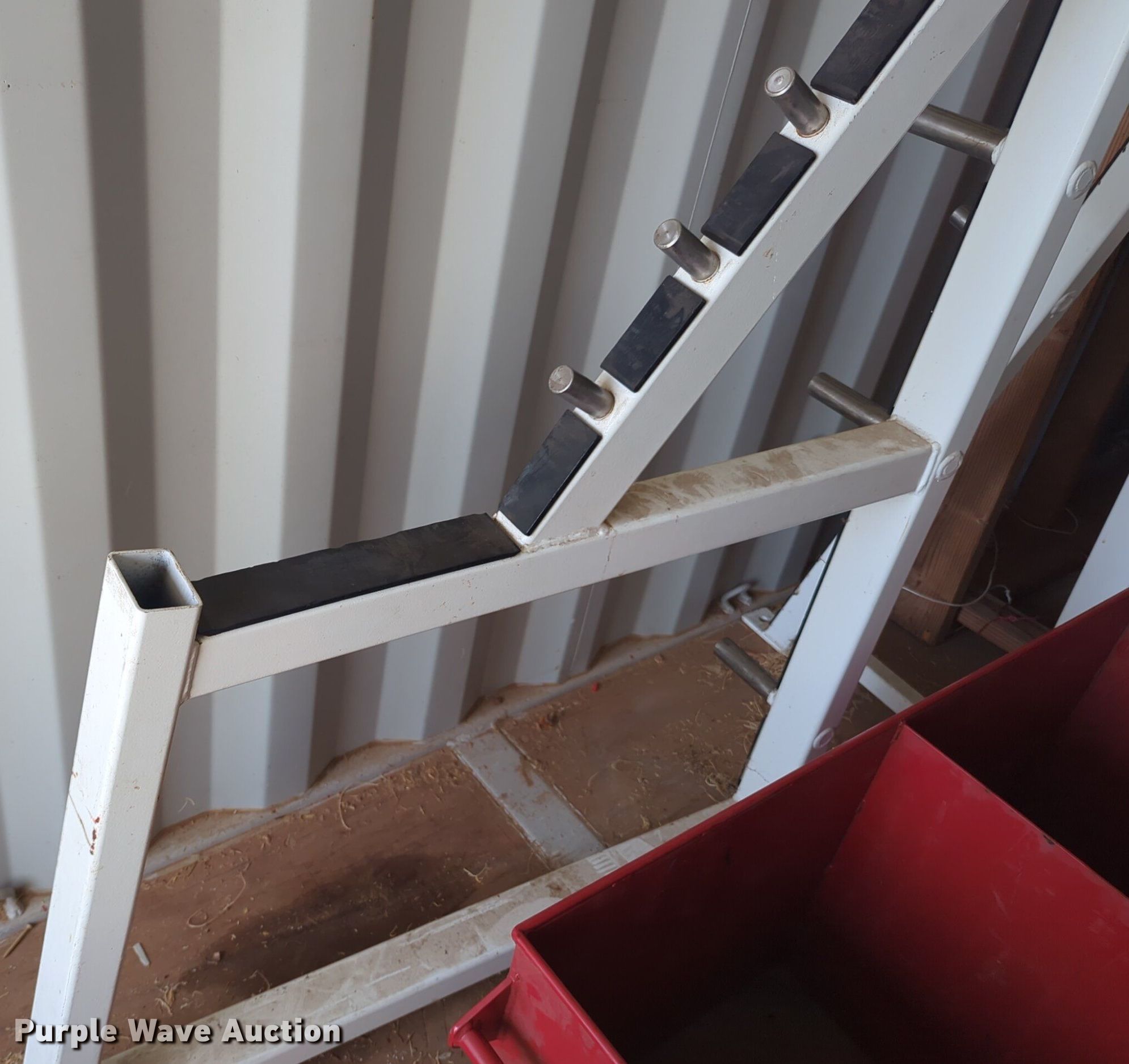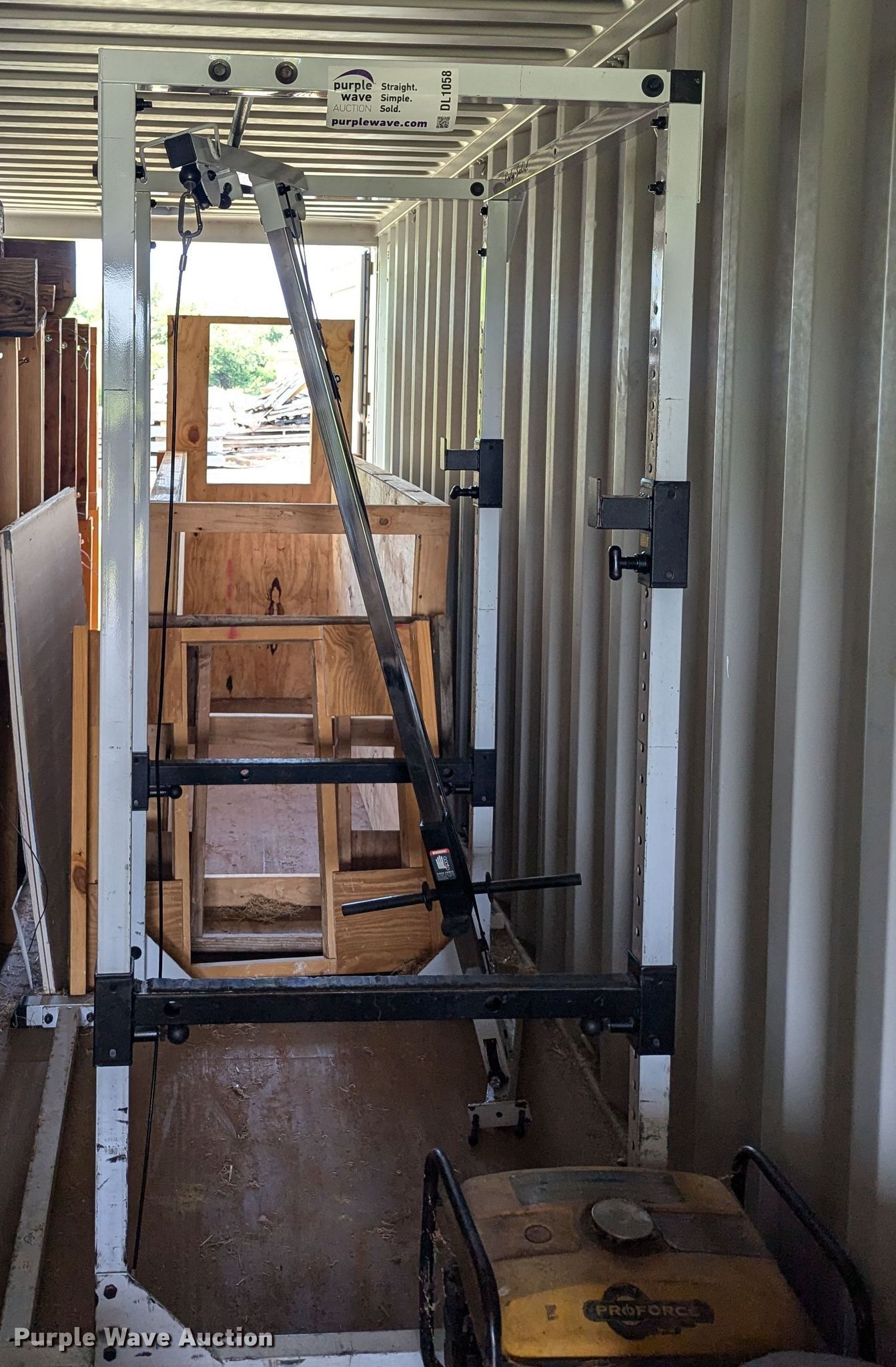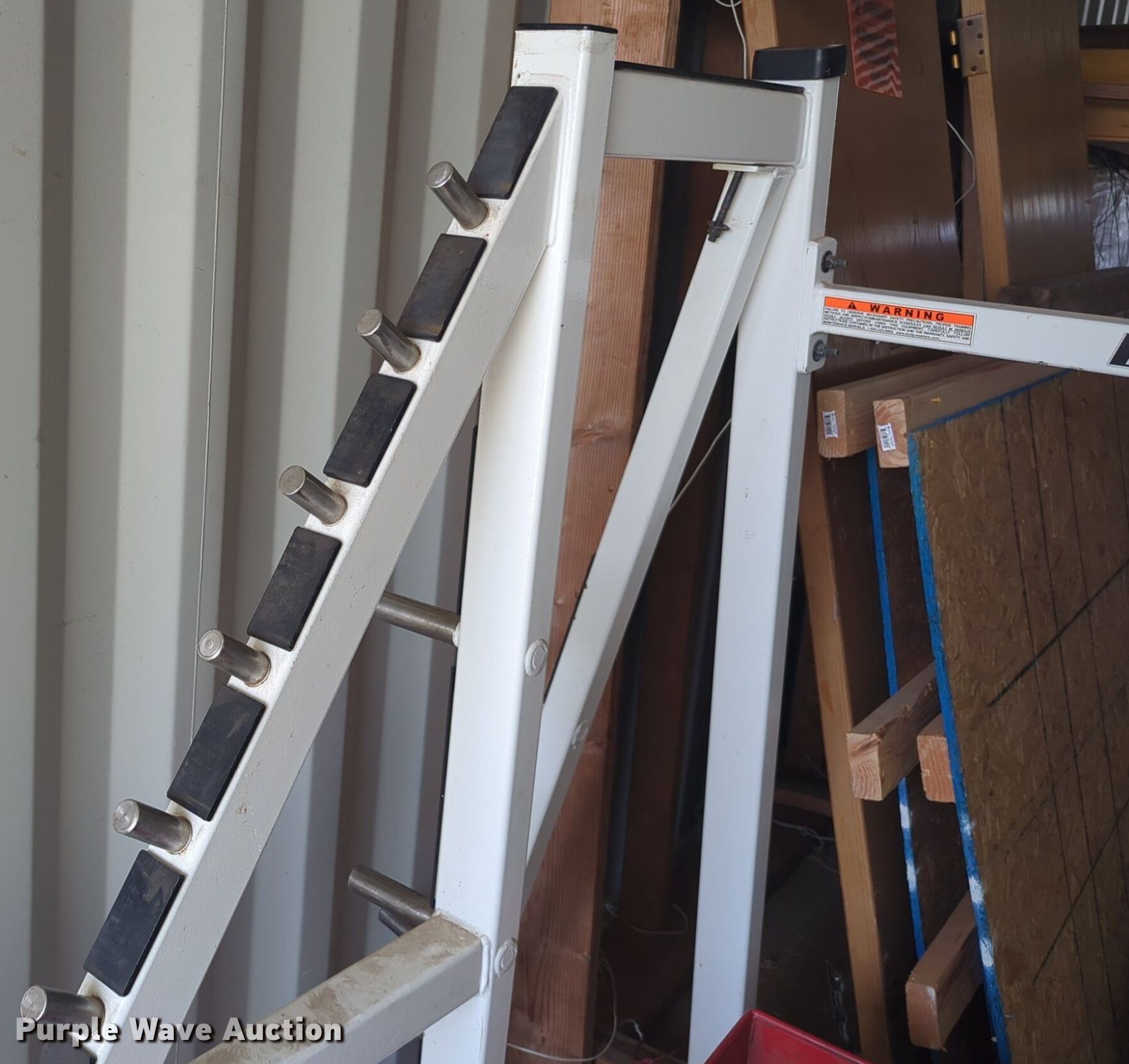 Purple Wave is selling a used Sporting Goods in Oklahoma. This item is a Body Masters workout equipment with the following: Squat rack, Bench press bench, Weight rack