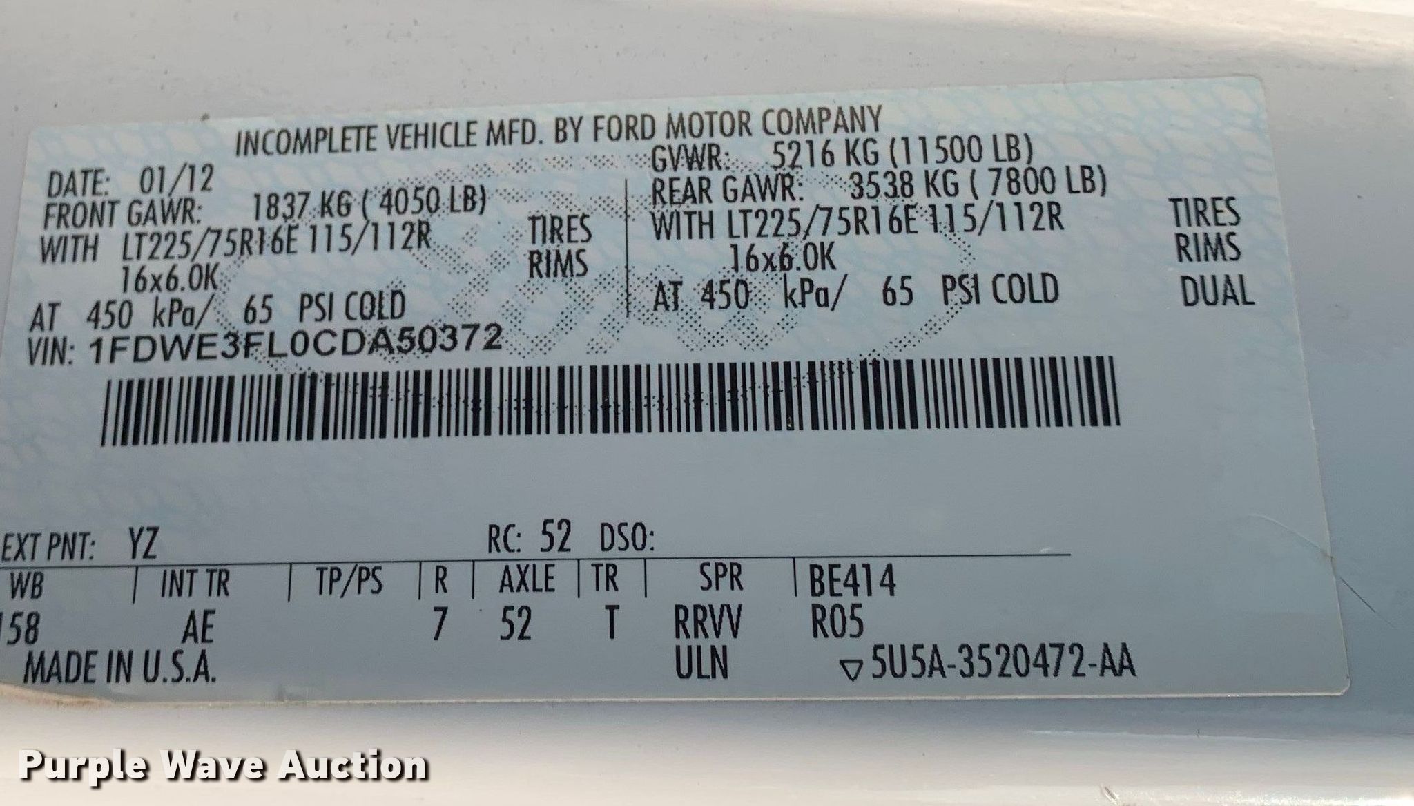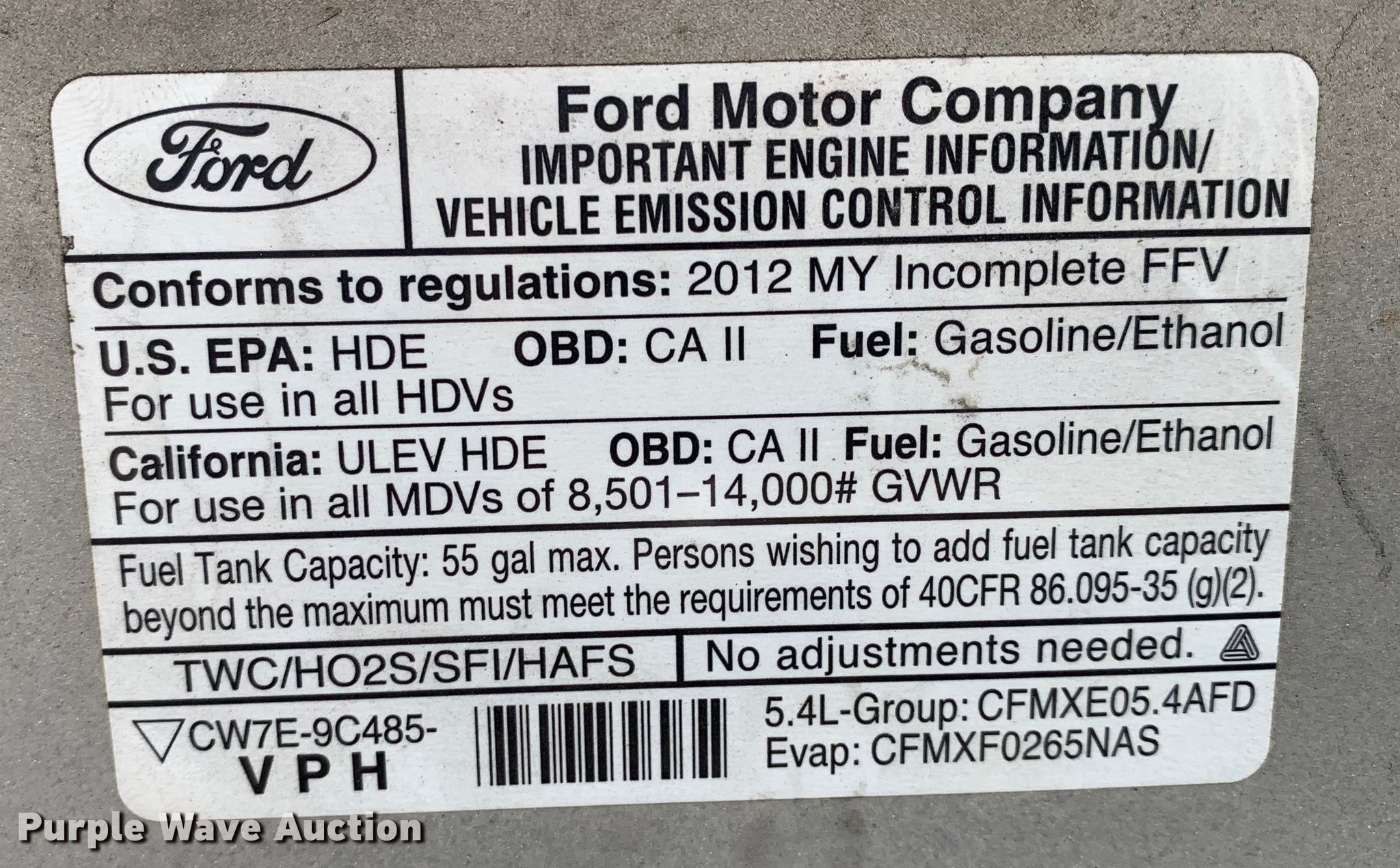 2012 Ford E350 Super Duty sewer inspection truck. Miles: 70,270 on odometer, VIN: 1FDWE3FL0CDA50372, Unit #: 12295. Engine Ford, Displacement: 5.4L V8 SOHC, Cylinders: 8, Fuel type: Gas. Transmission Automatic. Chassis Axles: Single, Suspension: Spring, Brakes: Hydraulic, GVWR: 11,500 lbs. Interior AC, Heat. Features Box bed 14' L x 100" W x 76" H, Floor: Wood, Sewer inspection equipment Enviorsight Rovver X 130 camera, Monitor, Hose reel. Tires Size: 225/75R16. Notes Contents included. View repairs. Texas title. Seller is a government entity who will be assigning and distributing the title. Please contact the seller for distribution questions. City of Tyler, TX. Tyler, TX 75702