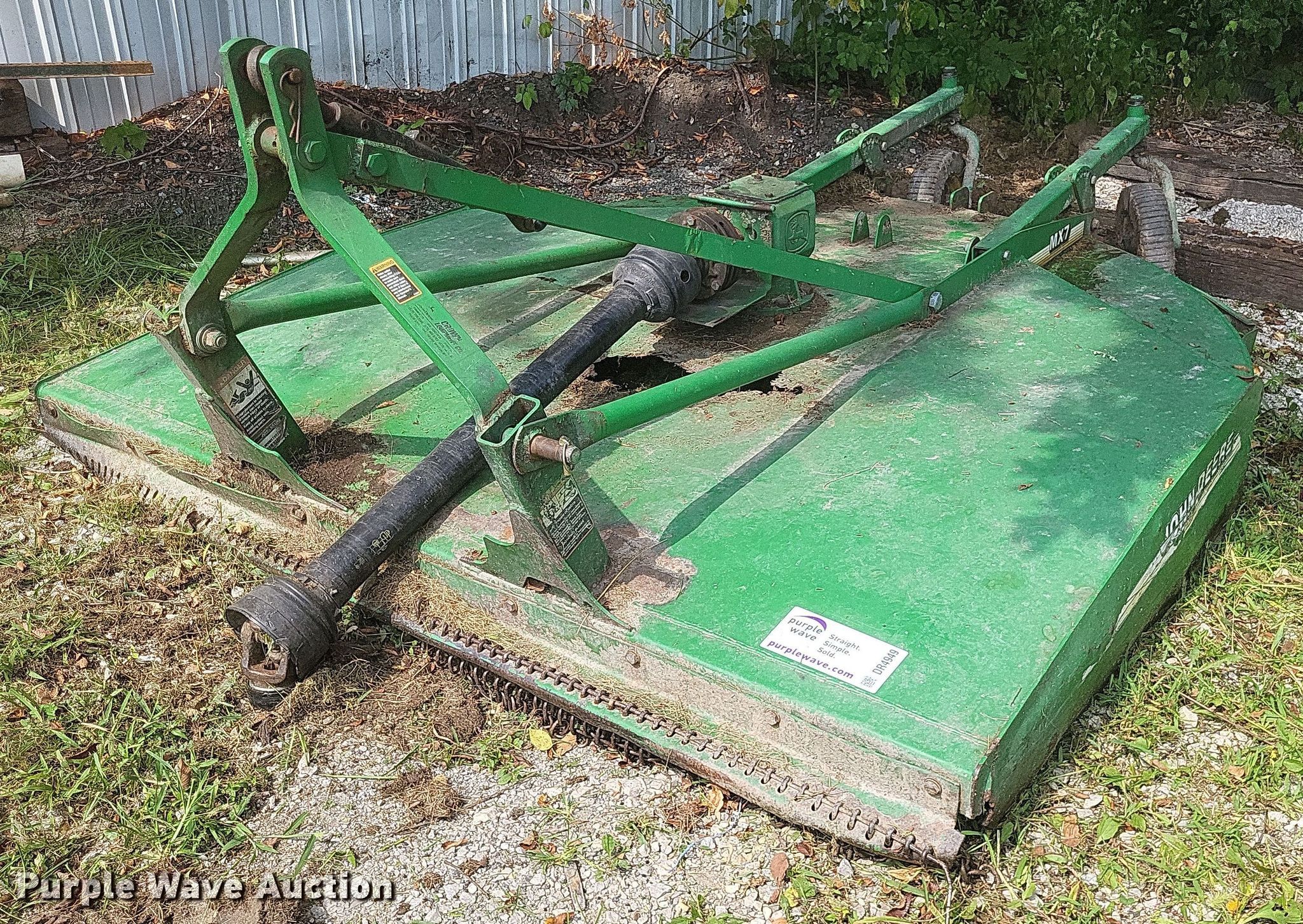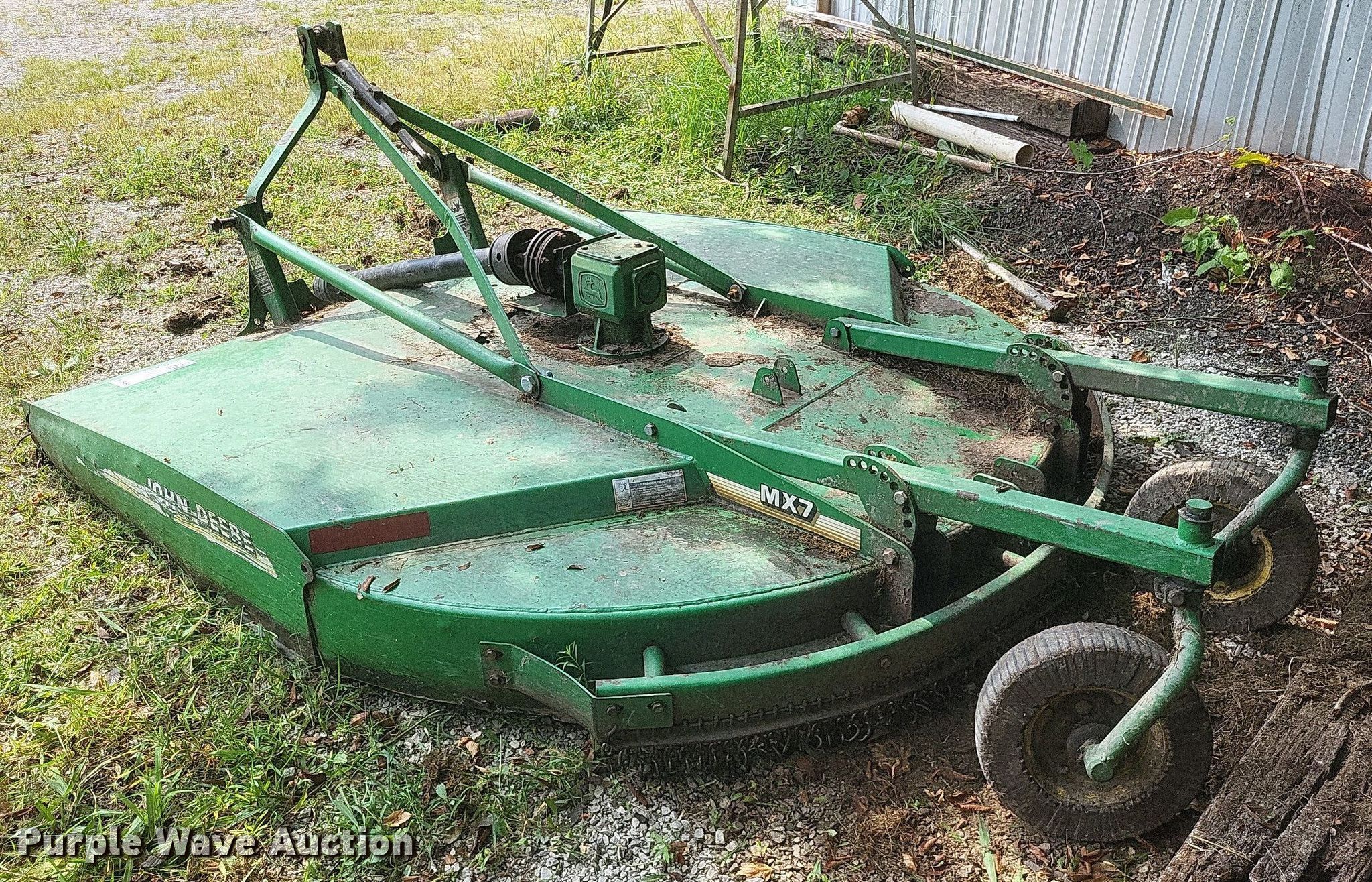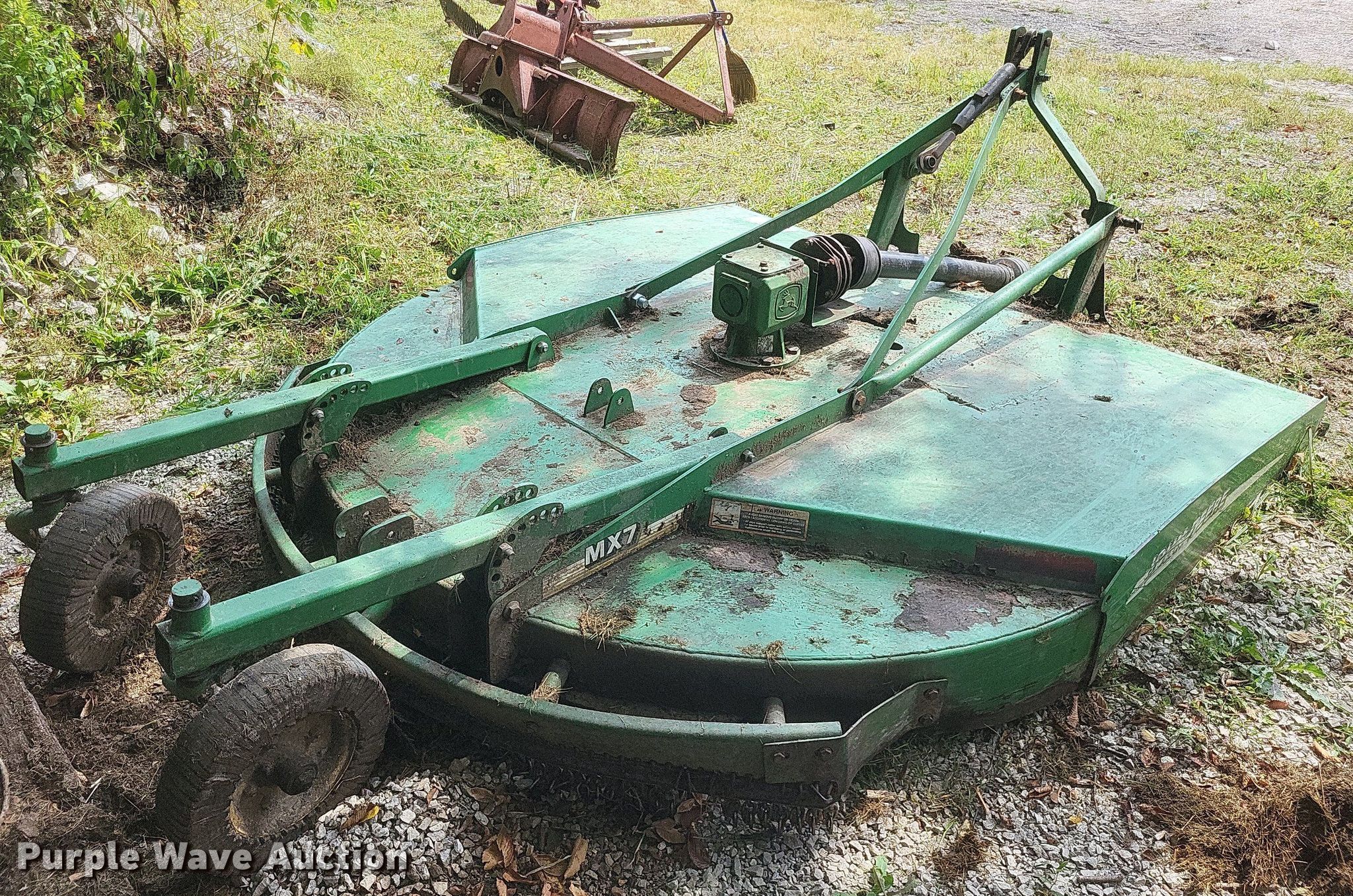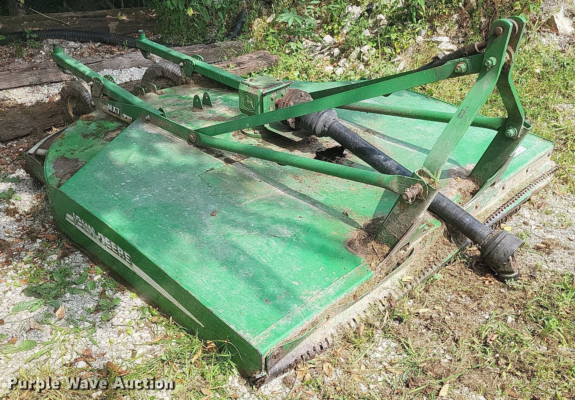 Purple Wave is selling a used Mower, Cutter, Shredder in Missouri. This item is a John Deere MX7 rotary mower with the following: Width: 7', PTO: 540, Hitch: Three point