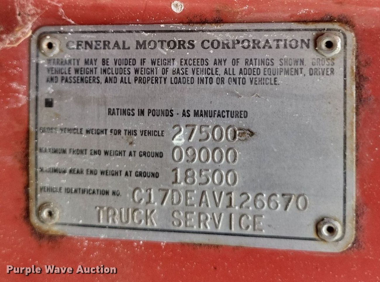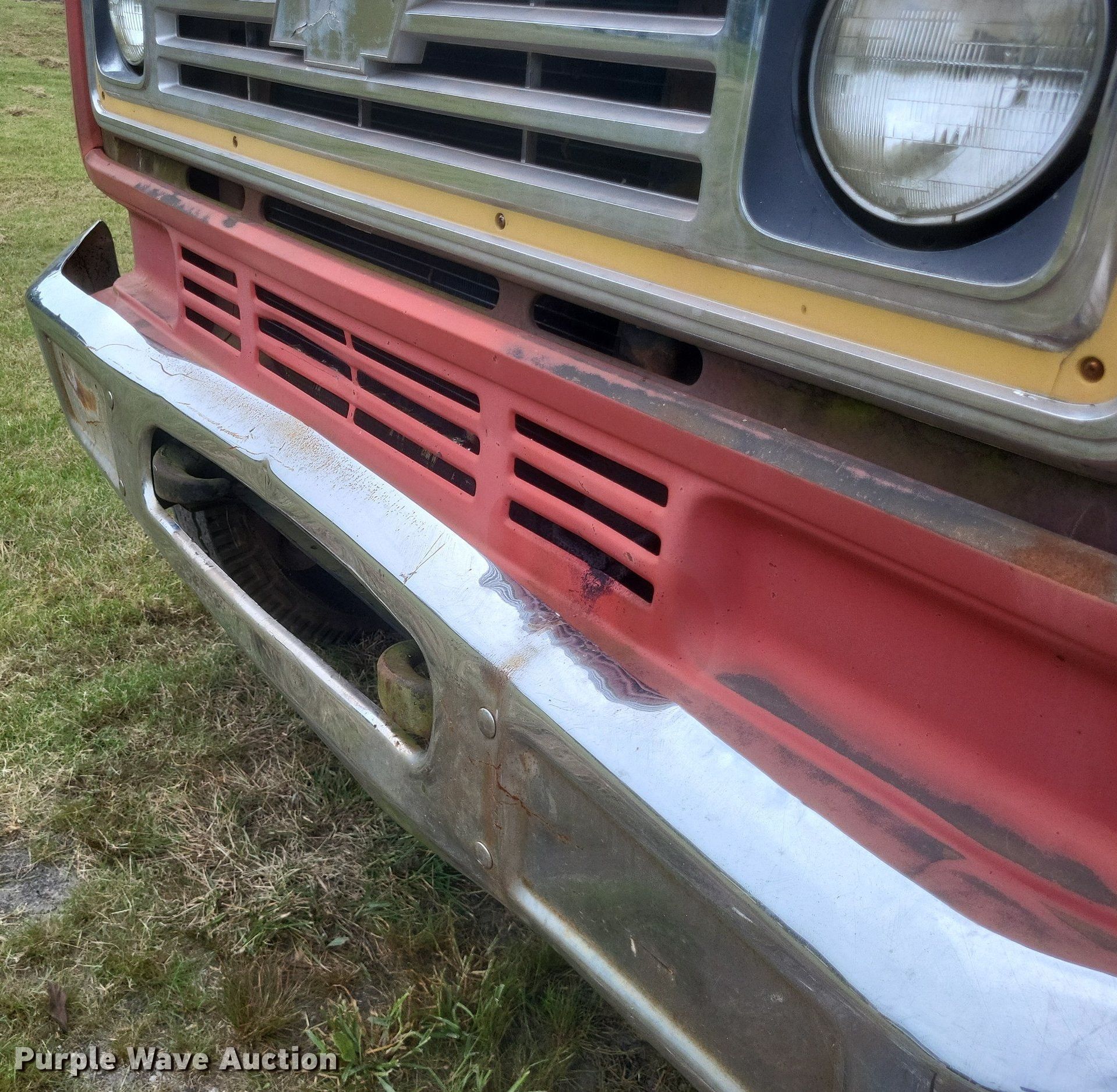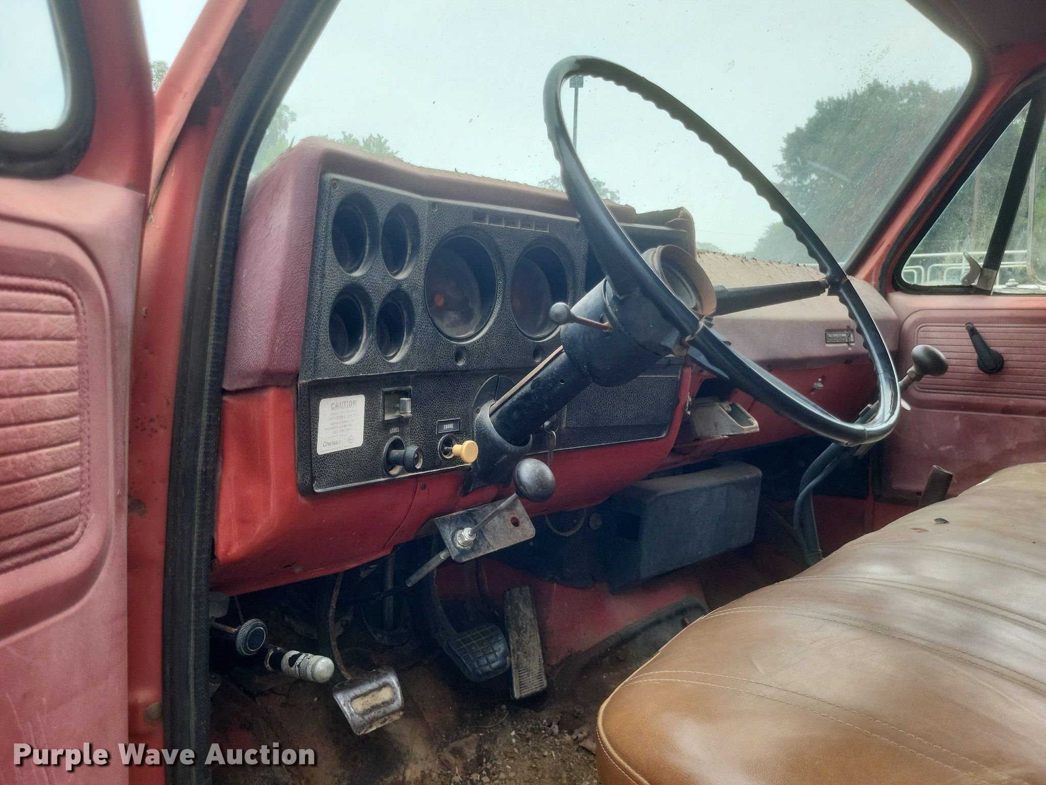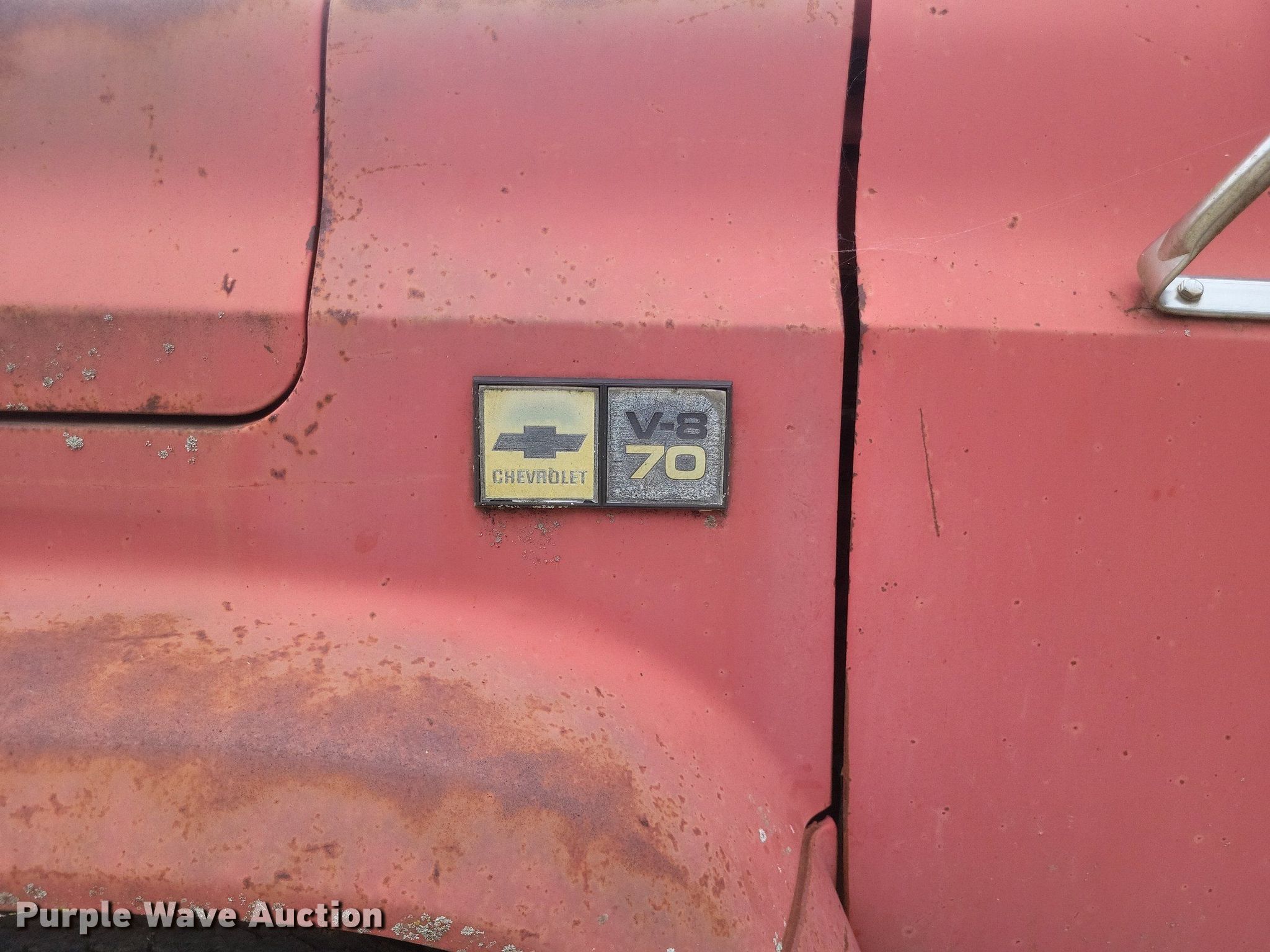 1980 Chevrolet 70 dump truck. Miles: 90,916 on odometer, VIN: C17DEAV126670. Engine GM, Displacement: 7.0L, Cylinders: 8, Fuel type: Gas. Transmission Manual, Speed: 5, plus 2. Chassis Axles: Single, Suspension: Spring, Brakes: Hydraulic, GVWR: 27,500 lbs FAWR: 9,000 lbs, RAWR: 18,500 lbs. Interior Heat. Features Dump bed 10' L x 95" W, Side height: 25", Bed type: Steel, Ram: Single, End gate: Manual. Tires Size: 10.00-20. Notes Dead battery. Missouri title. Title distribution may be delayed up to 14 days from verification of funds. City of Saint Mary, MO. Saint Mary, MO 63673