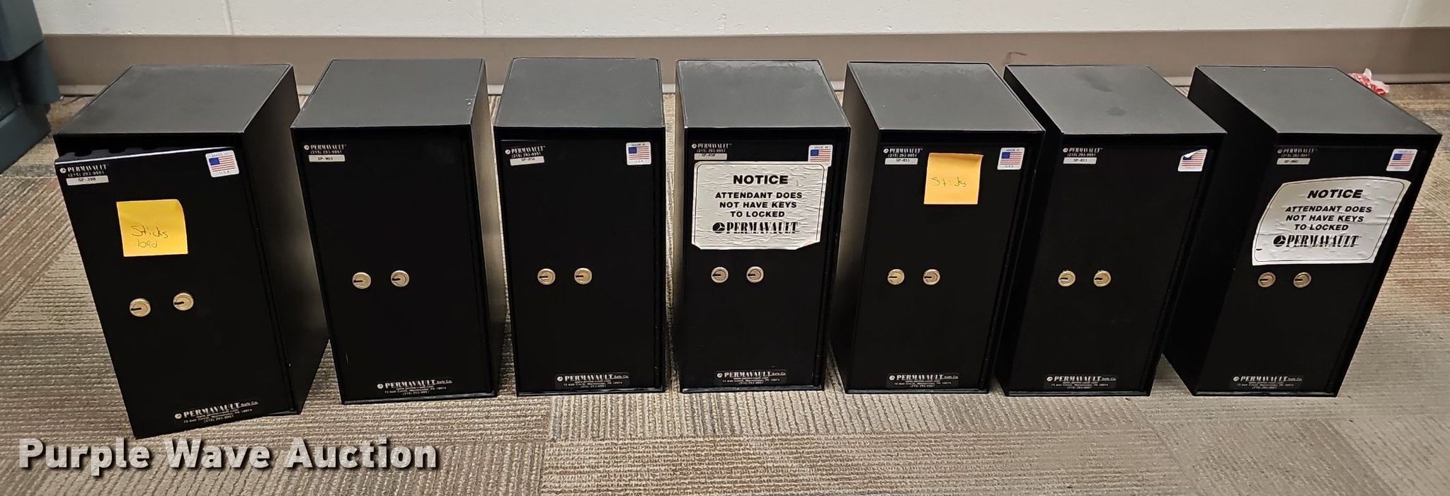 Purple Wave is selling a used Office Supplies and Equip. in Nebraska. This item is a (8) safes with the following: (7) Permavault, 7" L x 6" W x 12" H, Major 171718, 23" L x 21" W x 21" H, Dolly