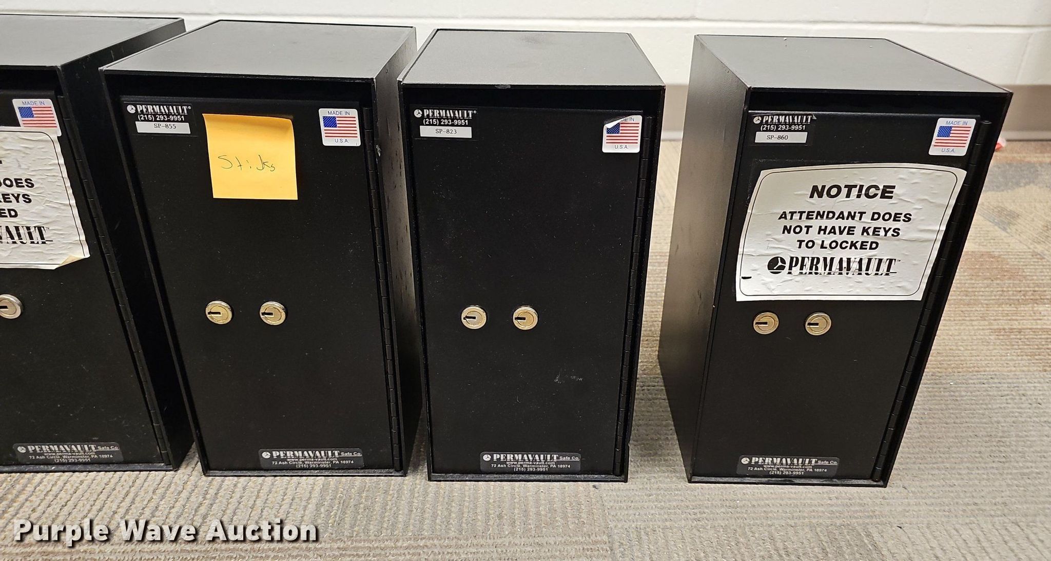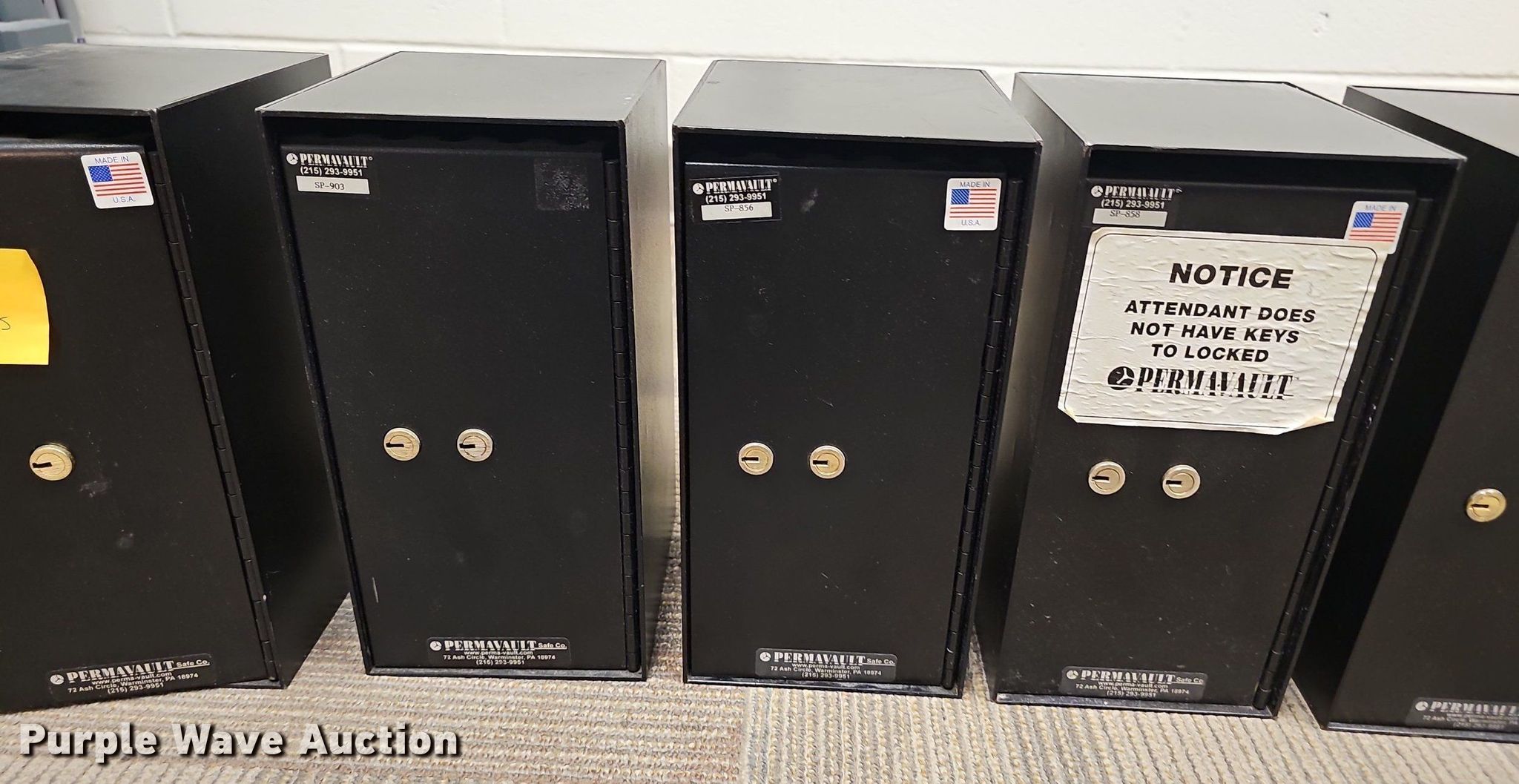 (8) safes. (7) Permavault 7" L x 6" W x 12" H, Major 171718 23" L x 21" W x 21" H, Dolly. City of Lincoln Pinnace Bank Arena- Food/Beverage Dept. Lincoln, NE 68508