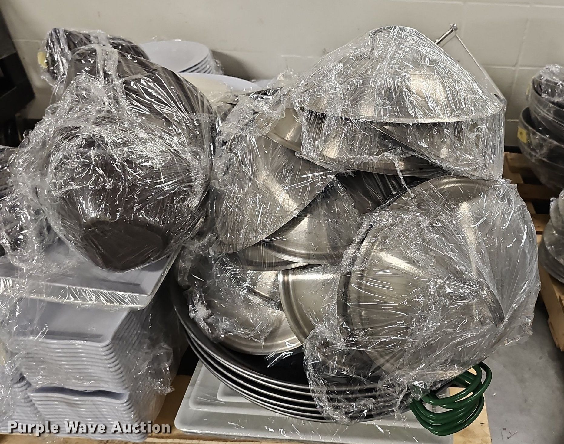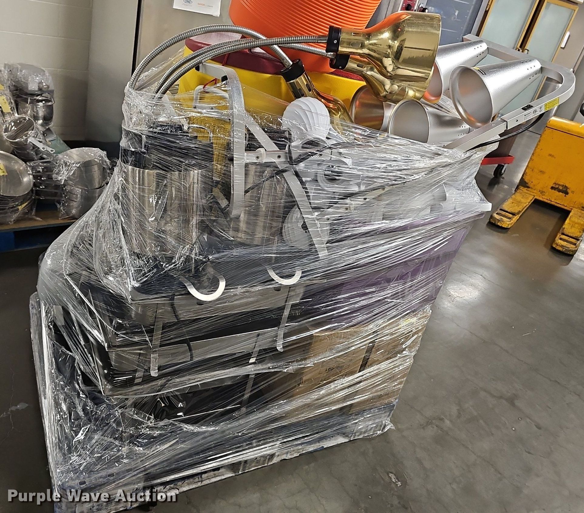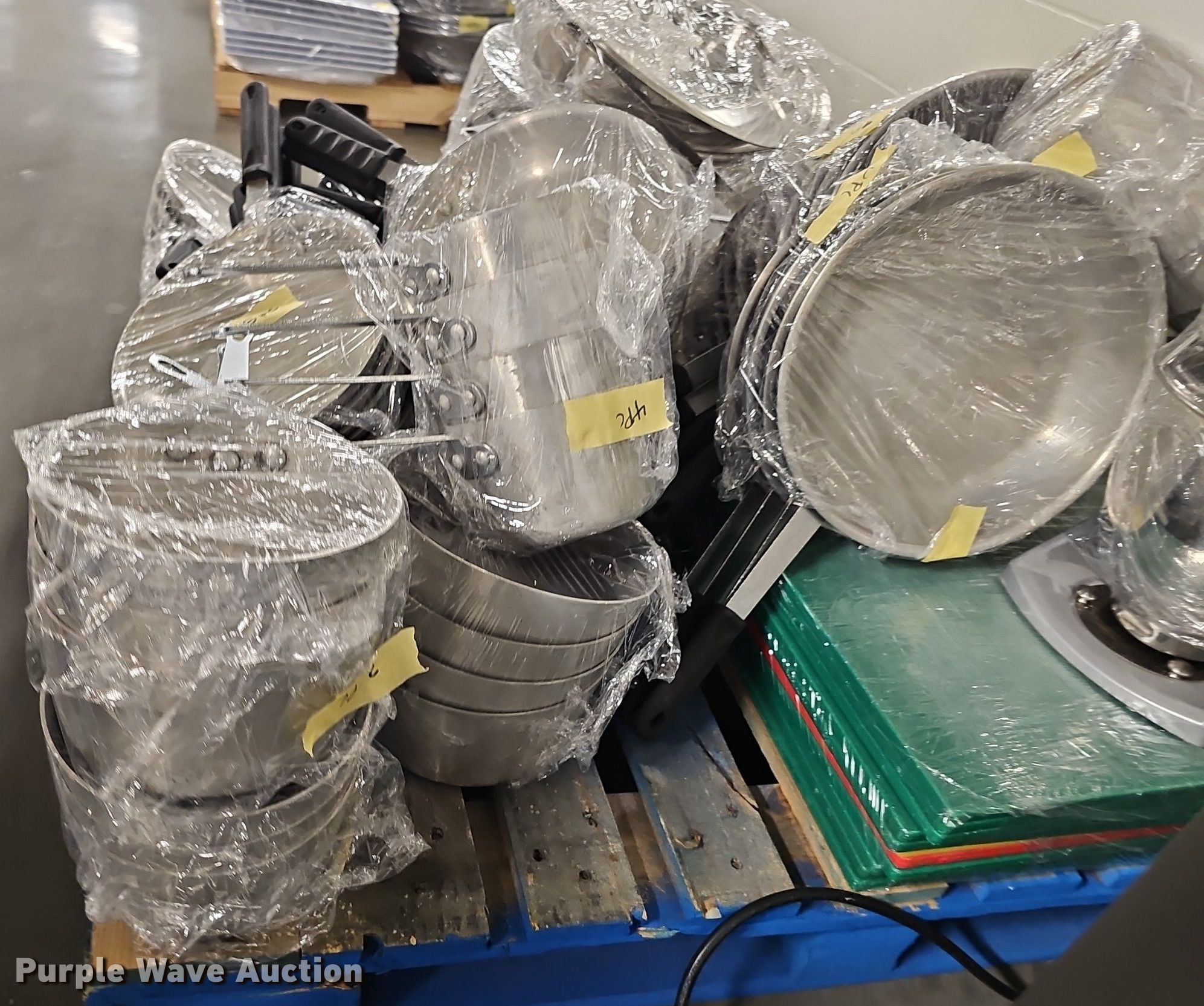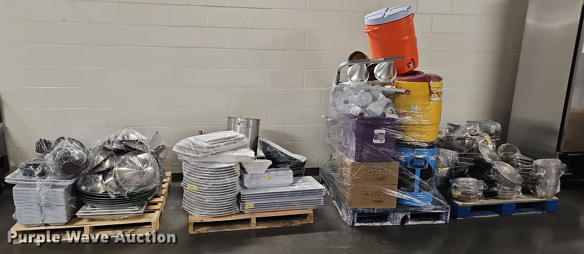 Purple Wave is selling a used Restaurant Equip. in Nebraska. This item is a Restaurant equipment with the following: Globe meat slicers, Varimixer mixer, Fryer, (5) coolers, Lights, (178) platters, (92) pans, (93) bowls