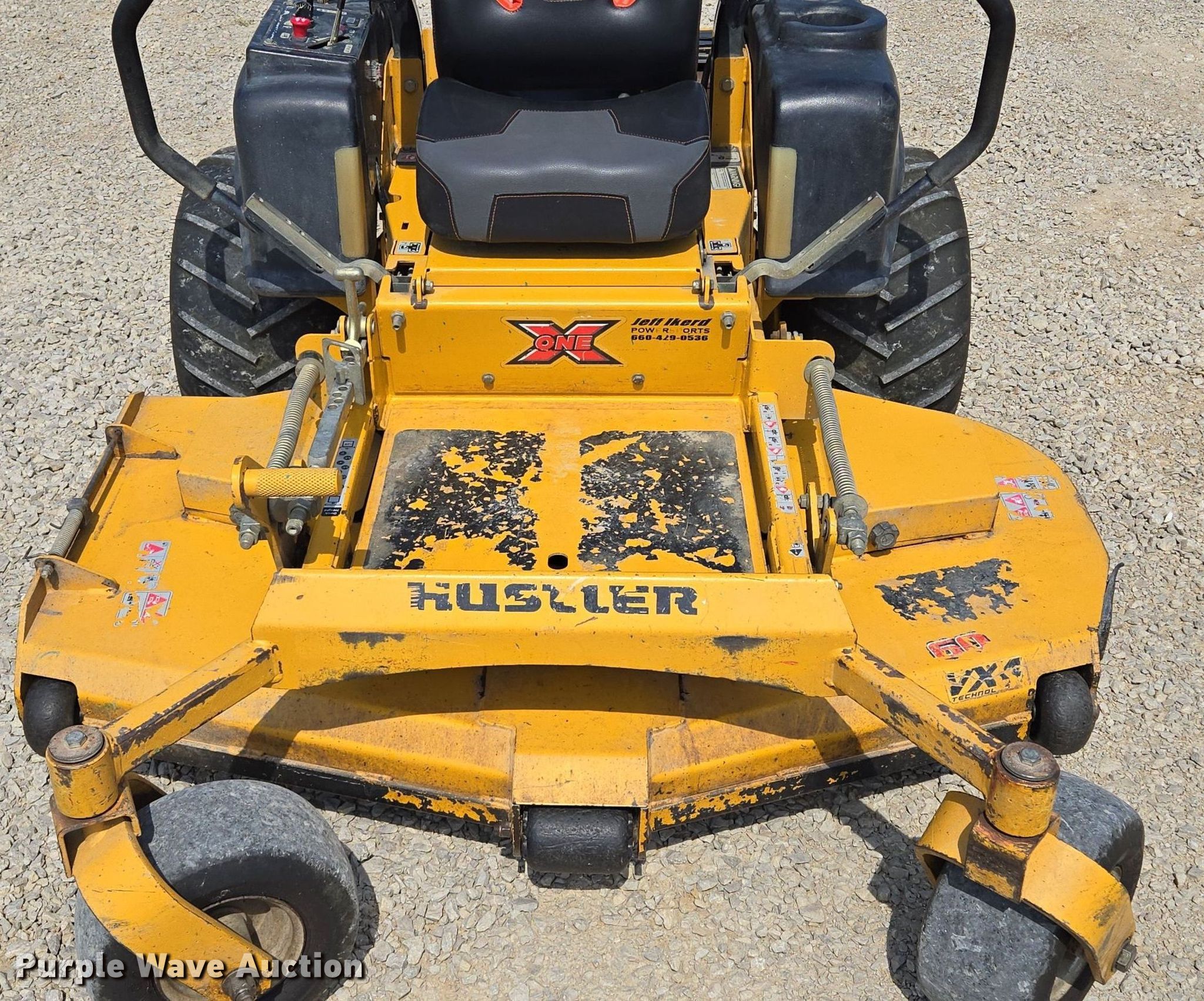 Purple Wave is selling a used Commercial Turf Mower in Missouri. This item is a Hustler X-One ZTR lawn mower with the following: Hours: 1,117 on meter, Cutting width: 60", Serial: 11081360