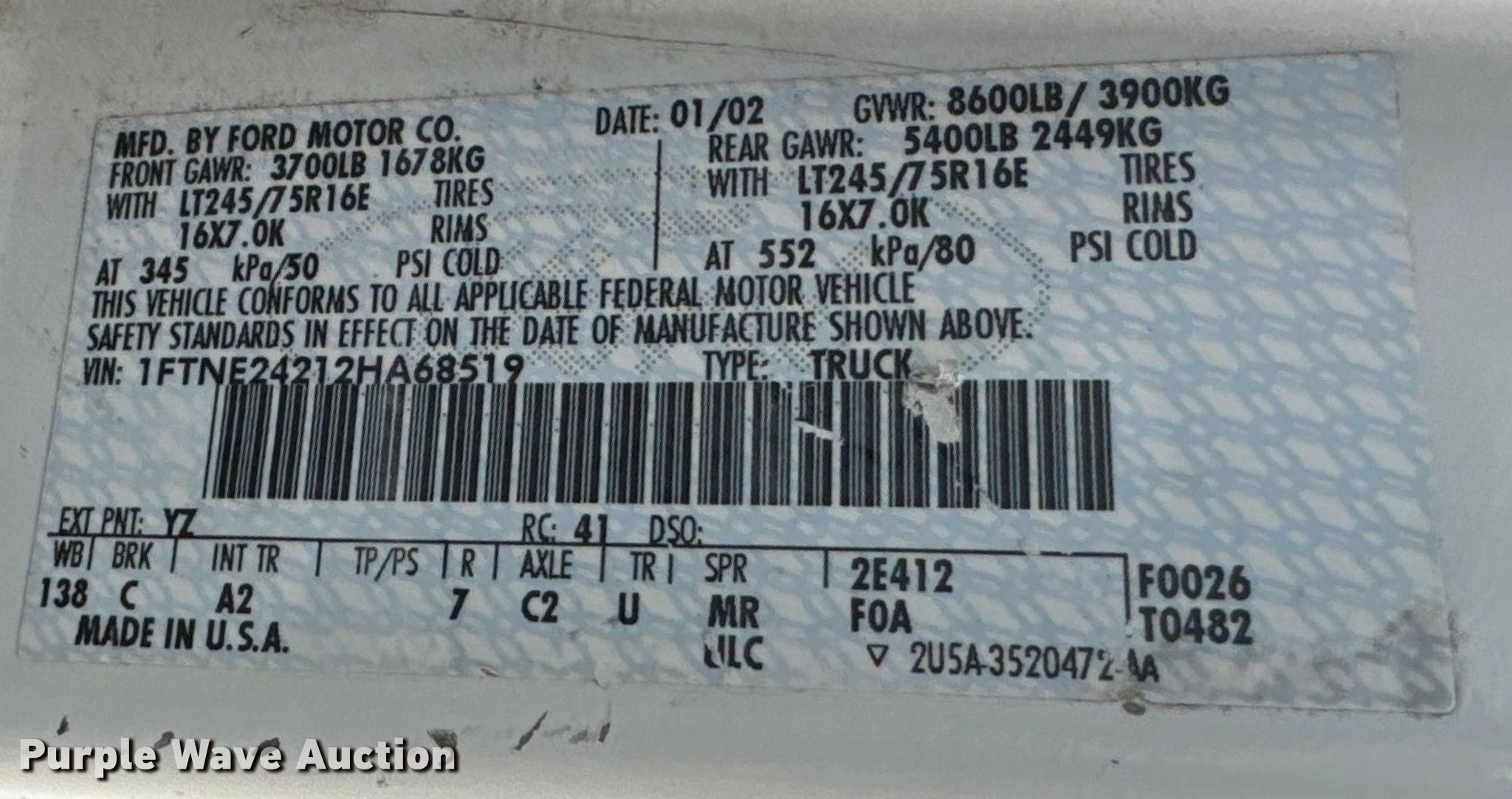 - VIN: 1FTNE24212HA68519