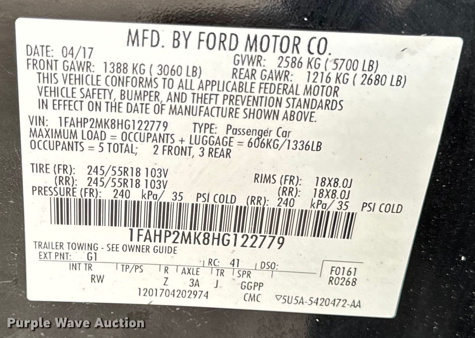 2017 Ford Taurus Police Interceptor. Miles: 123,859 on odometer, Engine hours: 19,002 on meter, VIN: 1FAHP2MK8HG122779. Engine Displacement: 3.7L V6 DOHC, Cylinders: 6, Fuel type: Gas. Transmission Automatic, All wheel drive. Interior AC, Heat, Seat: Power driver, Power windows, Power locks, Cruise control, Backup camera. Tires Size: 245/55R16. Notes Dash warning indicator: Check engine, Dead battery. Iowa title. Title distribution may be delayed up to 14 days from verification of funds. City of Waterloo, Iowa. Waterloo, IA 50703