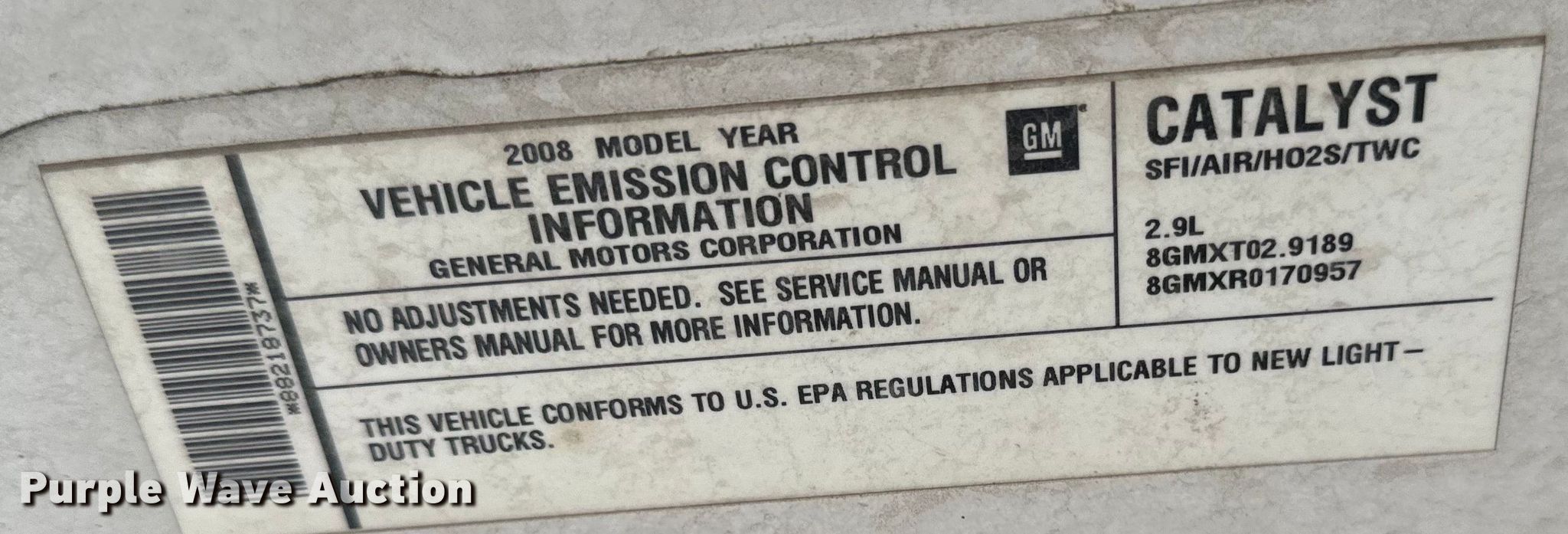 2008 Chevorlet Colorado Ext. Cab pickup truck. Miles: 74,071 on odometer, VIN: 1GCCS399088218737. Engine Displacement: 2.9L L4 DOHC, Cylinders: 4, Fuel type: Gas. Transmission Automatic. Interior AC, Heat, Power windows, Power locks, Cruise control. Tires Size: P225/75R15. Notes Dash warning indicator: Check engine, TPMS. Iowa title. Title distribution may be delayed up to 14 days from verification of funds. City of Waterloo, Iowa. Waterloo, IA 50703