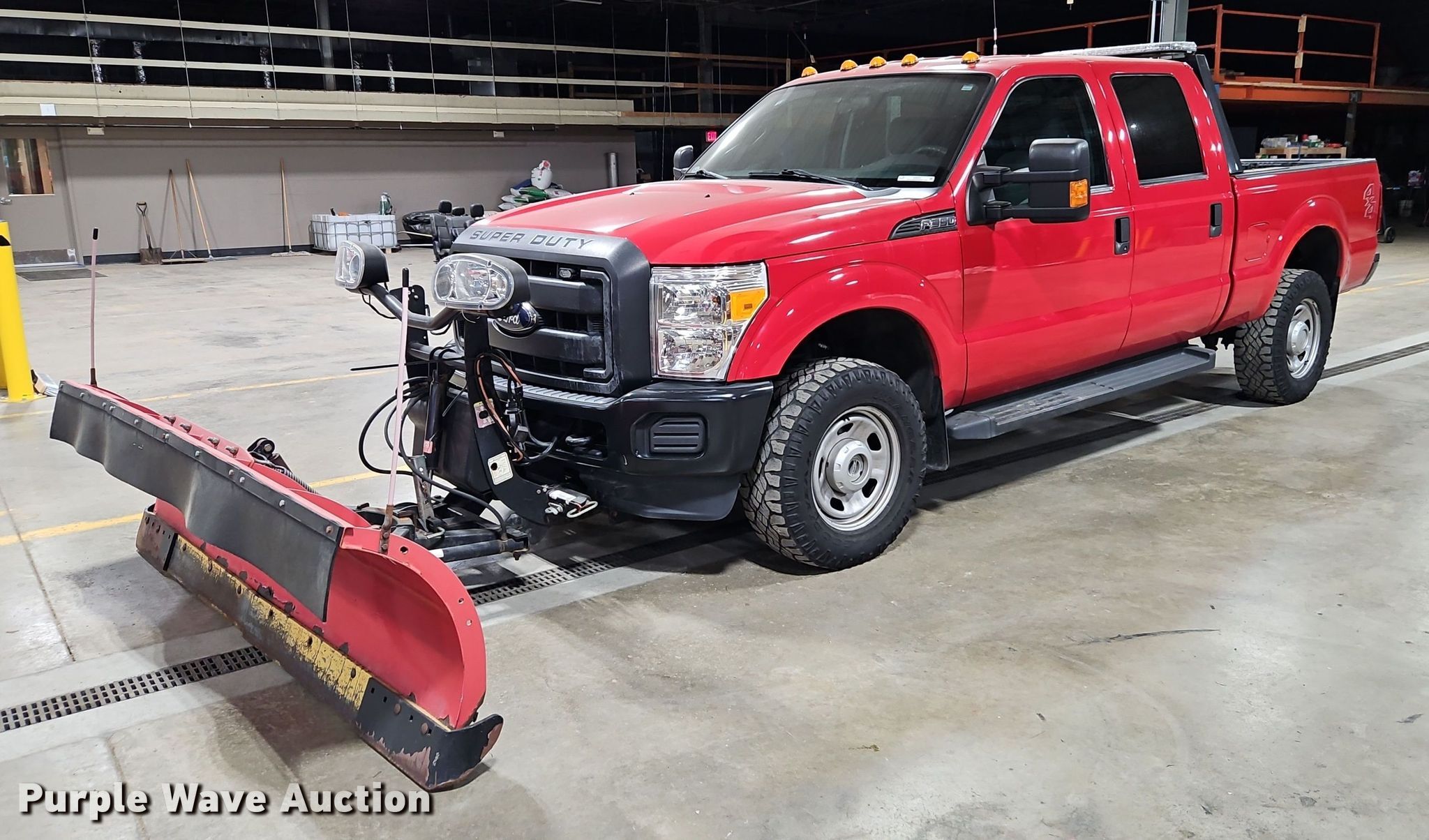 2012 Ford F350 Super Duty Crew Cab pickup truck. Miles: 81,206 on odometer, Hours: 7,426 on meter, VIN: 1FT8W3B60CEC68915. Engine Displacement: 6.2L V8 OHV, Cylinders: 8, Fuel type: Gas. Transmission Automatic, Four wheel drive. Interior AC, Heat, Power windows, Power locks, Cruise control. Features The Boss RT3 8' 6" snow plow. Tires Size: 275/70R18. Notes Dash warning indicator: Oil change required. Kansas title. City of Roeland Park, KS. Kansas City, KS 66106