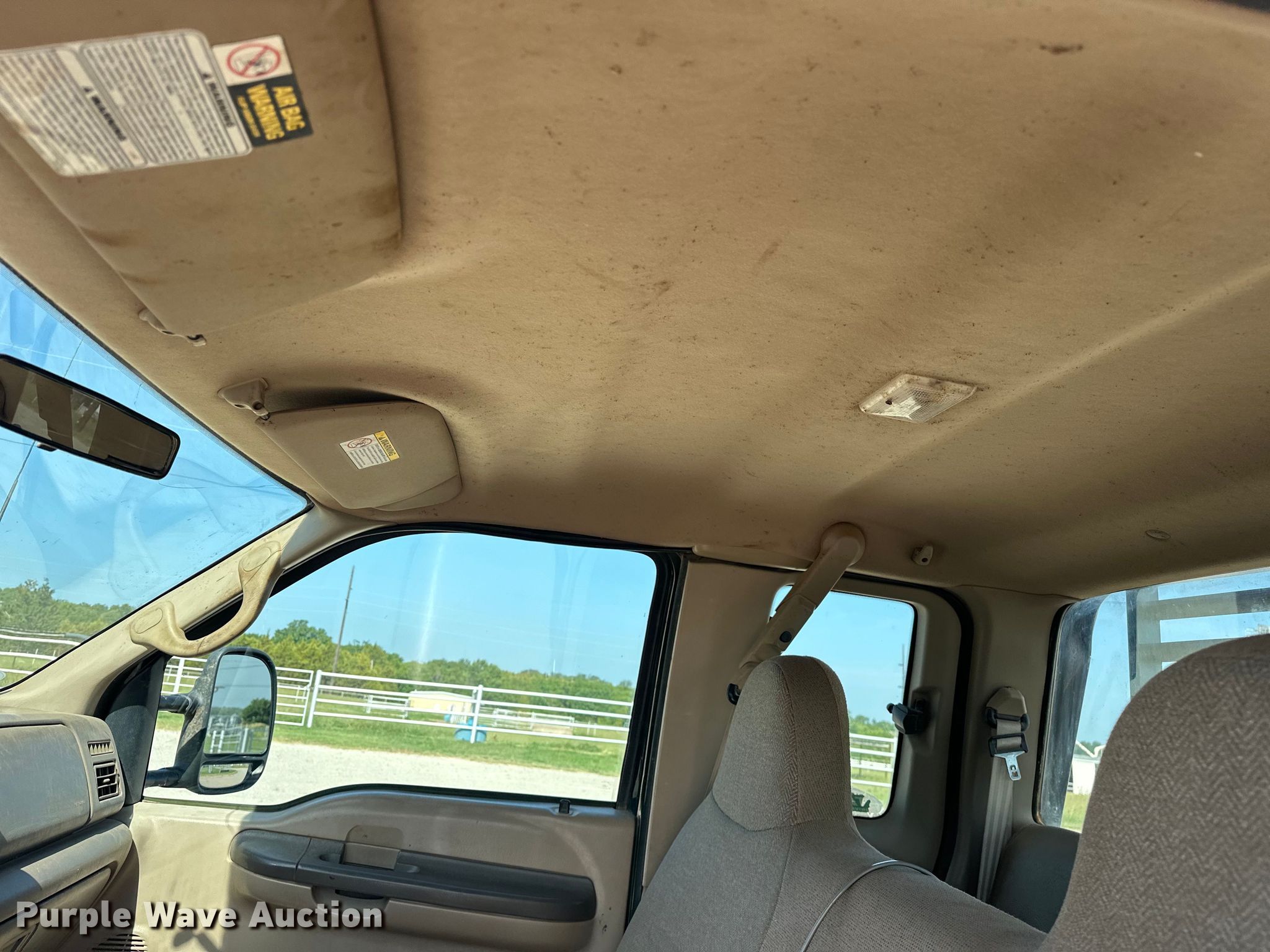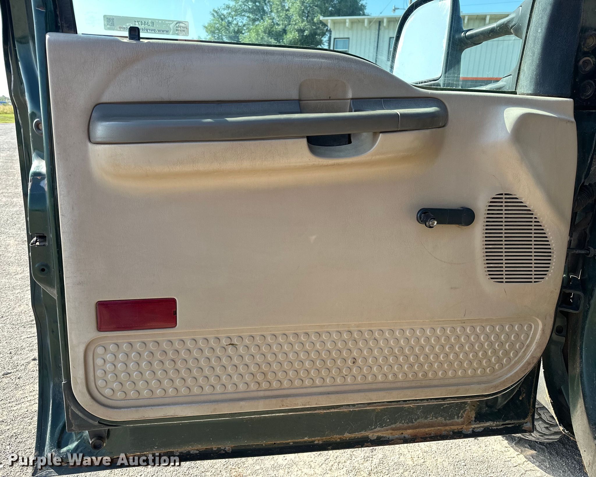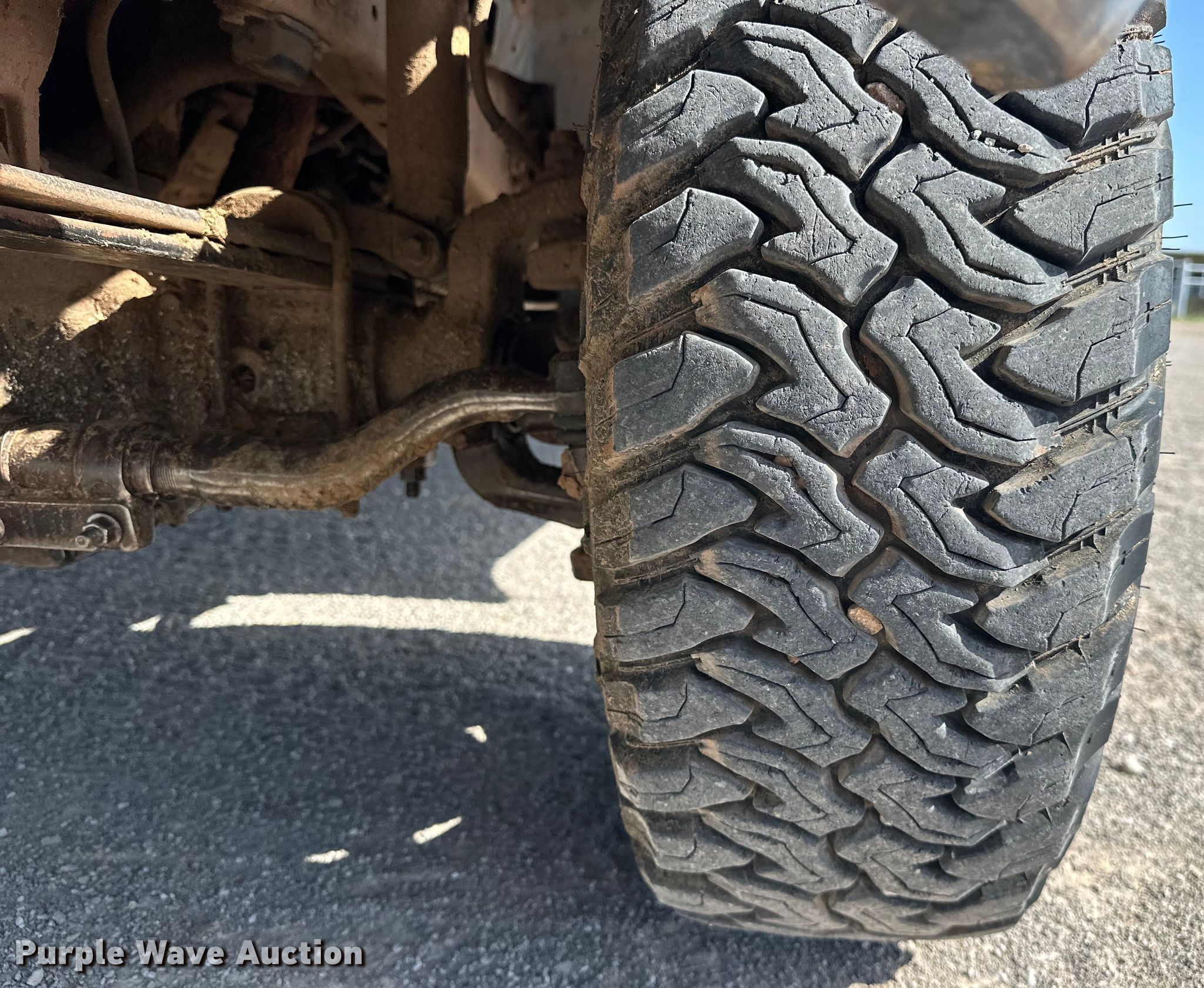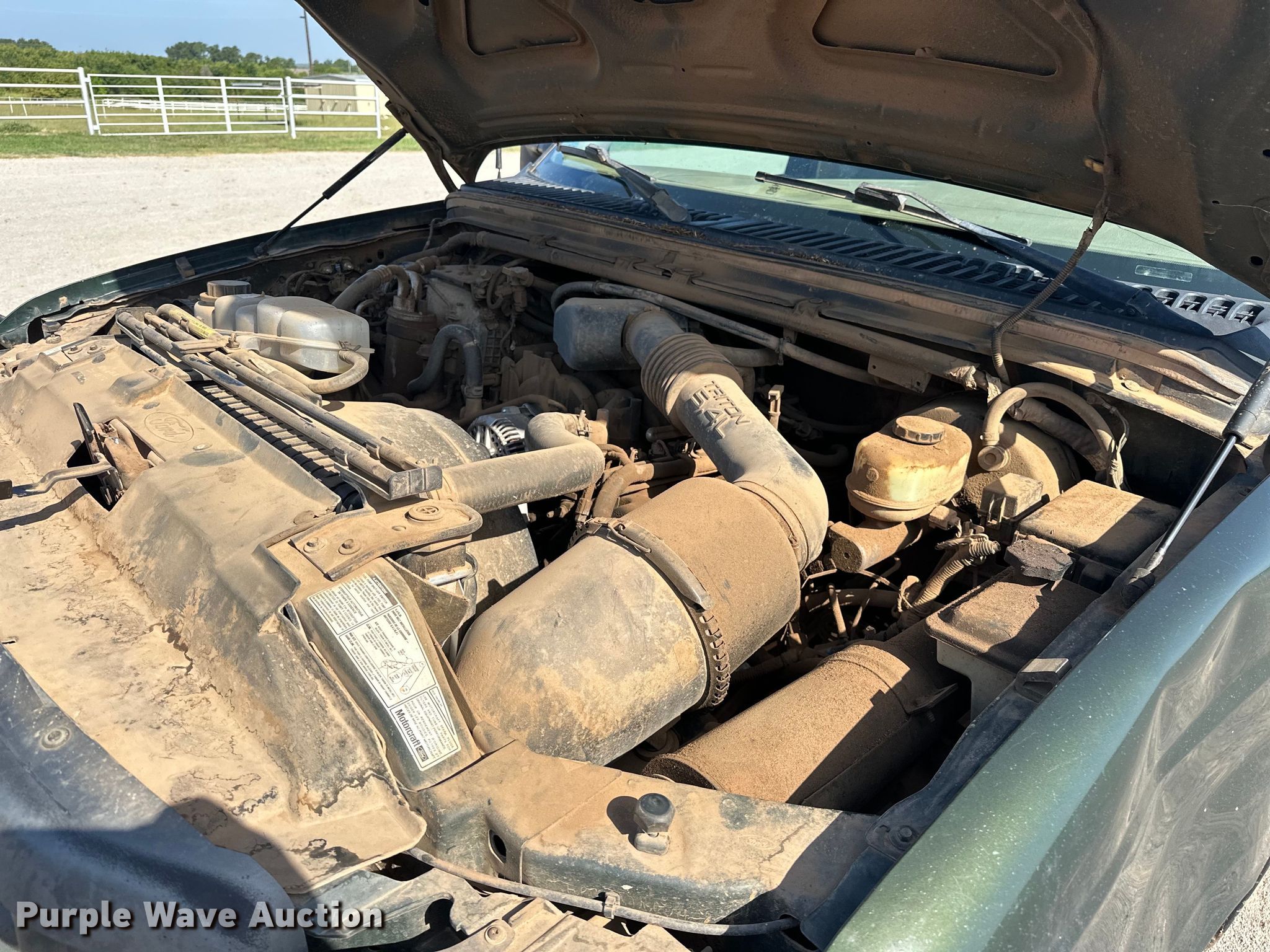 2000 Ford F250 Super Duty SuperCab flatbed pickup truck. Miles: 247,296 on odometer, VIN: 1FTNX21L3YED76129, Unit #: 354. Engine Displacement: 5.4L V8 SOHC, Cylinders: 8, Fuel type: Gas. Transmission Automatic, Four wheel drive. Interior AC, Heat, Cruise control. Features Flatbed Butler and Welding Mfg., 8' 5" L x 84" W, Spike, Hitch: Gooseneck. Tires Front: LT245/75R16, Rear: LT235/85R16. Notes Windshield chipped or cracked, Non-operational rear doors. Oklahoma title. OSU Animal & Food Sciences. Stillwater, OK 74075