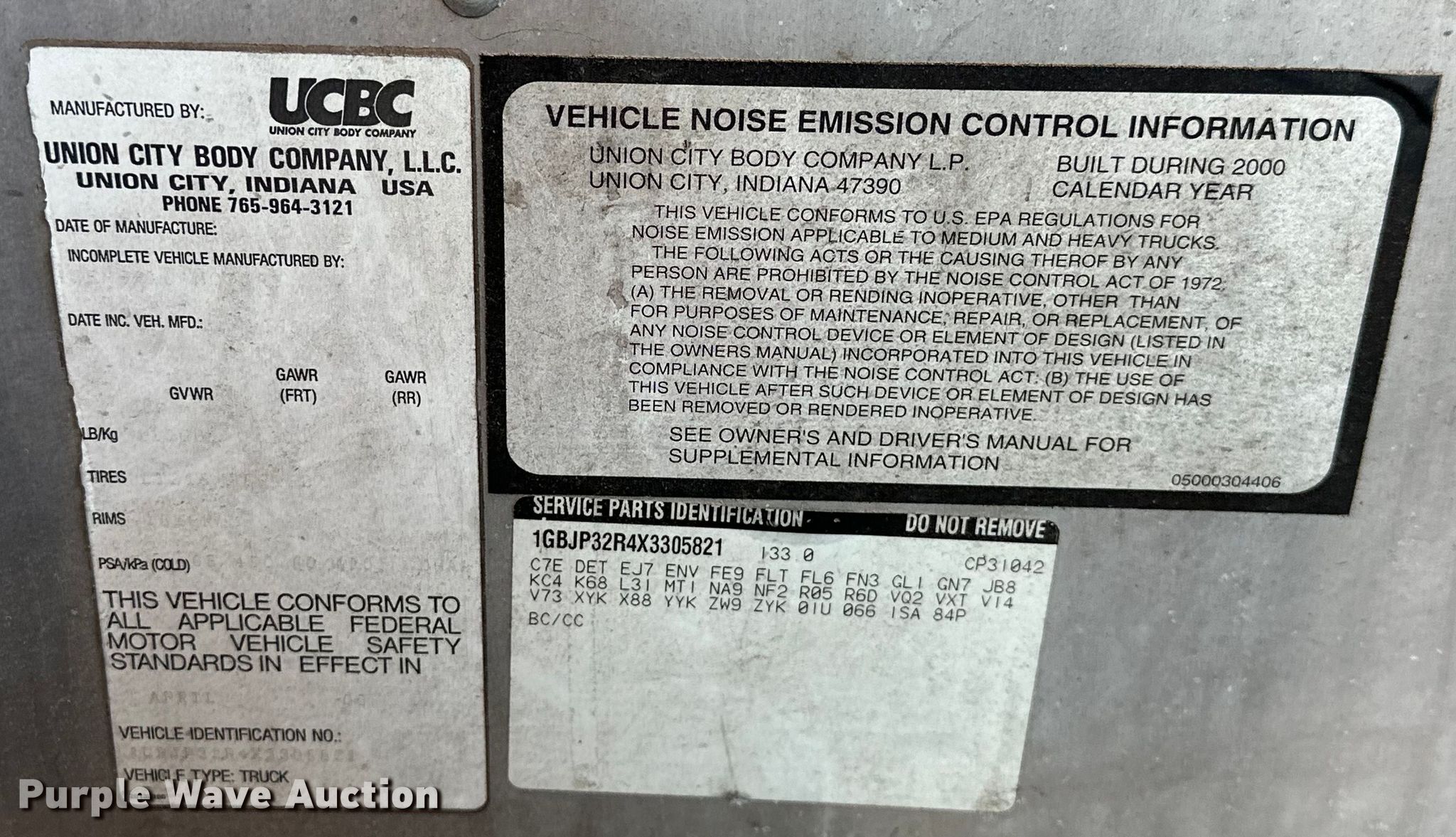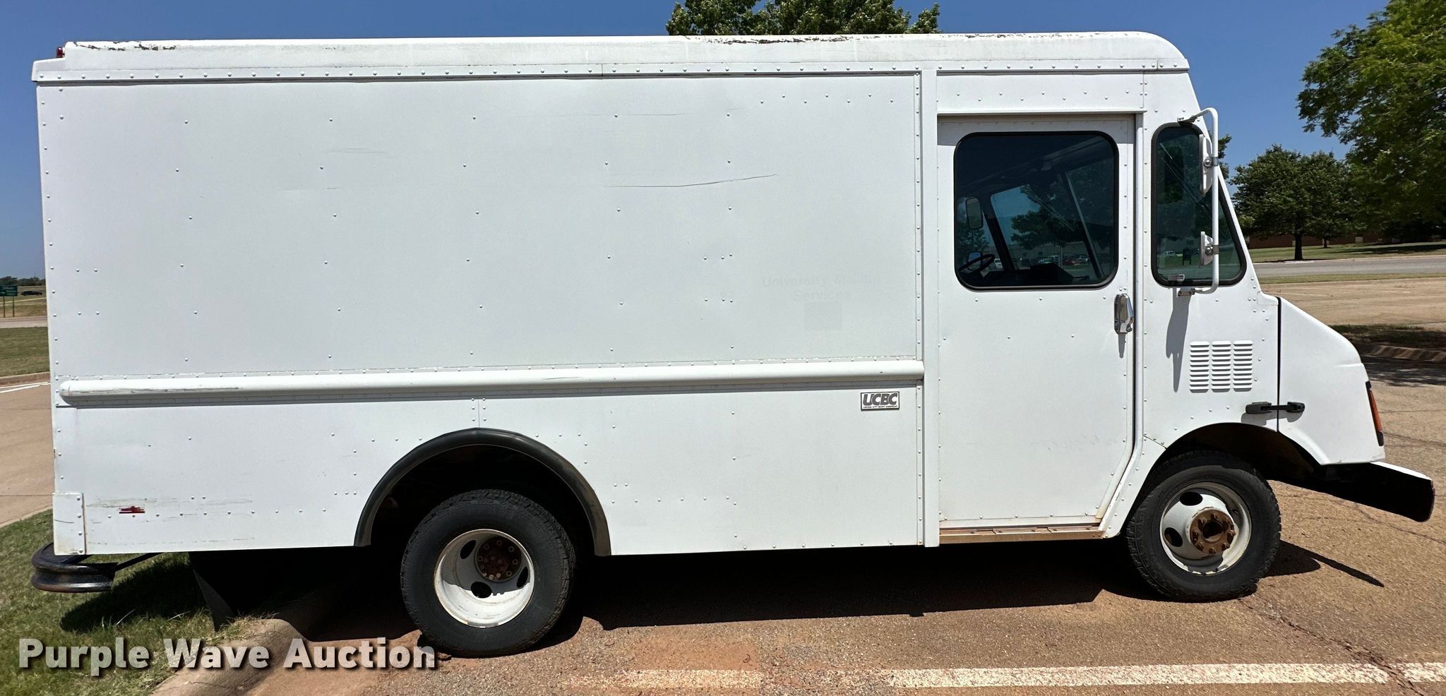 1999 Chevrolet delivery truck. Miles: 91,590 on odometer, VIN: 1GBJP32R4X3305821, Unit #: 929. Engine Displacement: 5.7L, Cylinders: 8, Fuel type: Gas. Transmission Automatic. Chassis Axles: Single, Suspension: Spring, Brakes: Hydraulic. Interior AC. Features Box bed Union City Body Company, 12' L x 82" W x 78" H, Floor: Wood. Tires Size: LT215/85R16. Notes Dead battery, Unknown operating condition. Oklahoma title. Oklahoma State University. Stillwater, OK 74078