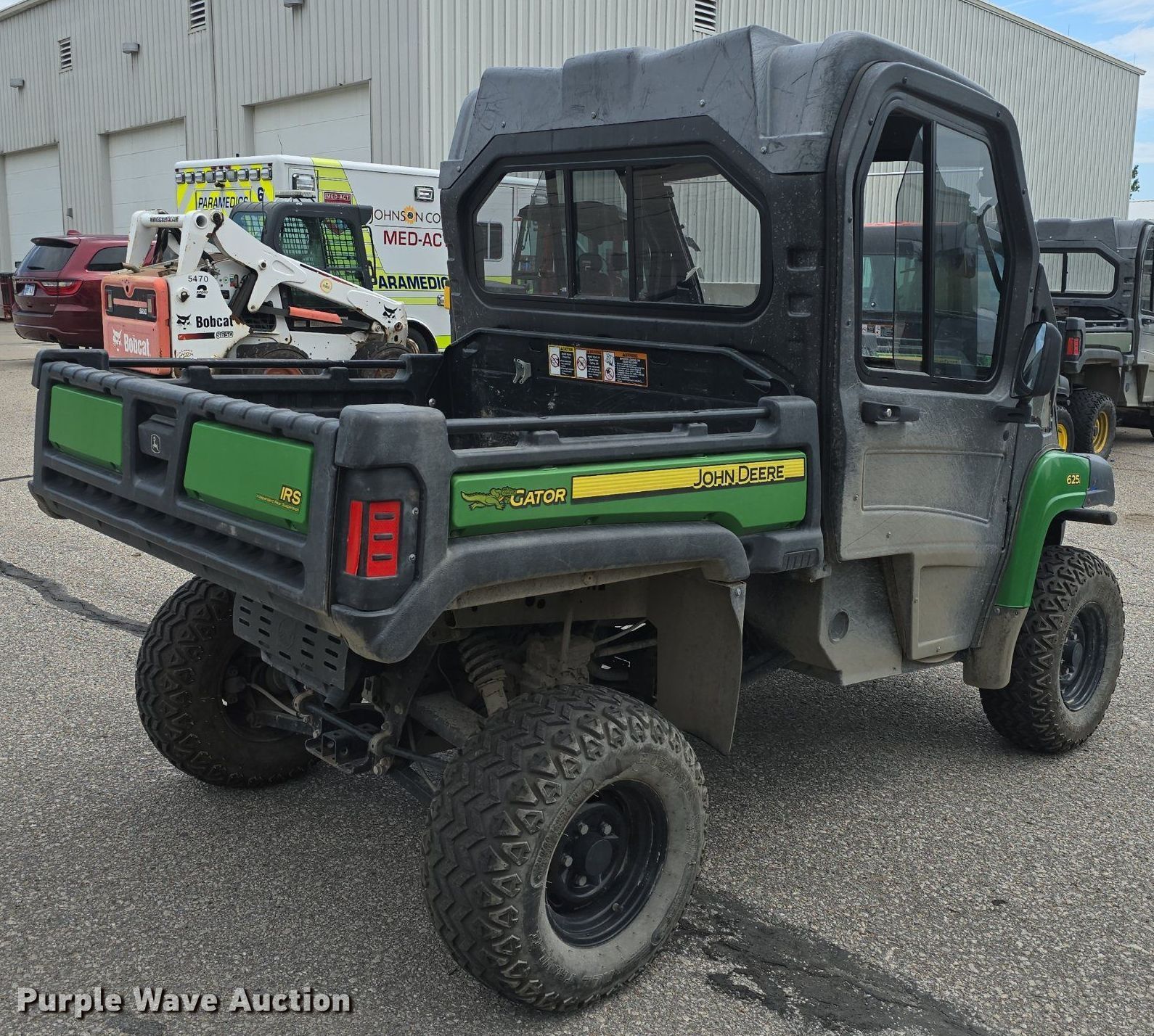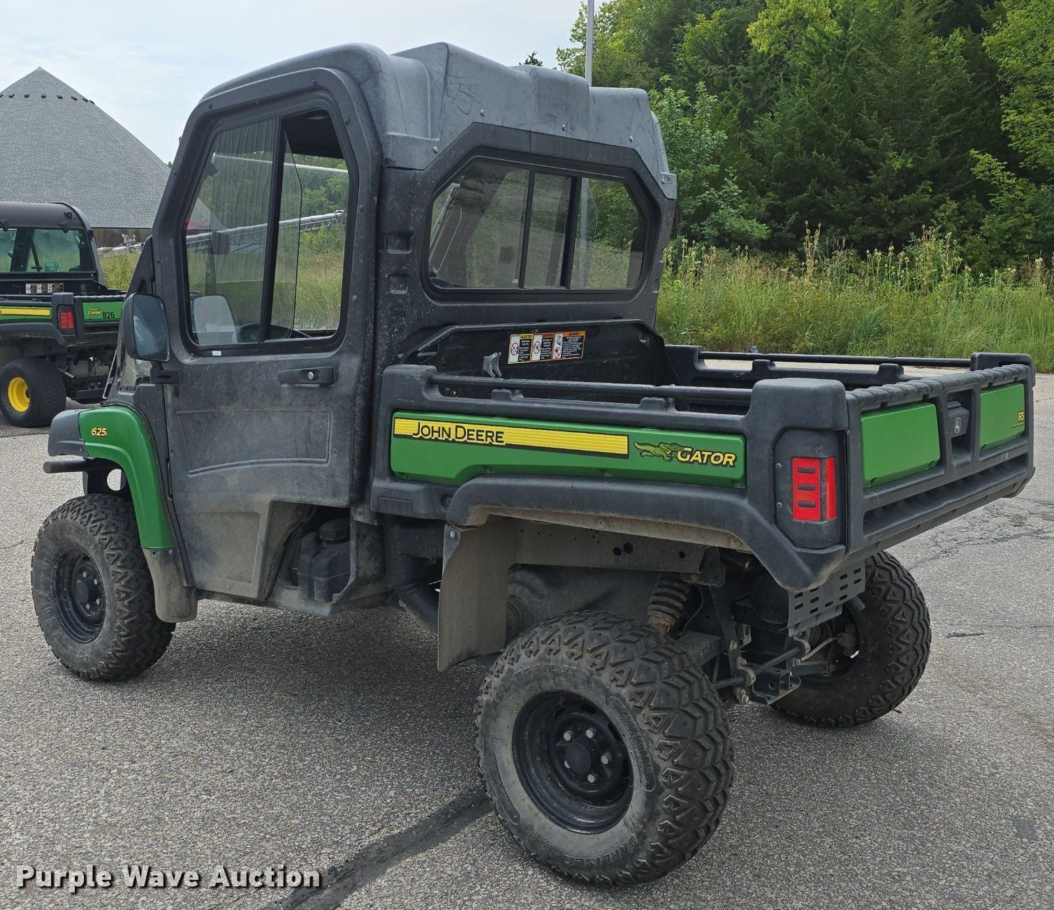 2013 John Deere 625i utility vehicle. Hours: 5,022 on meter, VIN: 1M0625GSADM062884, Unit #: JCW222. Engine Kawasaki, Fuel type: Gas. Transmission Hydrostatic. Chassis Four wheel drive/ All wheel drive. Operators station Enclosed cab. Features Receiver hitch, Dump bed 46" L x 56" W, Dump bed type: Manual. Tires Front: 25x9.00-12, Rear: 280/60-12. Kansas non-hwy not intnd for road use title. Johnson County, KS. Olathe, KS 66061