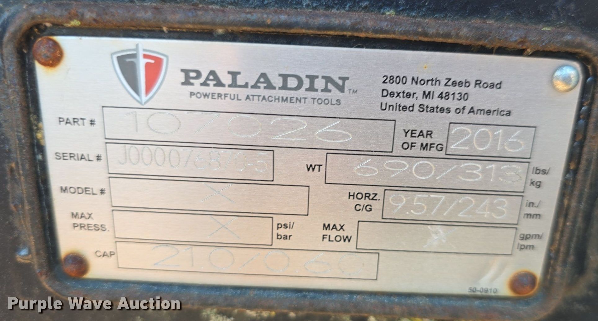 Purple Wave is selling a used Skid Steer Attach. in Kansas. This item is a 2016 Paladin skid steer bucket with the following: Serial: J0000768705, Width: 78", Cutting edge: weld-on, Teeth: 8