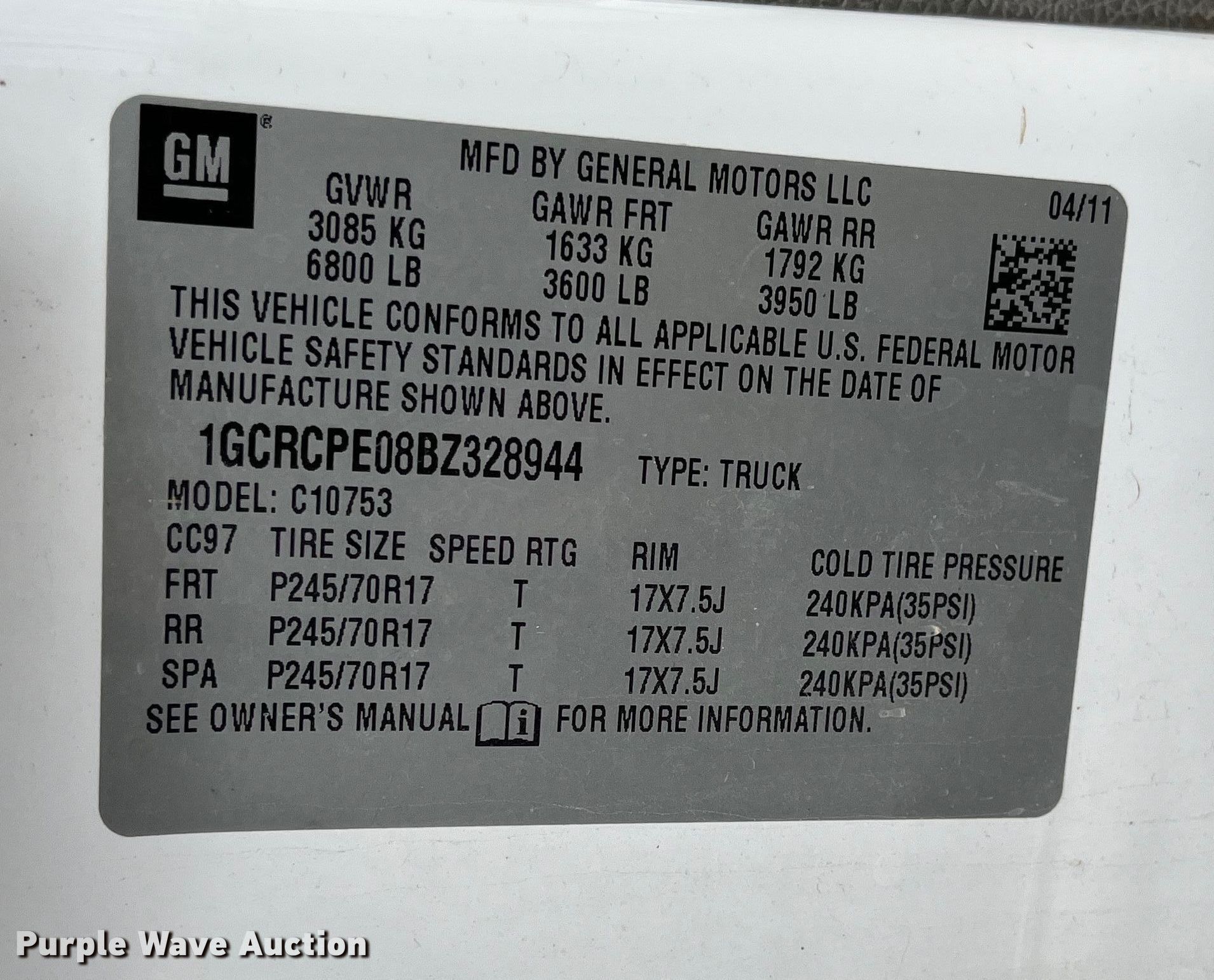- VIN: 1GCRCPE08BZ328944