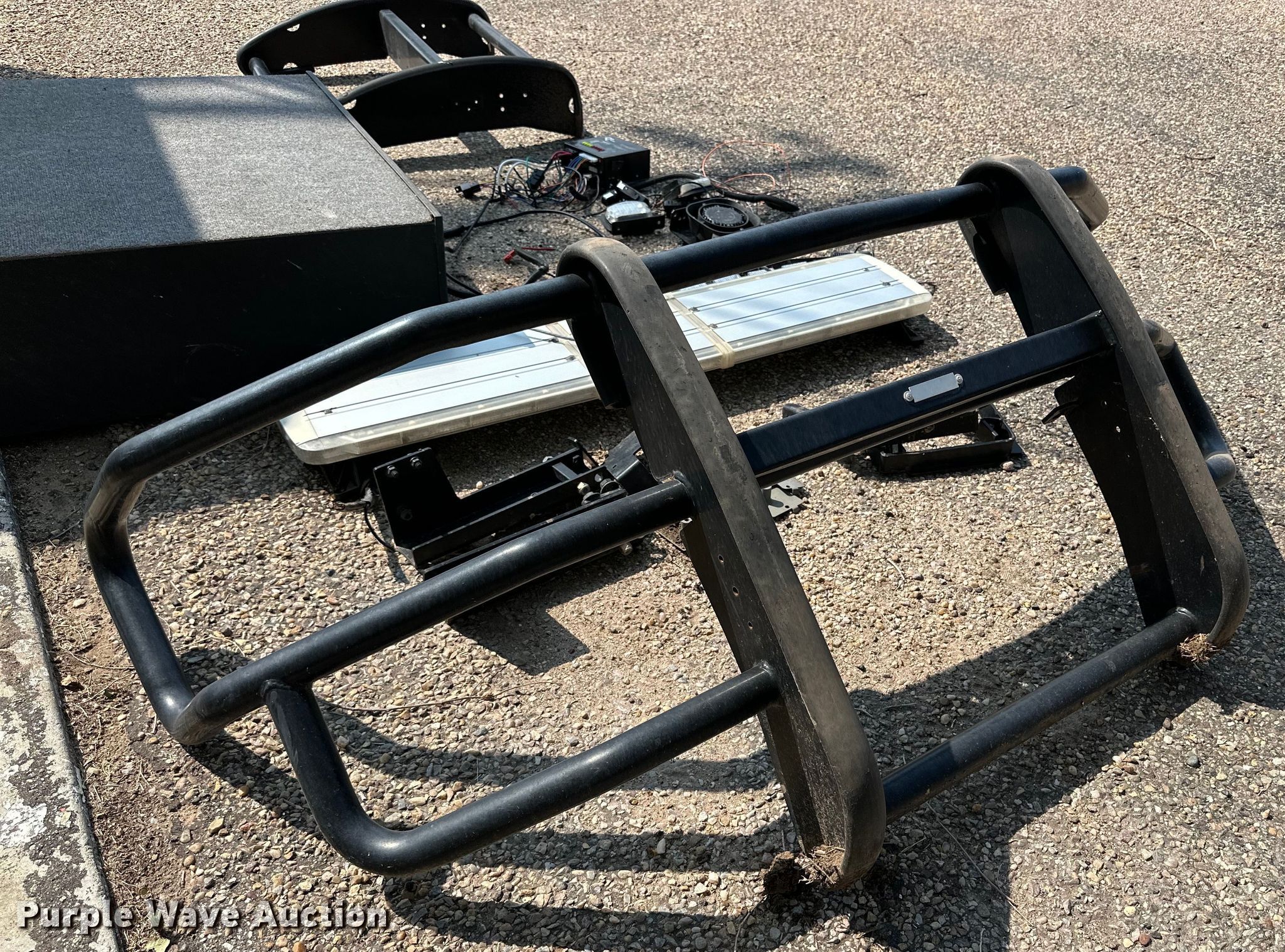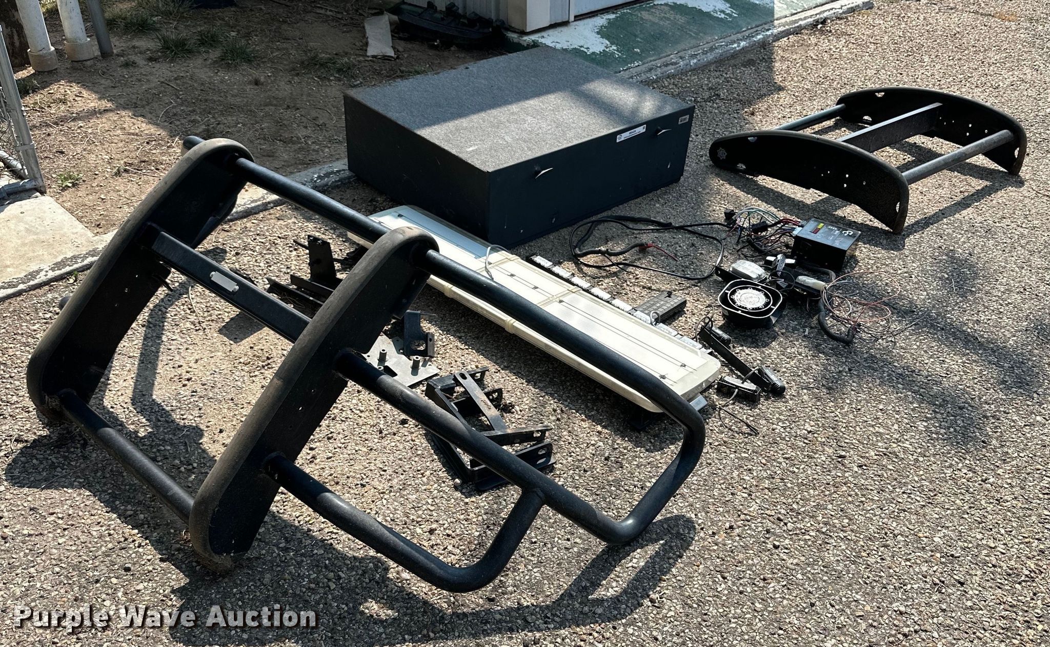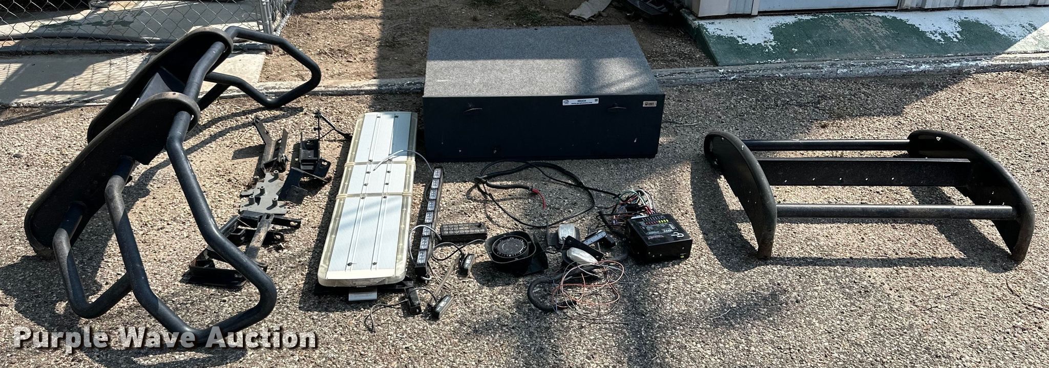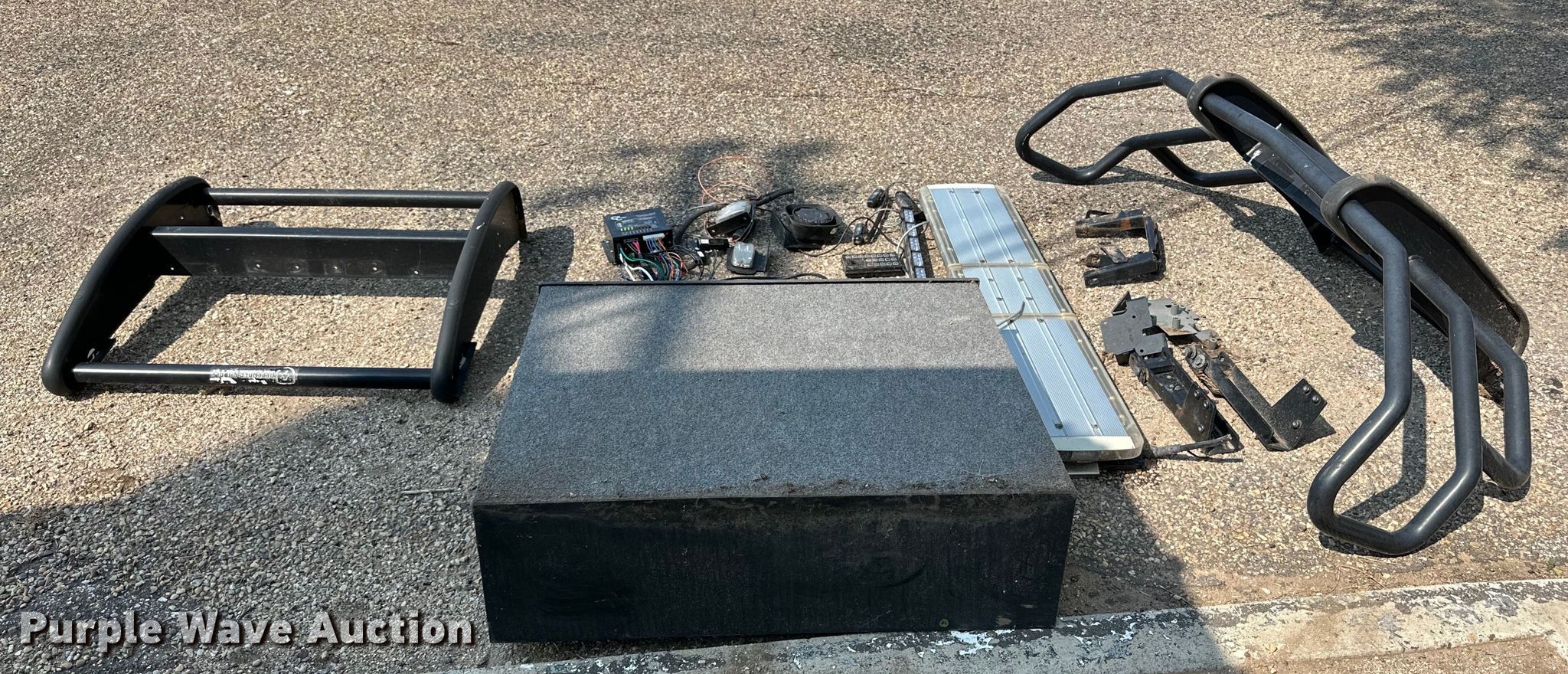 Purple Wave is selling a used Automotive Parts or Acces. in Texas. This item is a Police equipment with the following: Emergency light bar, Grille guard, Siren, Toolbox