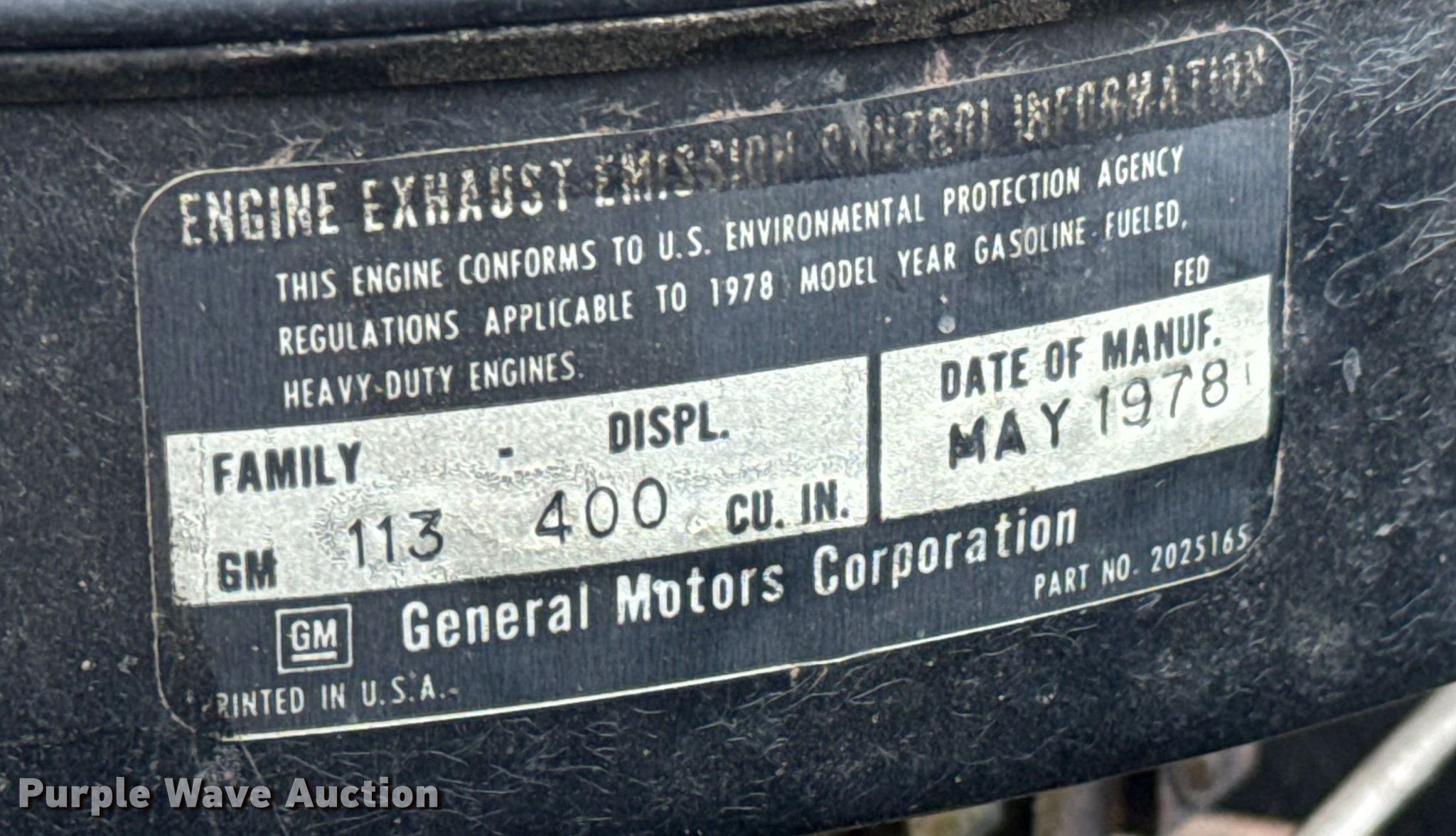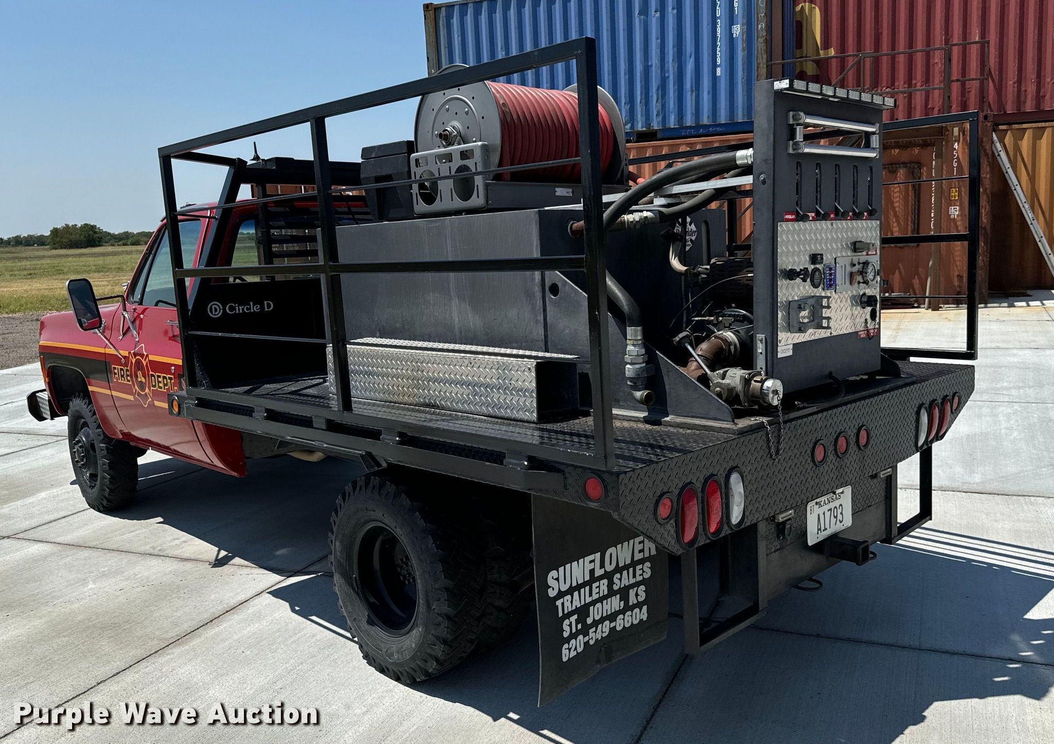 1978 Chevrolet Custom Deluxe 30 brush fire truck. Miles: 9,345 on odometer, VIN: CKR338J165356. Engine Displacement: 400 cu. in., Cylinders: 8, Fuel type: Gas. Transmission Automatic. Chassis Four wheel drive, Axles: Single, Suspension: Spring, Brakes: Hydraulic, GVWR: 11,000 lbs. Interior Heat, Auxiliary controls. Features Flatbed Circle D, 9' 5" L x 94" W, UPF The Defender Skid unit, Hale pump, 250 gallons tank, Engine Briggs & Stratton, Cylinders: 2, Fuel type: Gas, HP: 18, Fuel tank missing , Hours: 165 hours on meter, Front winch. Tires Size: 7.50-16. Kansas title. Title distribution may be delayed up to 14 days from verification of funds. City of Great Bend, KS. Great Bend, KS 67530