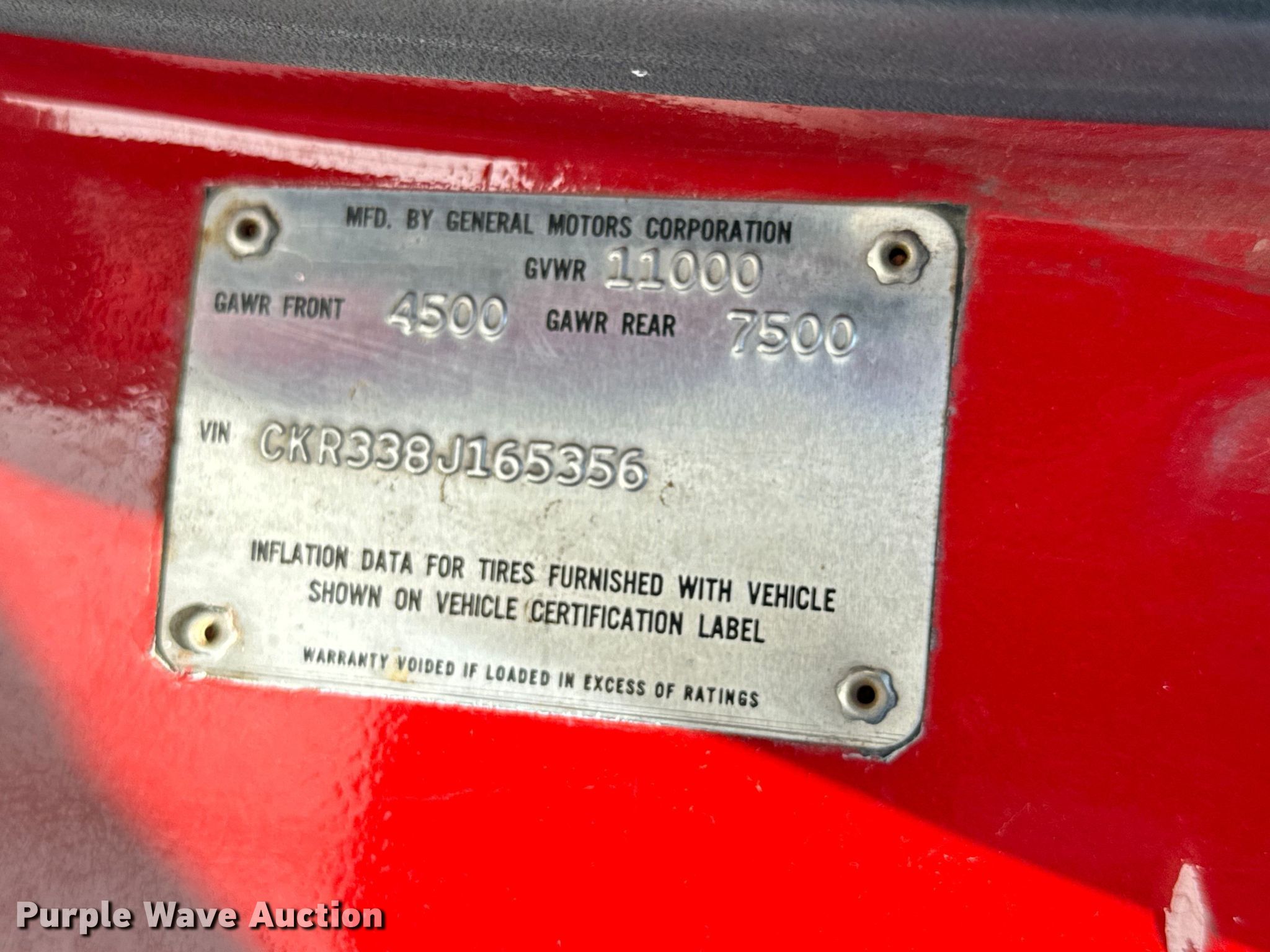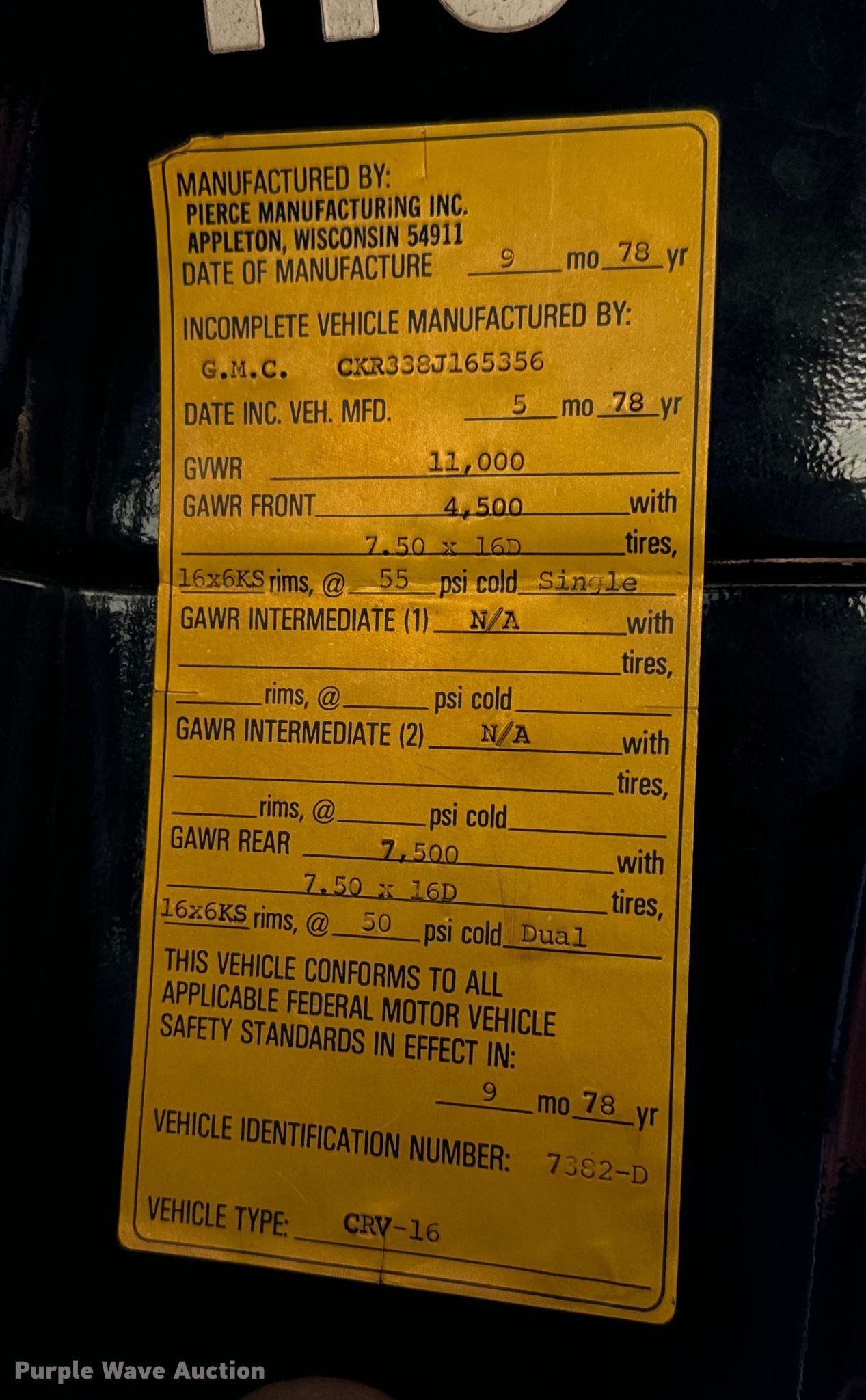Purple Wave is selling a used Fire Truck or Emergency Vehicle in Kansas. This item is a 1978 Chevrolet Custom Deluxe 30 brush fire truck with the following: Miles: 9,345 on odometer, VIN: CKR338J165356