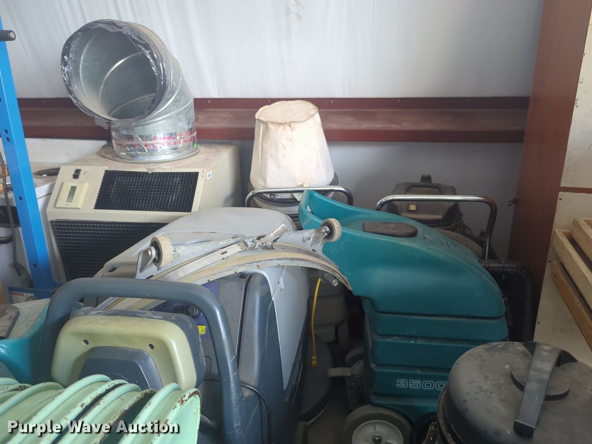Purple Wave is selling a used Furniture in Oklahoma. This item is a Furniture with the following: Approx. 40 desks, Chairs, (2) buffet tables, (3) cafeteria tables, Mixer, Fridge, (4) floor scrubbers and more