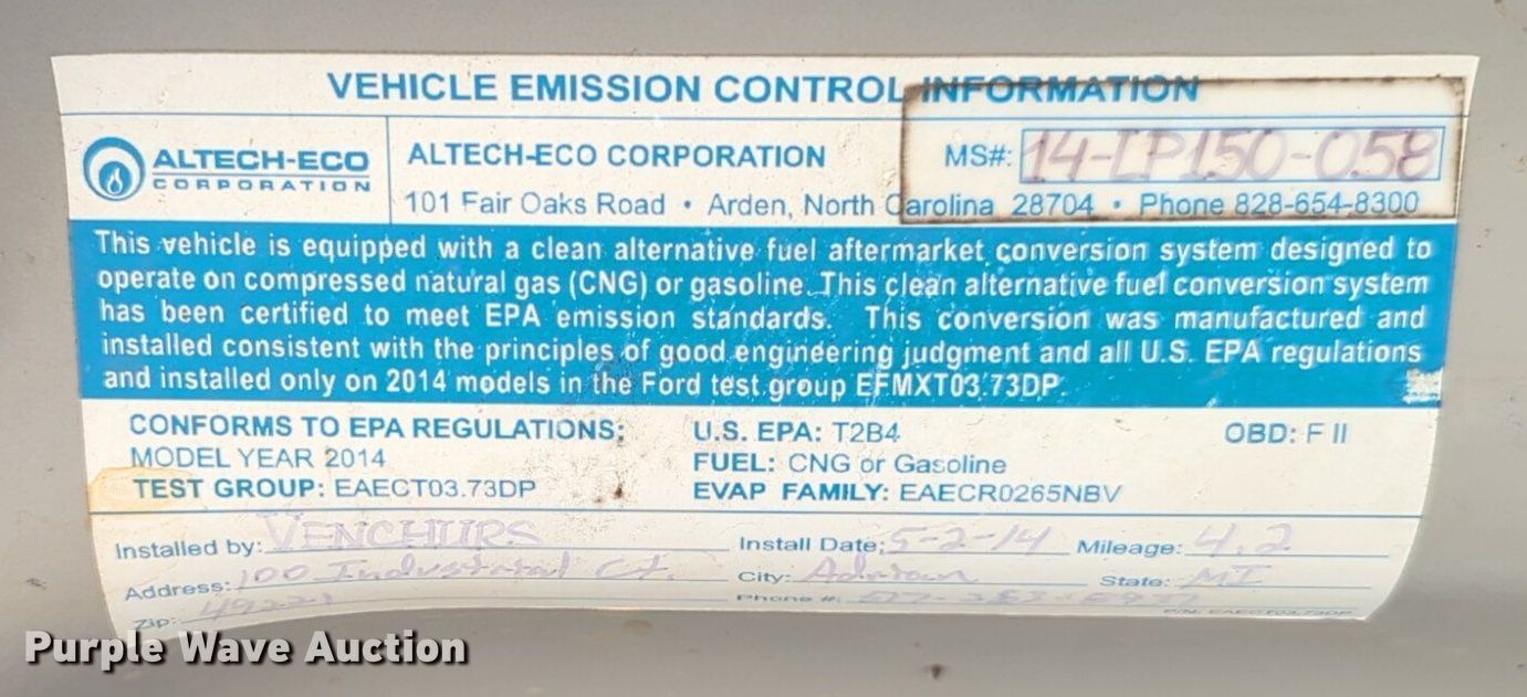 2014 Ford F150 SuperCab pickup truck. Miles: 159,616 on odometer, VIN: 1FTEX1EM8EKD94717, Unit #: D94717. Engine Displacement: 3.7L V6 DOHC, Cylinders: 6, Fuel type: Gas, CNG. Transmission Automatic, Four wheel drive. Interior AC, Heat, Power windows, Power locks, Cruise control. Tires Size: 265/70R17. Notes Windshield chipped or cracked, Unknown operating condition of CNG system. Oklahoma title. Title distribution may be delayed up to 14 days from verification of funds. Oklahoma Department of Wildlife Conservation - Open Inspection September 9th. 1801 North Lincoln Boulevard. Oklahoma City, OK 73105