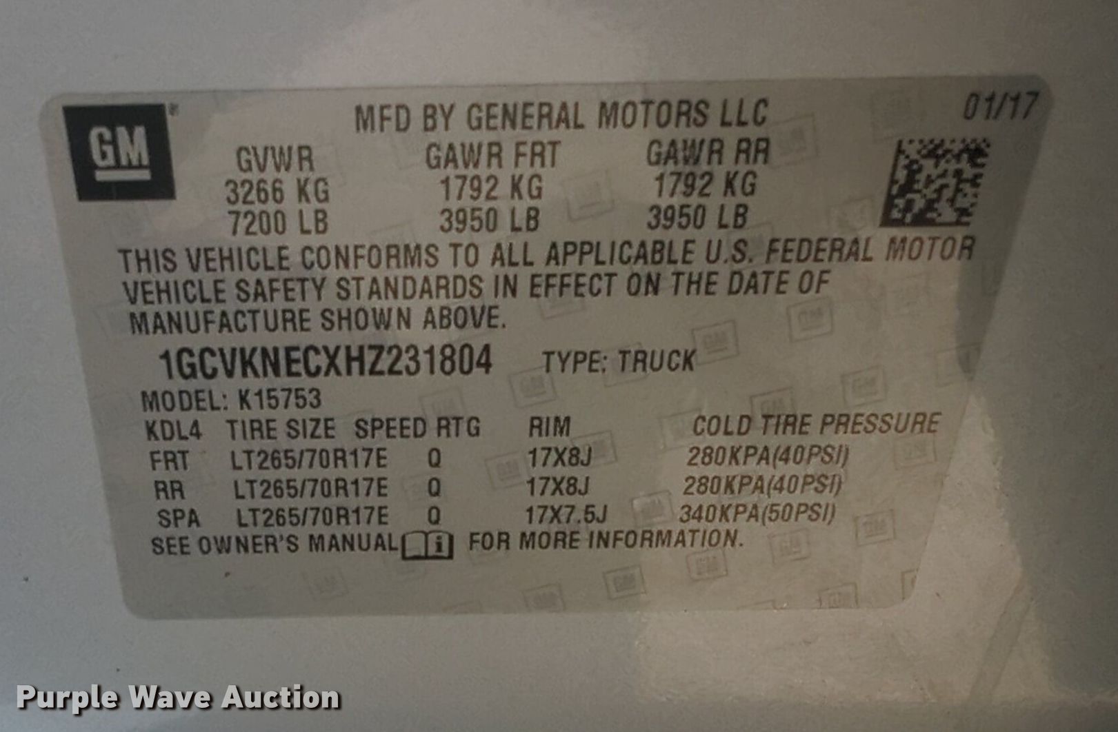 - VIN: 1GCVKNECXHZ231804