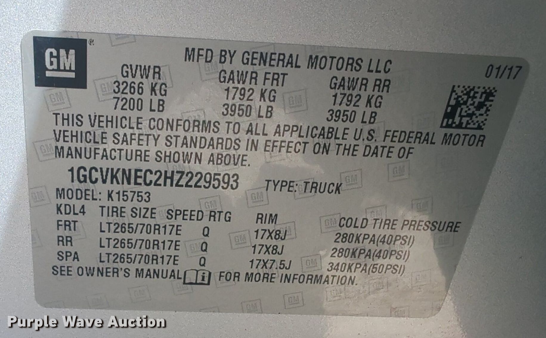 Purple Wave is selling a used 1/2 Ton Pickup or Van in Oklahoma. This item is a 2017 Chevrolet Silverado 1500 Double Cab pickup truck with the following: Miles: 127,157 on odometer, VIN: 1GCVKNEC2HZ229593, Unit #: 229593