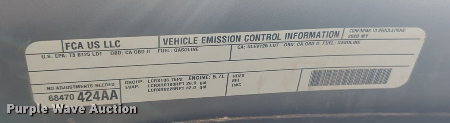 Purple Wave is selling a used 1/2 Ton Pickup or Van in Oklahoma. This item is a 2020 Dodge Ram 1500 Crew Cab pickup truck with the following: Miles: 141,135 on odometer, VIN: 1C6RR7LT0LS117377, Unit #: 117377