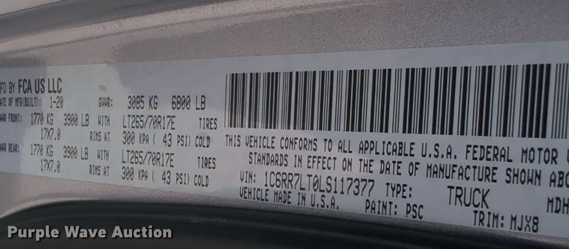 - VIN: 1C6RR7LT0LS117377