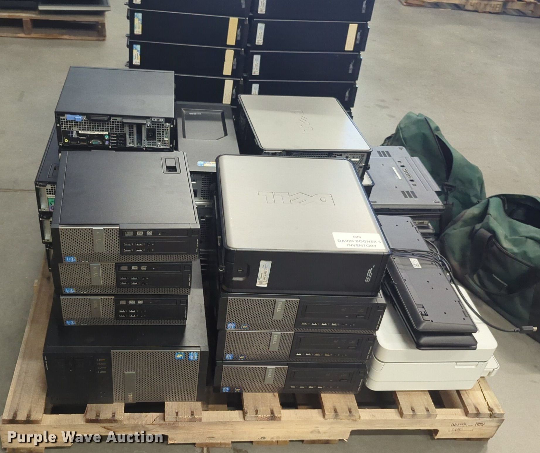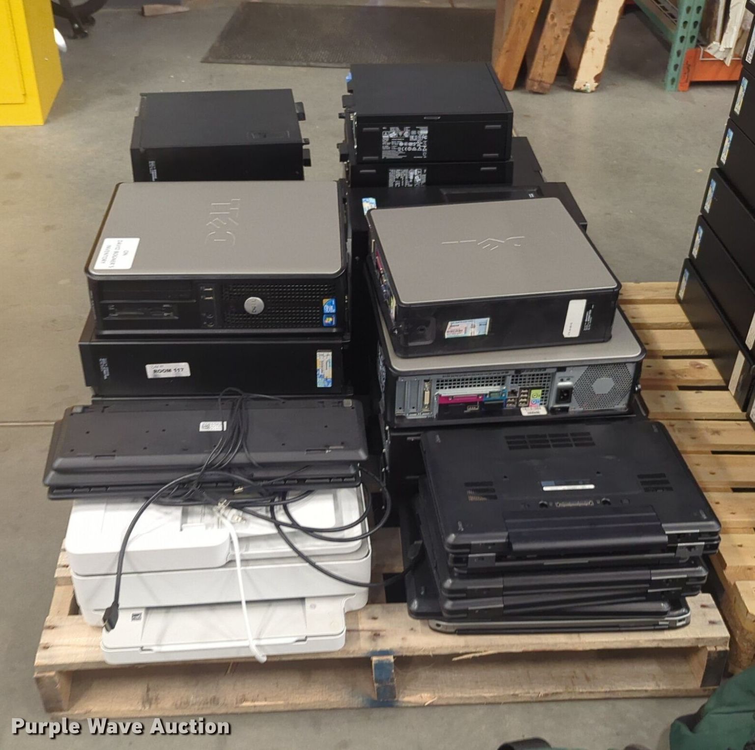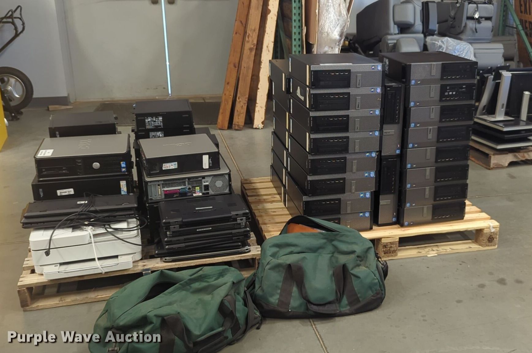Purple Wave is selling a used Electronics in Oklahoma. This item is a Dell electronics with the following: CPUs, Laptops, Monitors, (2) Scantron grading machines and more