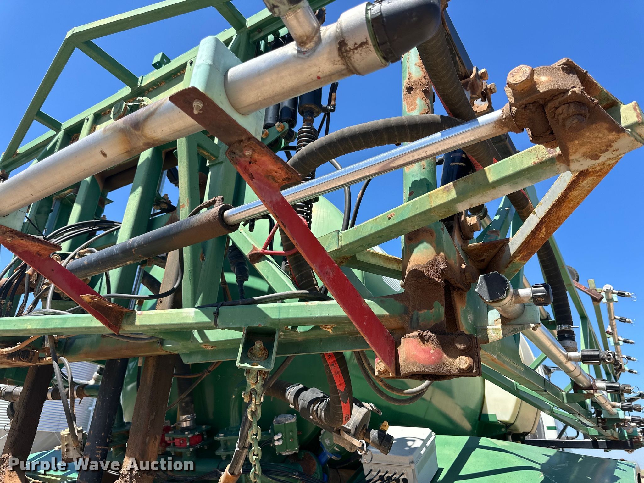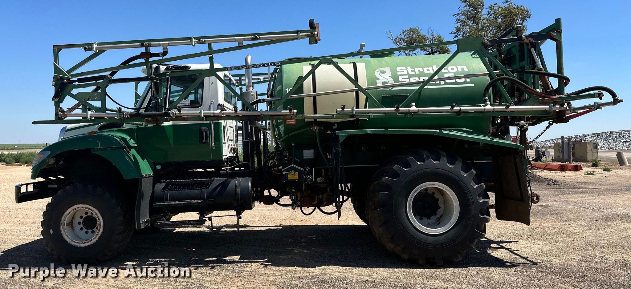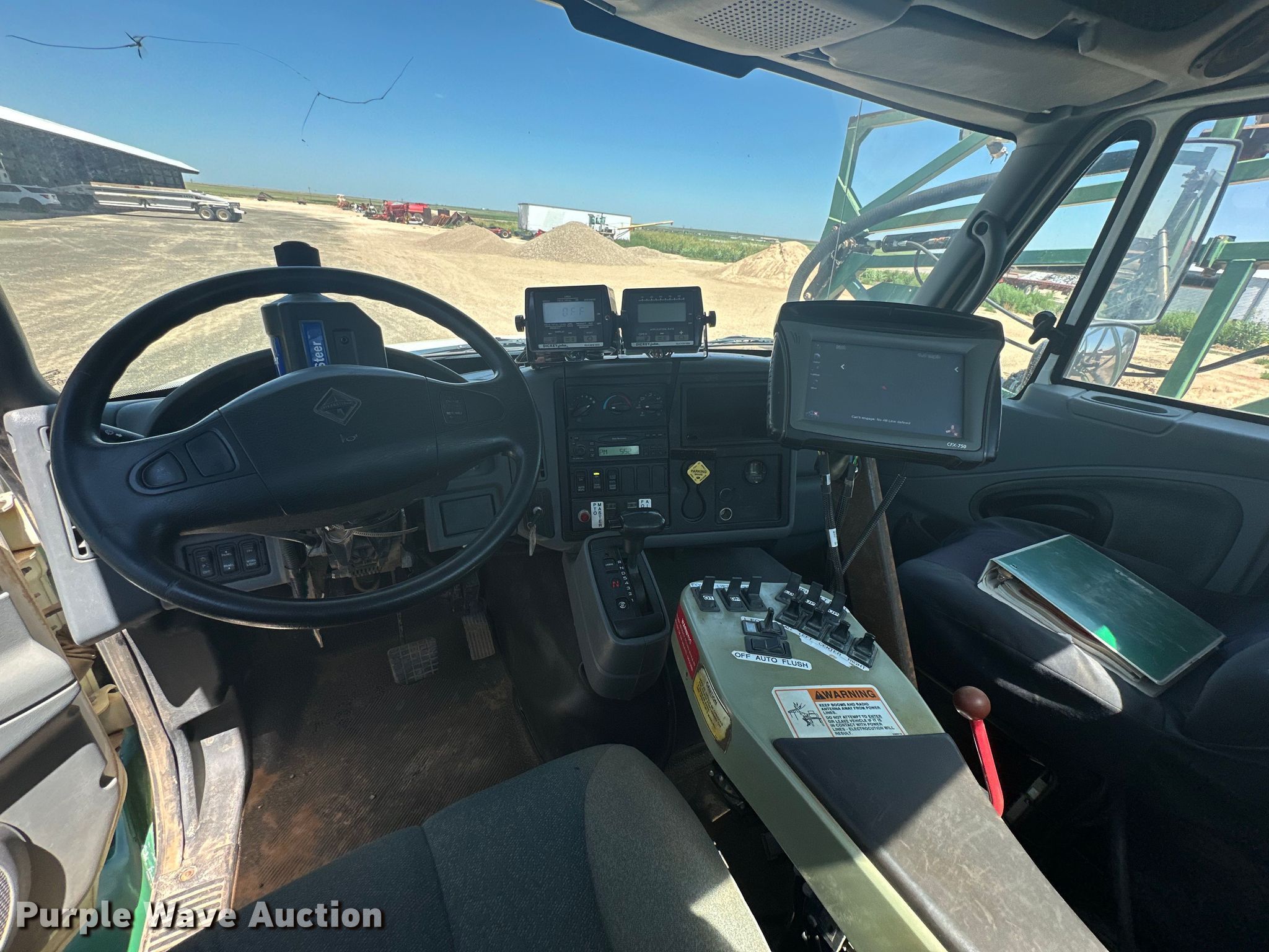 2006 International 7600 applicator truck. Miles: 63,754 on odometer, VIN: 1HTWZAHL46J171246. Engine Cylinders: 6, Fuel type: Diesel. Transmission Allison, Automatic. Chassis Axles: Single, Suspension: Spring, Brakes: Air. Operators station AC, Heat. Features Solution tank Capacity: 2,000 gallons, Chemical eductor Type: Stainless Steel, Rinse tank, Boom Width: 85', Sections: 4, Hydraulic boom fold, Hydraulic height control, Nozzle Spacing: 30", Nozzle bodies: Single, Electronics GPS monitor Trimble, GPS receiver, Spray controls, Auto steer. Tires Front: 48x25.00-20, Rear: 66x43.00-25, Flotation tires. Notes Main tank leaks. Lindel Farms. Pampa, TX 79065