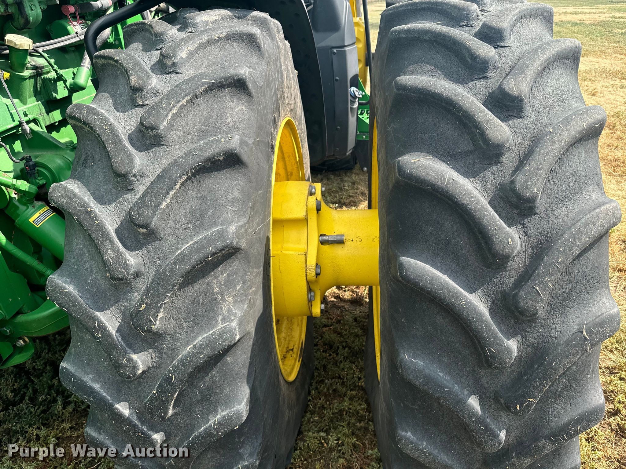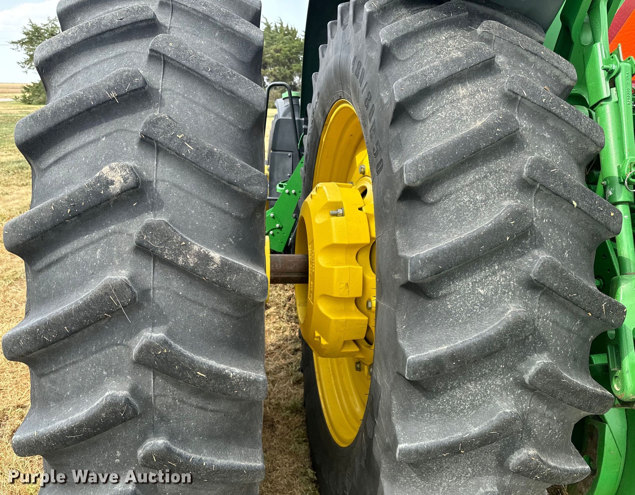 2015 John Deere 8320R MFWD tractor. Hours: 3,186 on meter, Serial: 1RW8320RKFP102389. Engine John Deere, Serial: R0M8NBR611888, Cylinders: 6, Fuel type: Diesel, HP: 320. Transmission Powershift, 16F - 4R, Differential lock. Operators station AC, Heat, Display John Deere. Features PTO: 1 3/4" 1000, Three point Quick attach, Seven pin outlet, ISOBUS outlet, Hydraulic remote sets Rear: 5, Power beyond (hydraulics), Suitcase weights: 16. Tires Front: 420/85R34, Rear: 480/80R50, Wheel weights: 4, Duals, Front duals. Notes stock roller not included. Oakley , KS 67738