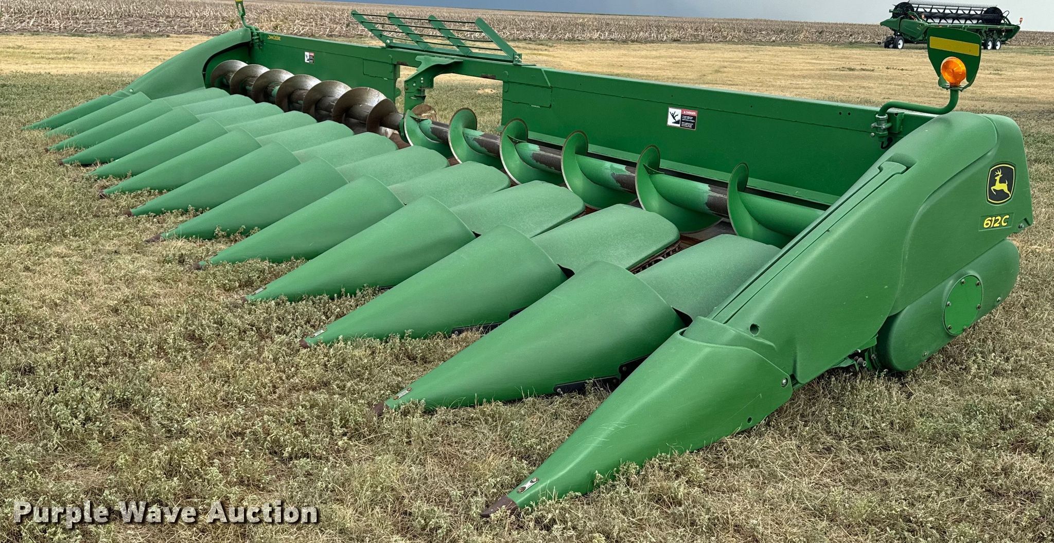 Purple Wave is selling a used Corn or Row Head in Kansas. This item is a 2008 John Deere 612C corn head with the following: Serial: H0612CX725690