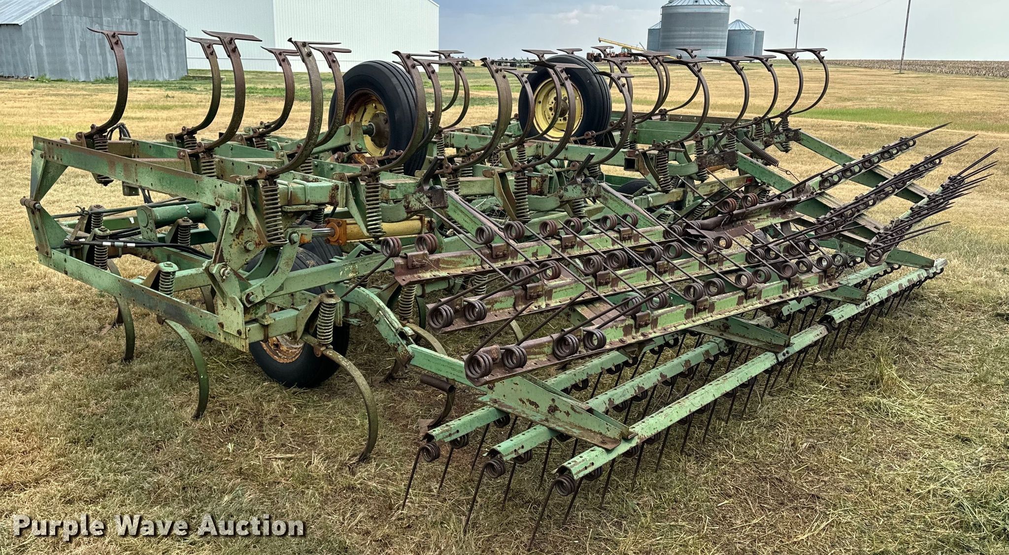 Purple Wave is selling a used Field Cultivator or Sweep Plow in Kansas. This item is a John Deere 1010 field cultivator with the following: Overall width: 32'