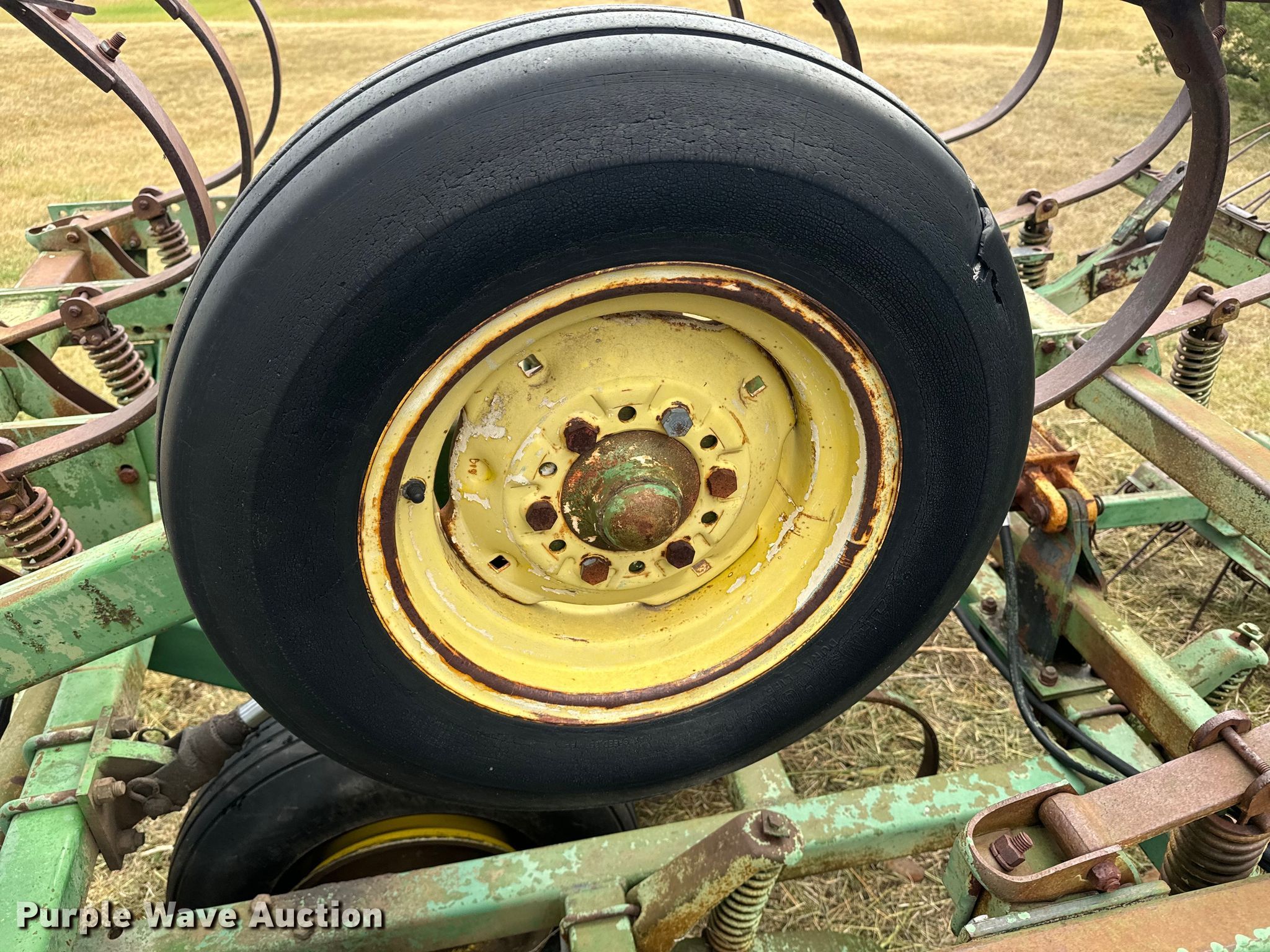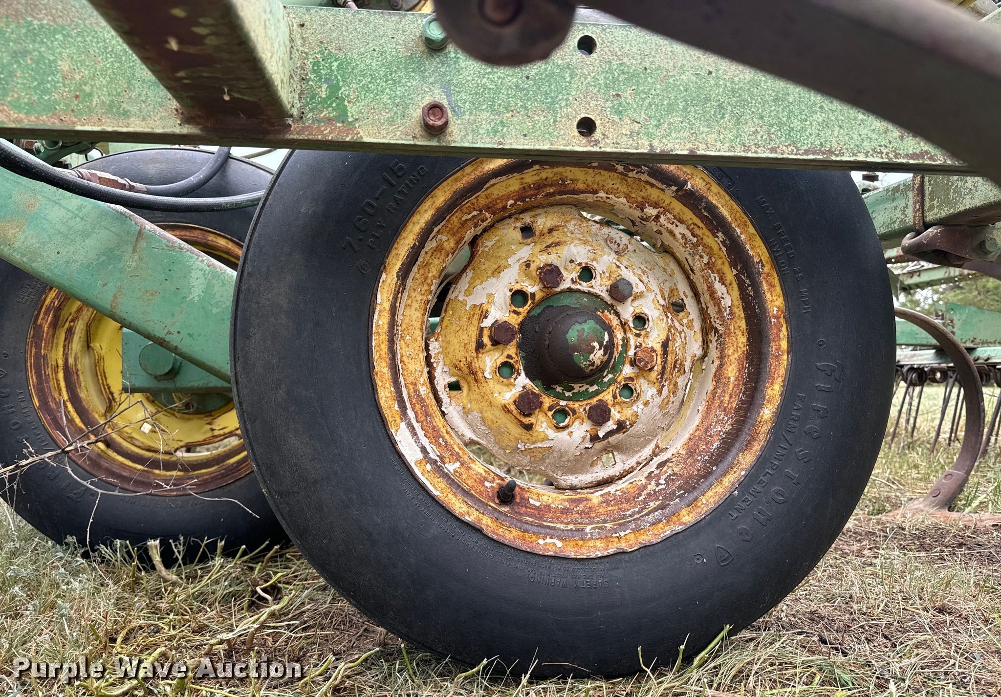 John Deere 1010 field cultivator. Overall width: 32'. Features Sweep width: 9", Hydraulic lift, Hydraulic fold, Leveler: Manual, Attachments Spike tooth harrow Harrow bars: 3.. Tires Tire size: 7.60-15. Oakley , KS 67738