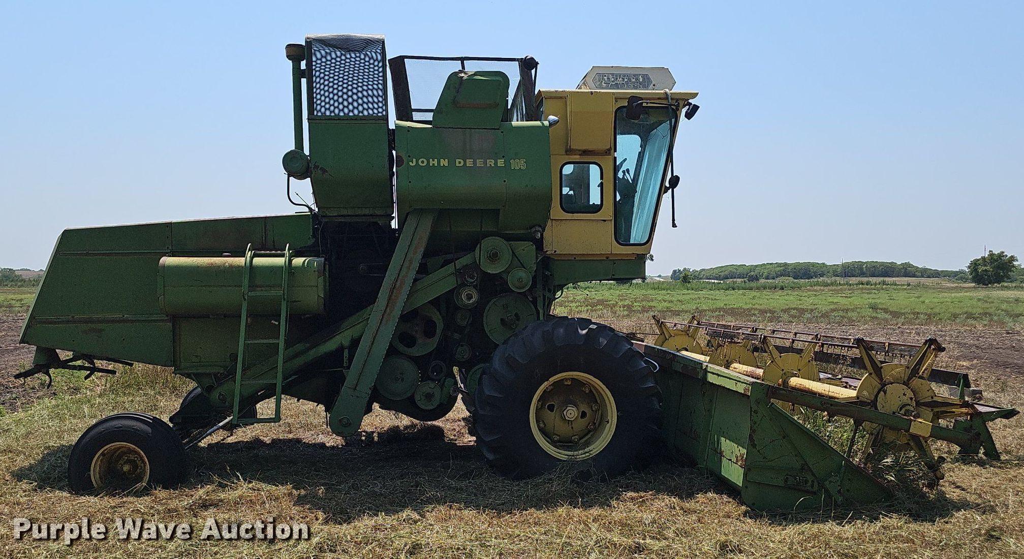 Purple Wave is selling a used Combine in Kansas. This item is a 1969 John Deere 105 combine with the following: Engine hours: 4,012 on meter, Serial: 19819